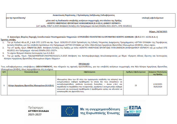 Ανοικτή Πρόσκληση σε Δημότες και Φορείς για την Πα...
