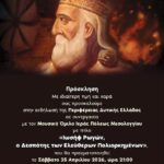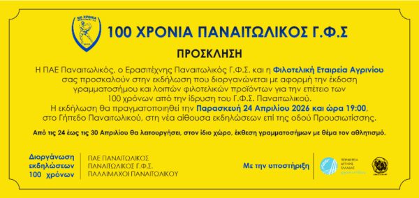 Με τιμή και χαρά σας προσκαλούμε στην επίσημη επετειακή συναυλία για τα 200 χρόνια από την Έξοδο του Μεσολογγίου. (περισσότερα…...
