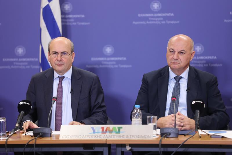 Στην εξειδίκευση των μέτρων στήριξης του αγροτικού κόσμου προχώρησαν σήμερα ο Αντιπρόεδρος της Κυβέρνησης Κωστής Χατζηδάκης, ο Υπουργός Αγροτικής Ανάπτυξης και Τροφίμων Κώστας Τσιάρας, ο Υπουργός Ψηφιακής Διακυβέρνησης Δημήτρης Παπαστεργίου και ο Υφυπουργός Εθνικής Οικονομίας και Οικονομικών Θάνος Πετραλιάς, κατά τη διάρκεια συνέντευξης Τύπου που πραγματοποιήθηκε στα γραφεία του Υπουργείου Αγροτικής Ανάπτυξης και Τροφίμων.