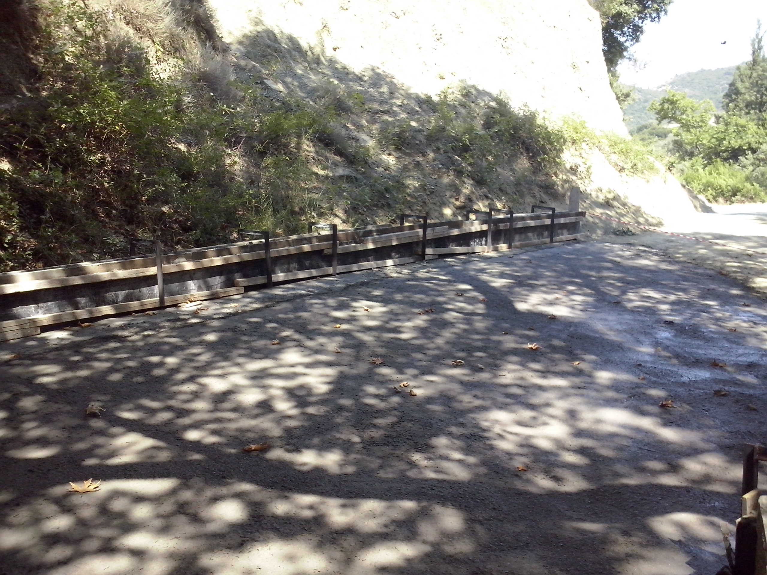 Kατασκευή τεχνικού έργου από σωληνωτό οχετό 1ΧΦ100 για την υπόγεια απορροή των υδάτων. Θα κατασκευαστεί τοίχος αντιστήριξης από οπλισμένο σκυρόδεμα στα κατάντη για την συγκράτηση του τμήματος της οδού (λόγω μεγάλης υψομετρικής διαφοράς από ρέμα κατάντη) και ανοικτό φρεάτιο στα ανάντη για την υποδοχή των επιφανειακών υδάτων. Επίσης θα γίνει πλήρης αποκατάσταση του οδοστρώματος με κατασκευή οδοστρωσίας και ασφαλτικού τάπητα κυκλοφορίας σε μήκος 30,00 μ και πλάτους 8,00 μ. Με την ανωτέρω παρέμβαση επιλύεται το χρόνιο πρόβλημα πρόσβασης της οδού και αποφεύγεται ο κίνδυνος ατυχήματος για τους διερχόμενους πεζούς και οχήματα.