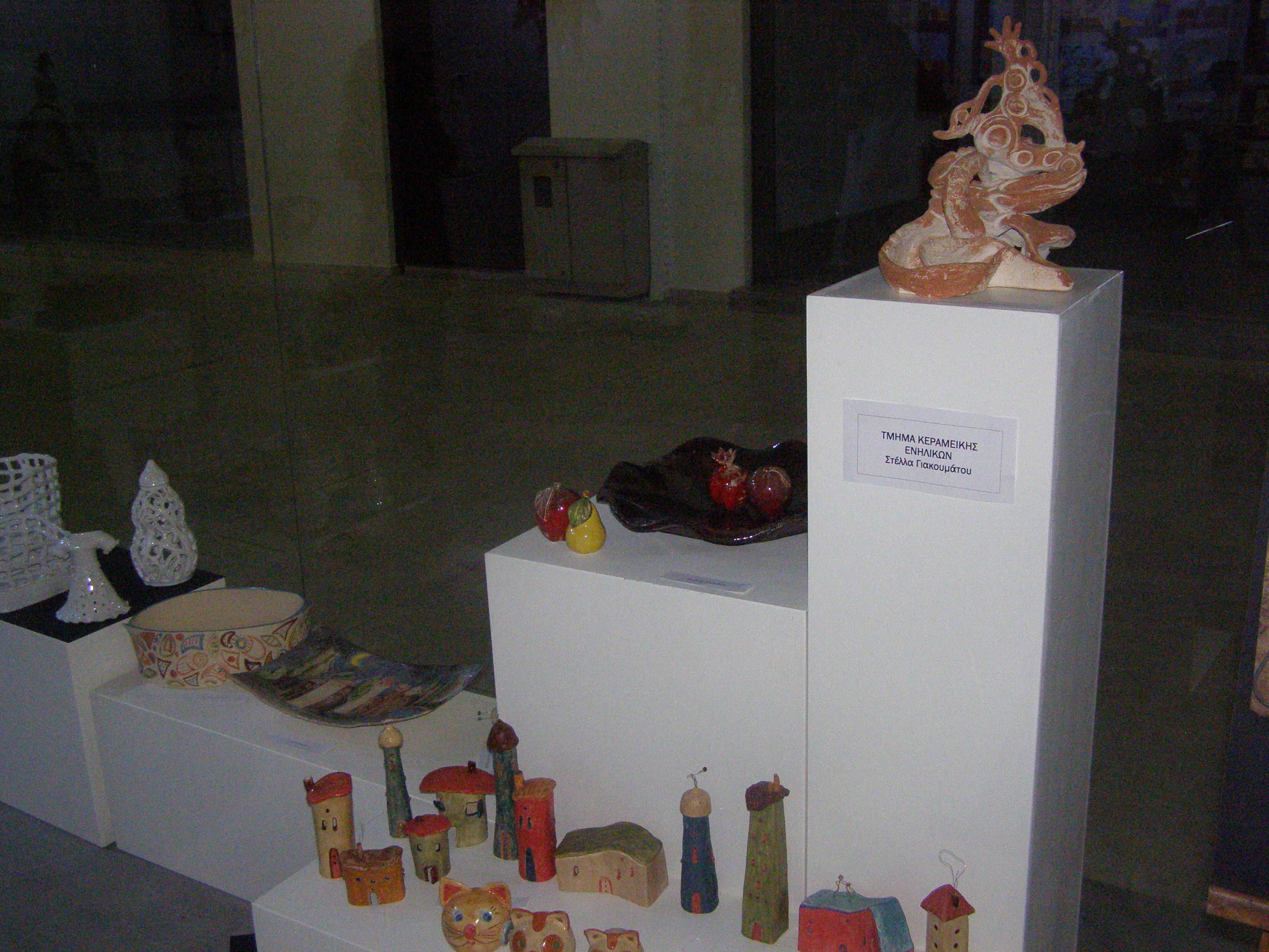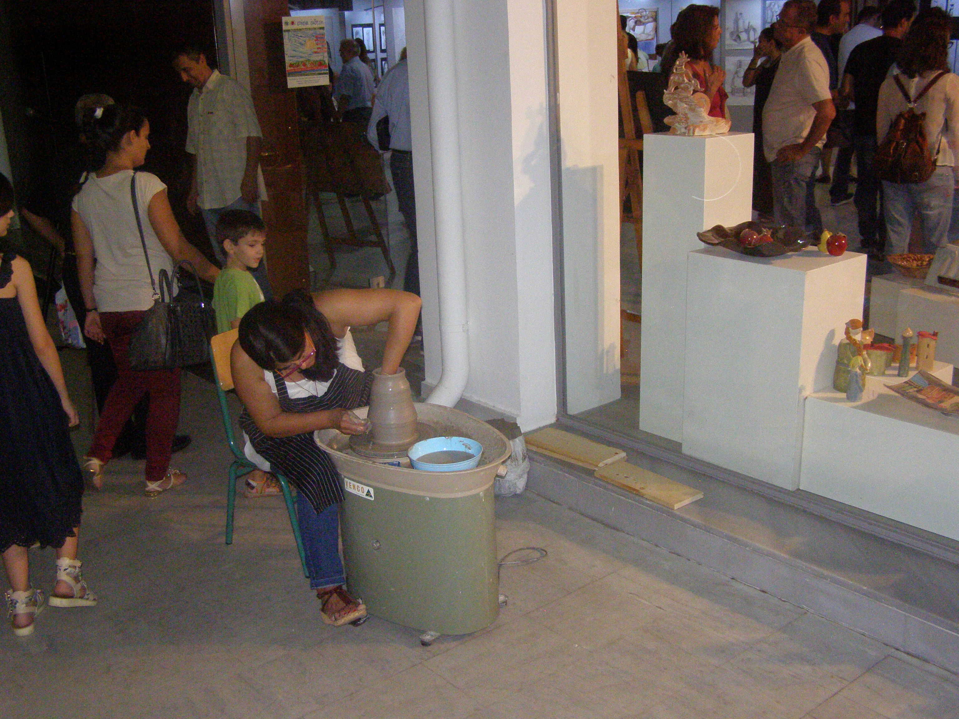 12006203_10205991241354785_7185046806657465958_nΣτο ισόγειο φιλοξενούνται έργα ζωγραφικής, κεραμικής, γλυπτικής κόμικς-γελοιογραφίας και αγιογραφίας, ενώ στον πρώτο όροφο υπάρχει η έκθεση φωτογραφίας. Η προσέλευση του κόσμου ήταν μεγάλη ανεξαρτήτως ηλικίας και δεν ήταν λίγοι εκείνοι που εξέφρασαν την επιθυμία να γραφτούν στο νέο κύκλο μαθημάτων. Η βραδιά επεφύλασσε και μια έκπληξη καθώς η δασκάλα κεραμικής κ. Γιακουμάτου Στέλλα έκανε μια ζωντανή παρουσίαση στο κοινό φτιάχνοντας διάφορα έργα, κάτι που προκάλεσε μεγάλο ενθουσιασμό.