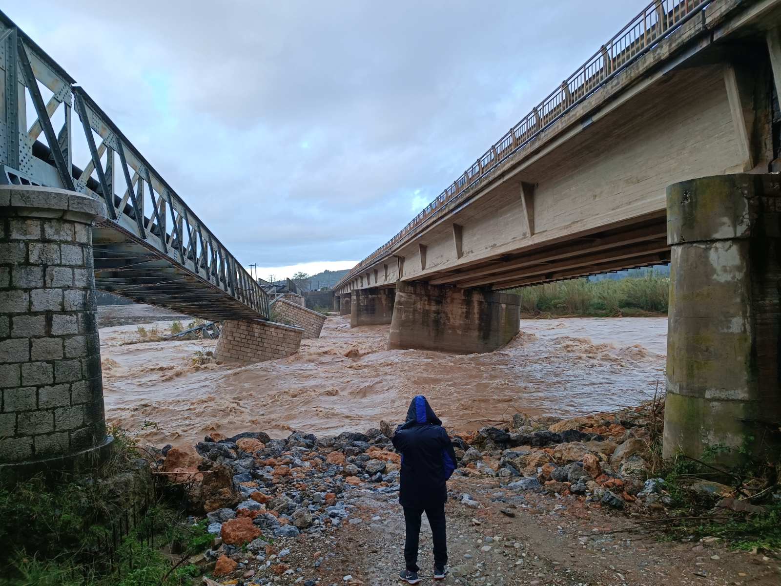 Η γνωστή γέφυρα του Εύηνου ποταμού, έργο κατασκευασμένο πριν από τουλάχιστον πενήντα χρόνια, δεν άντεξε στα ορμητικά νερά του ποταμού και παρασύρθηκε αποκόβοντας τη σύνδεση της ενδοχώρας της Αιτωλοακαρνανίας από την υπόλοιπη Περιφέρεια. Ίδιο το σκηνικό στις ορεινές περιοχές των Δήμων Ξηρόμερου, Αρχαίας Ολυμπίας, Αμφιλοχίας, Ερυμάνθου κλπ. Ταυτόχρονα, το παραλιακό μέτωπο πόλεων όπως η Πάτρα και το Μεσολόγγι επλήγη βάναυσα για δεύτερη φορά σε διάστημα λίγων ημερών.