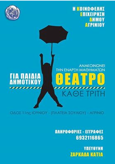 Η Κοινωφελής Επιχείρηση του Δήμου Αγρινίου ανακοινώνει την έναρξη του τμήματος: Θέατρο για Παιδιά.