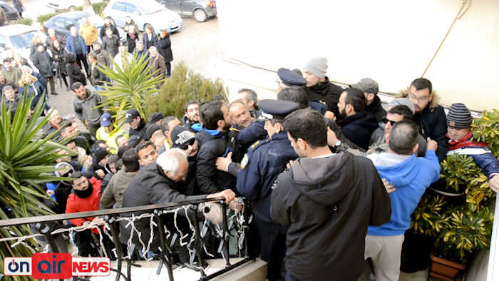 Οι κάτοικοι ζητούσαν να κατεβεί ο Δήμαρχος και να κάνει ενημέρωση σε όλους . Η ένταση προκλήθηκε όταν η επιτροπή ανέβηκε στο γραφείο του Δημάρχου να καταθέσει τα αίτημα τους.