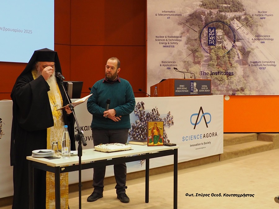 O Πανοσιολογιώτατος Αρχιμανδρίτης π. Μαρίνος Πιτσικάλης ( Ι.Μ.Νικαίας ) καθηγητής του Τμήματος Χημείας της Σχολής Θετικών Επιστημών του Ε.Κ.Π.Α. τέλεσε τον Αγιασμό και ευλόγησε την Αγιοβασιλόπιτα, στο Ινστιτούτο Νανοεπιστήμης & Νανοτεχνολογίας του Ε.Κ.Ε.Φ.Ε. “Δημόκριτος “,την Τρίτη 11 Φεβρουαρίου 2025.