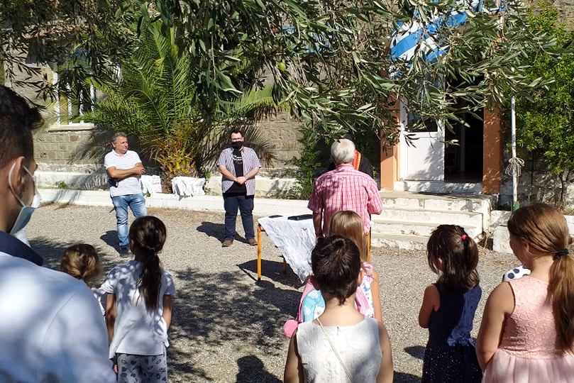 Στην συνέχεια διανεμήθηκαν προς τους μαθητές τα σχολικά βιβλία , μάσκες και παγουρίνα.