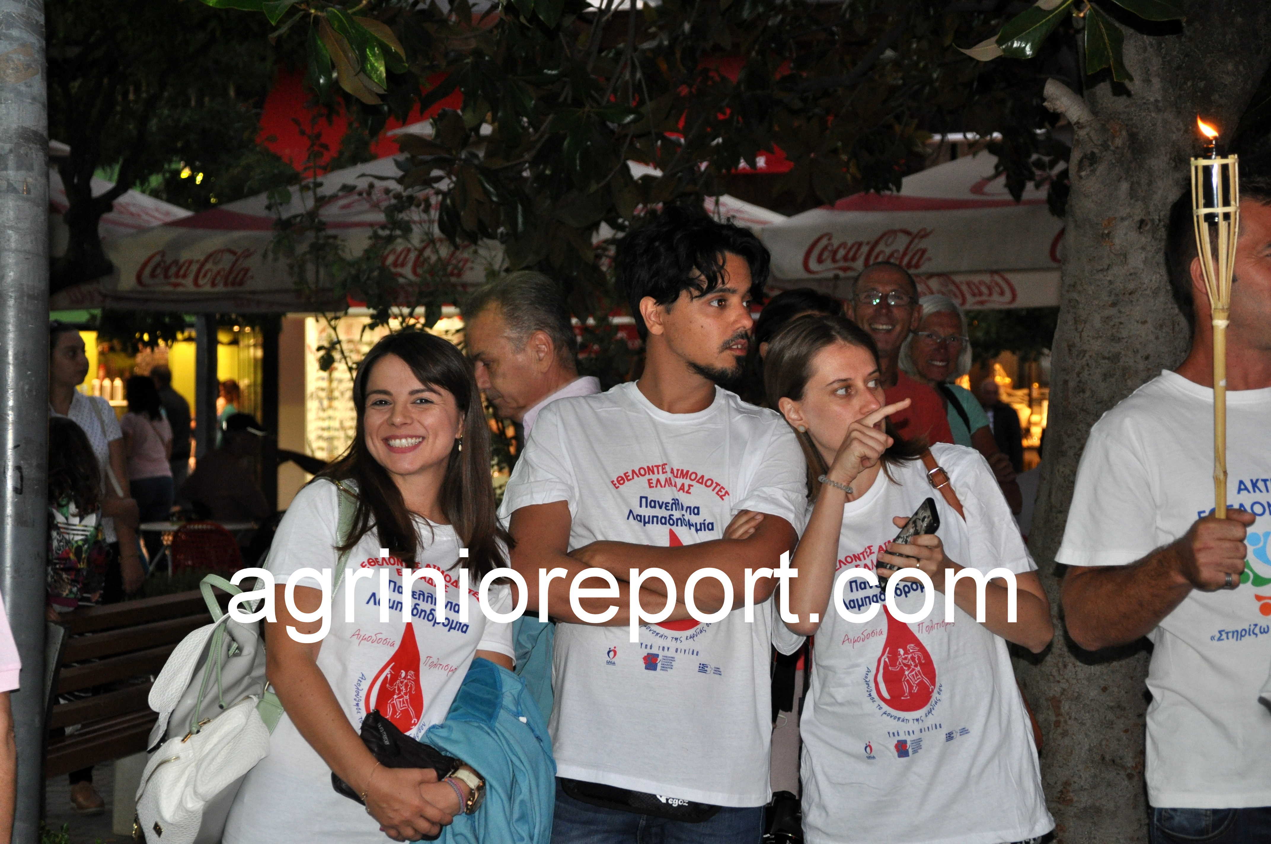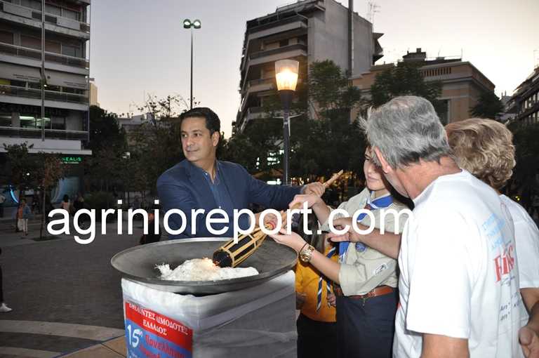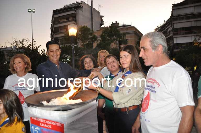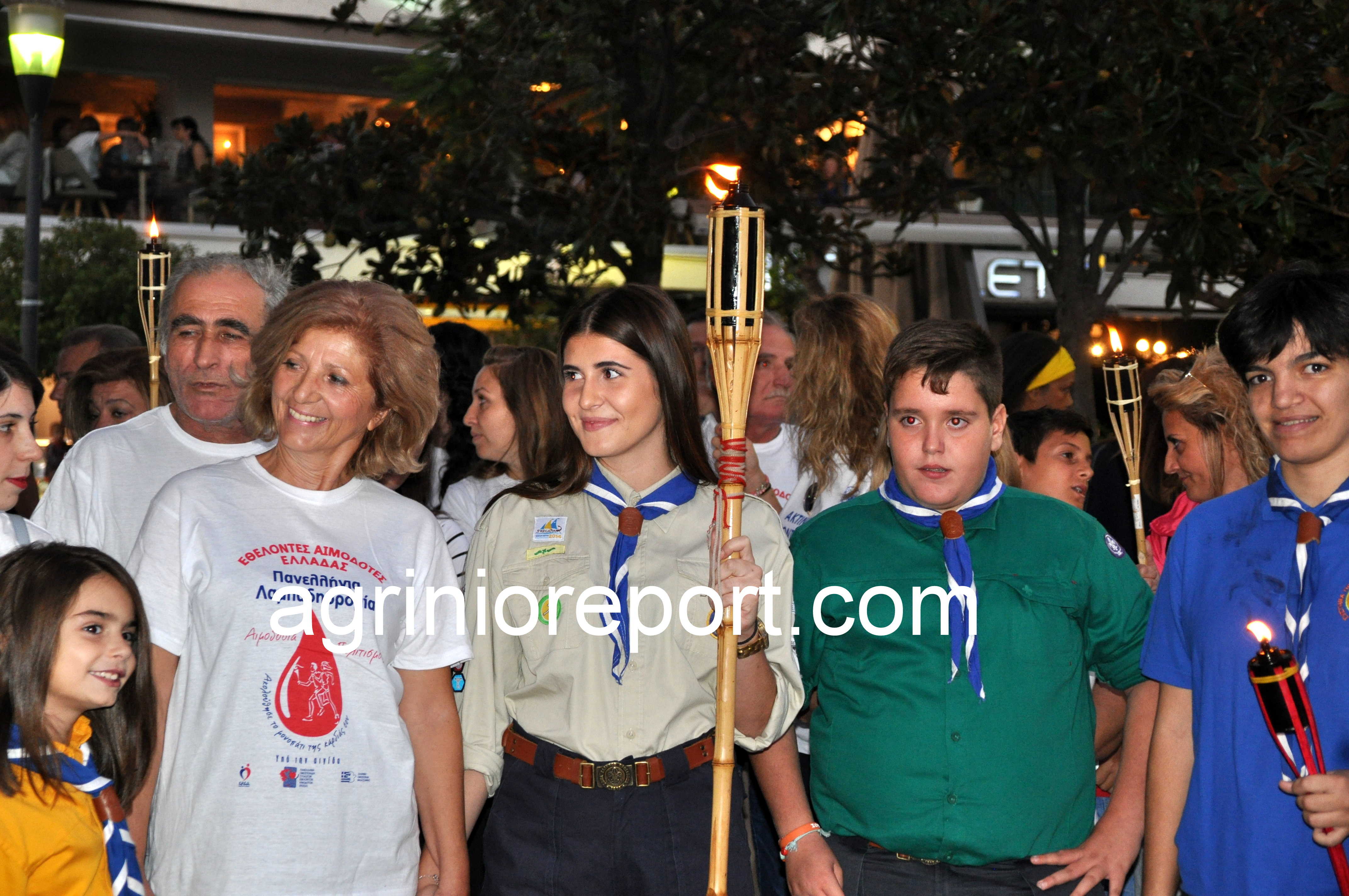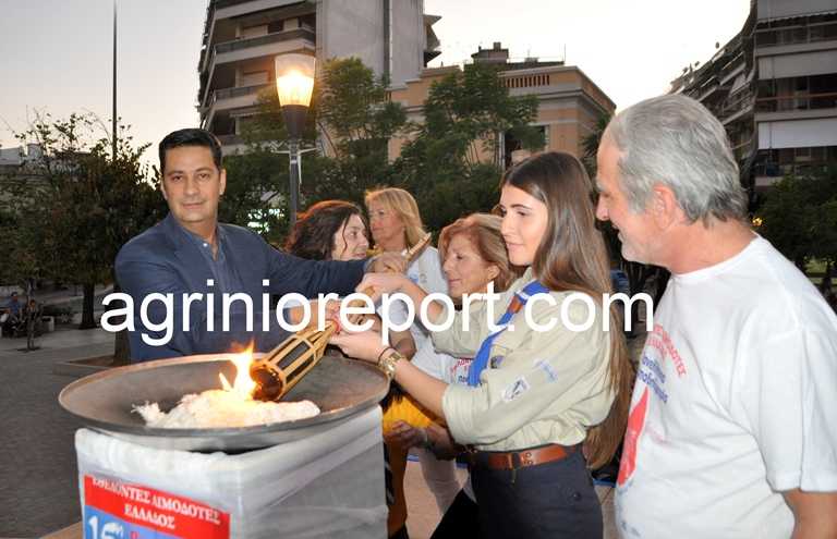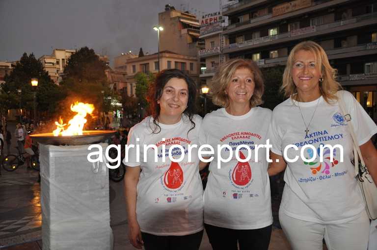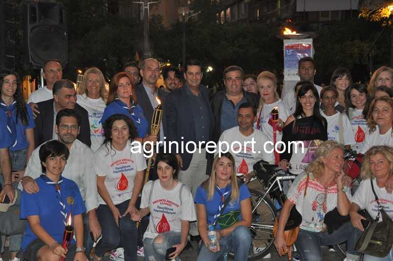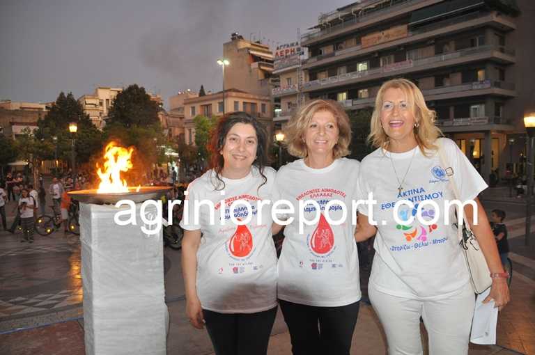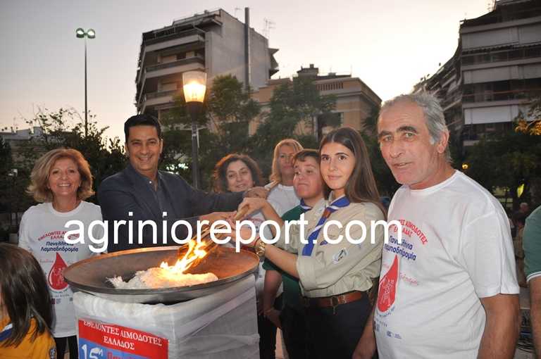 Μετά την επιτυχημένη μοτοπορεία οι μοτοσικλετιστές παρέδωσαν τη Φλόγα σε πεζούς και ποδηλάτες, παιδιά, εθελοντές, αιμοδότες, μέλη Συλλόγων του Αγρινίου και κινήθηκαν με τελικό προορισμό την Πλατεία Δημοκρατίας όπου και άναψε ο Βωμός της φλόγας των Εθελοντών Αιμοδοτών.