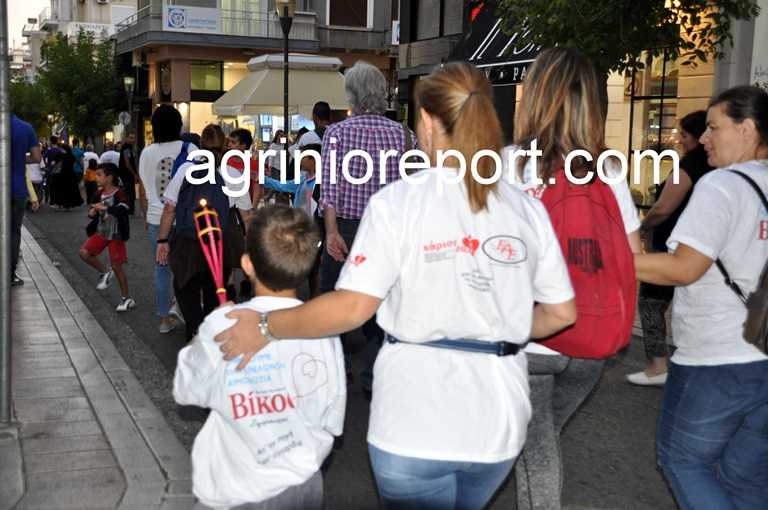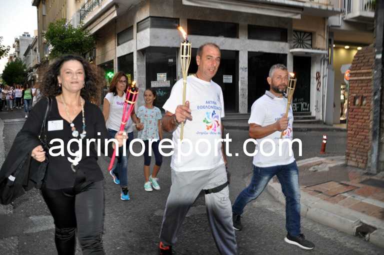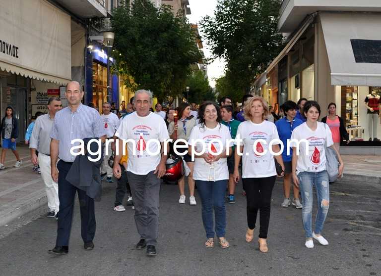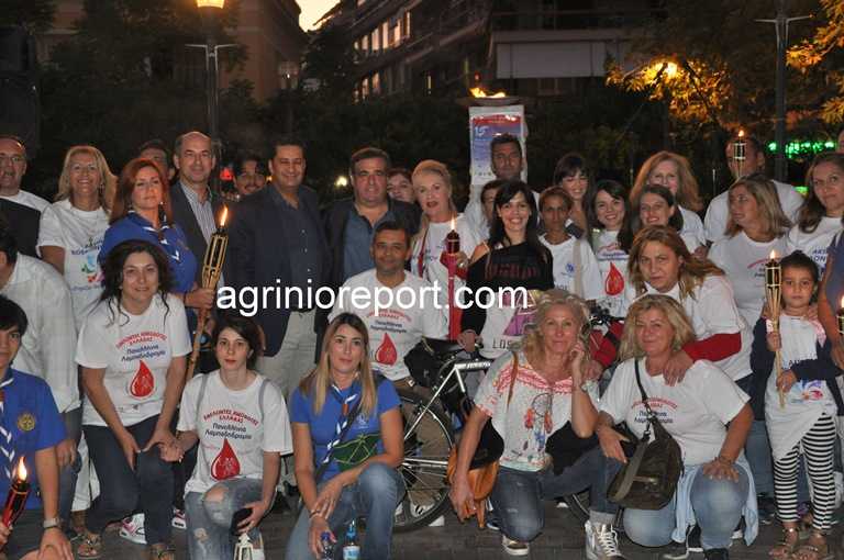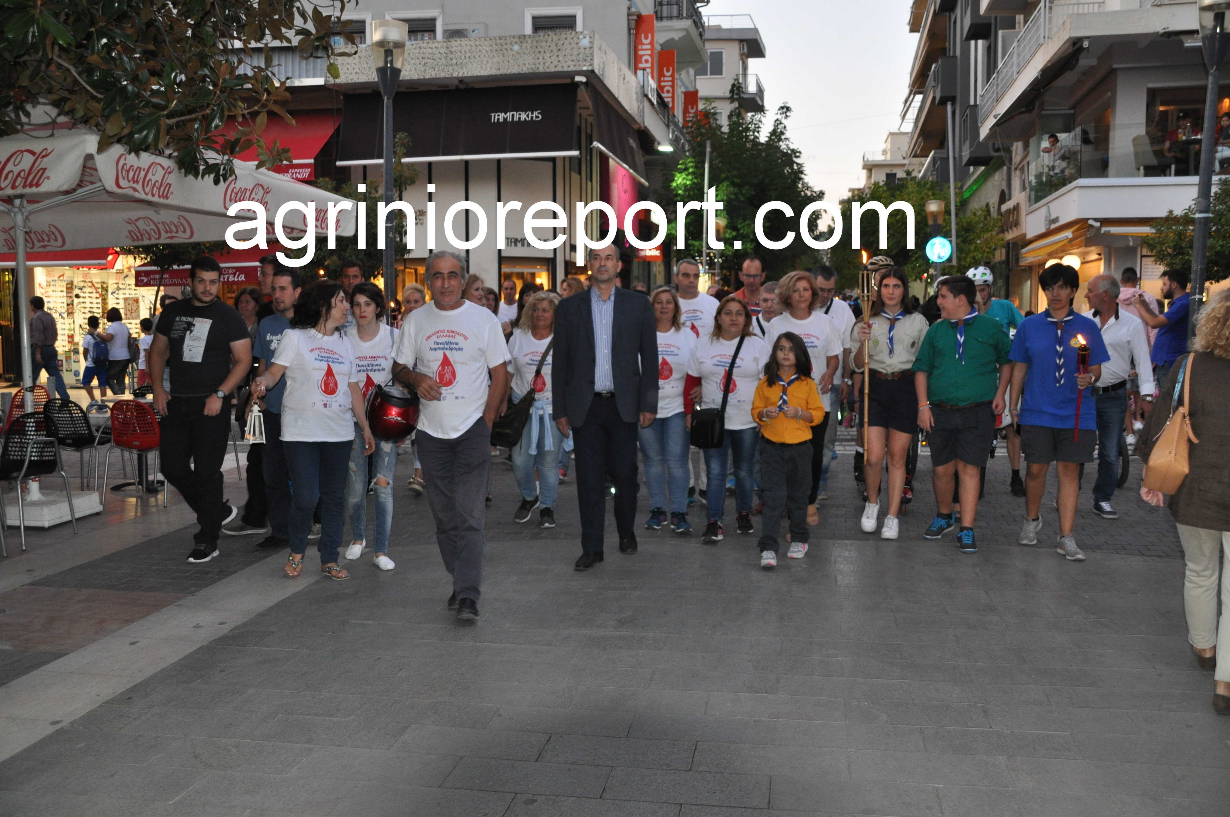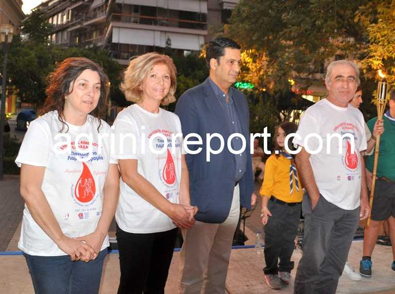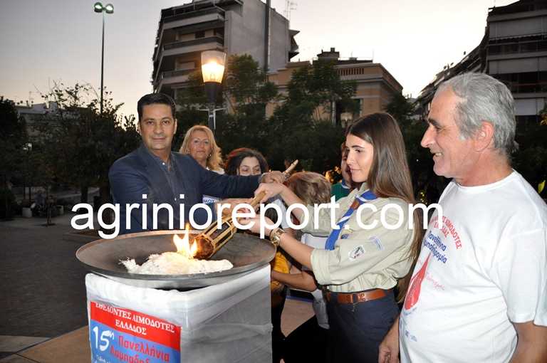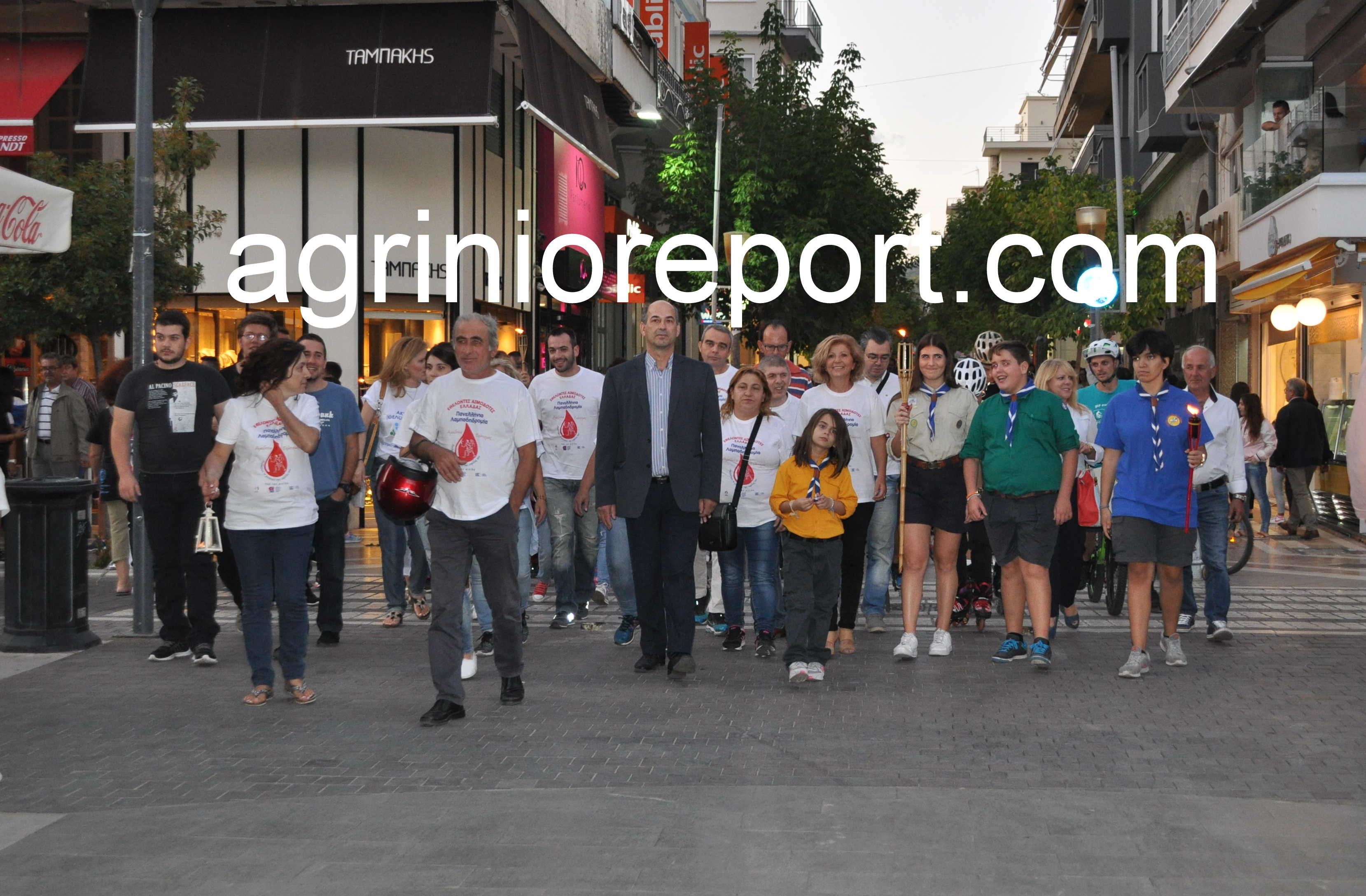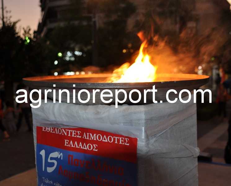 Μετά την επιτυχημένη μοτοπορεία οι μοτοσικλετιστές παρέδωσαν τη Φλόγα σε πεζούς και ποδηλάτες, παιδιά, εθελοντές, αιμοδότες, μέλη Συλλόγων του Αγρινίου και κινήθηκαν με τελικό προορισμό την Πλατεία Δημοκρατίας όπου και άναψε ο Βωμός της φλόγας των Εθελοντών Αιμοδοτών.