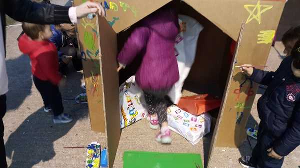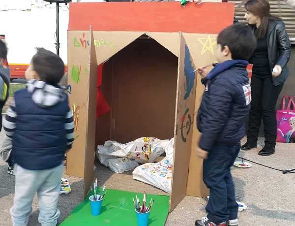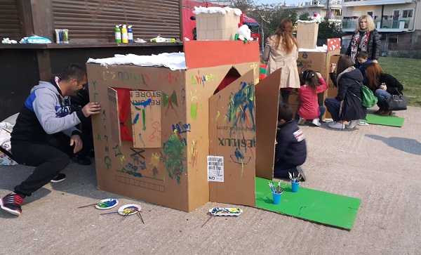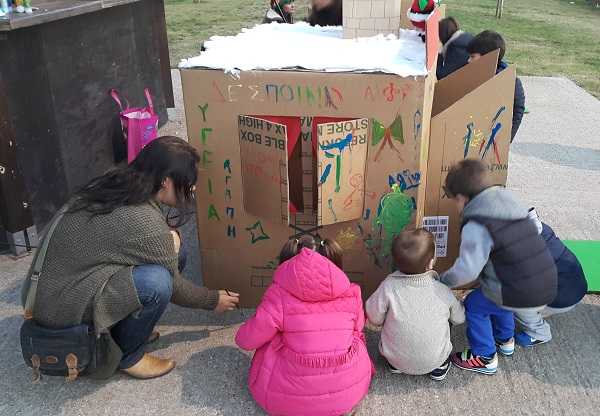 Μικρά παιδιά μαζί με τους γονείς τους διασκέδασαν ζωγραφίζοντας σπίτια φτιαγμένα από χαρτόνι τα οποία γέμισαν με δώρα. Τα δώρα αυτά θα δοθούν στα παιδιά οικογενειών που δεν μπορούν να ανταπεξέλθουν οικονομικά και κοινωνικά στις απαιτήσεις της εποχής. Η συμμετοχή όλων ήταν ιδιαίτερα σημαντική και καθοριστικής σημασίας και υπήρξε μεγάλη ανταπόκριση.