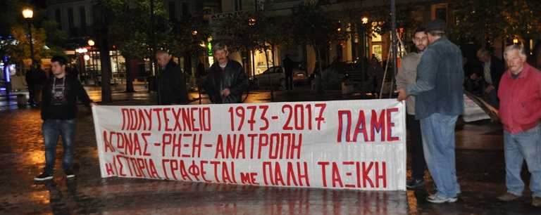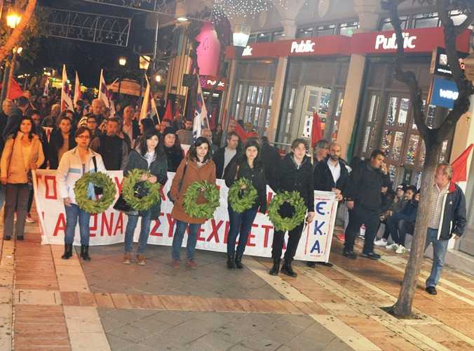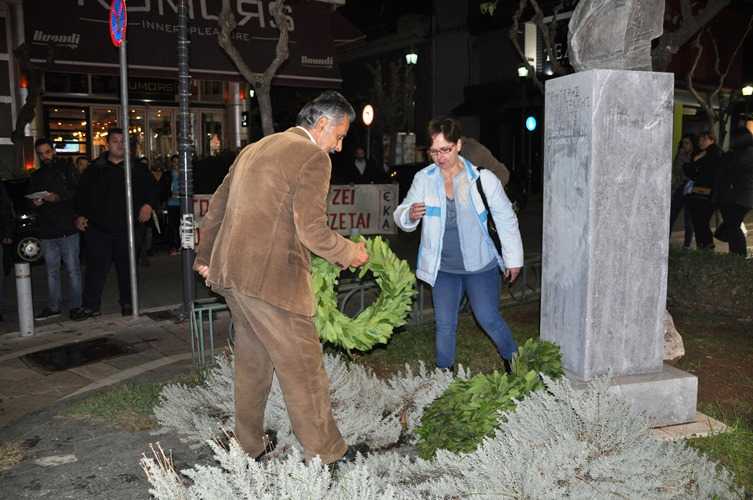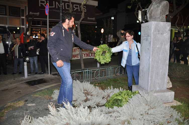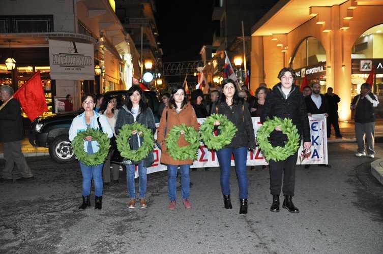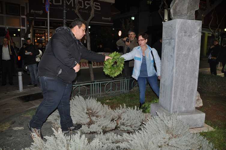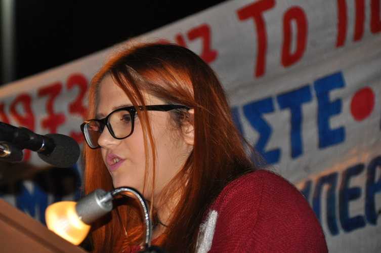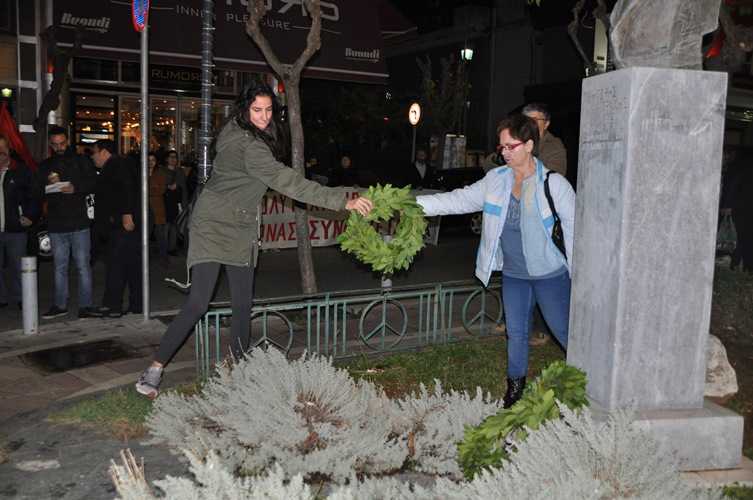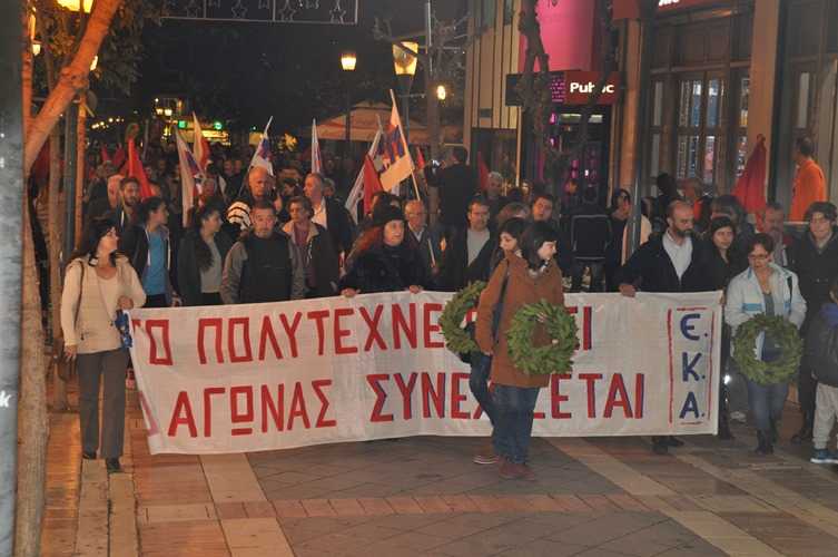 Στην πλατεία Δημοκρατίας δόθηκε η έναρξη των επετειακών εκδηλώσεων με τον χαιρετισμό για την σημασία της σημερινής ημέρας, της φοιτήτριας Γεωργίας Παρασκευουλάκου μέλους του Μετώπου Αγώνα Σπουδαστών.