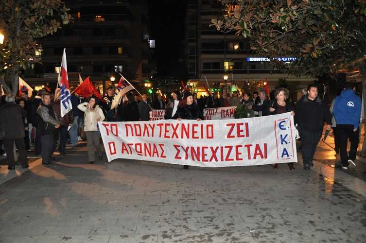 Συγκέντρωση στην πλατεία Δημοκρατίας Αγρινίου με χαιρετισμούς και κεντρική ομιλία-Πορεία στους δρόμους της πόλης και κατάθεση στεφάνων στο μνημείο του Γρηγόρη Λαμπράκη περιελάμβανε το πρόγραμμα των εκδηλώσεων μνήμης για την 44η επέτειο του Πολυτεχνείου που διοργάνωσε το Ε.Κ.Α .