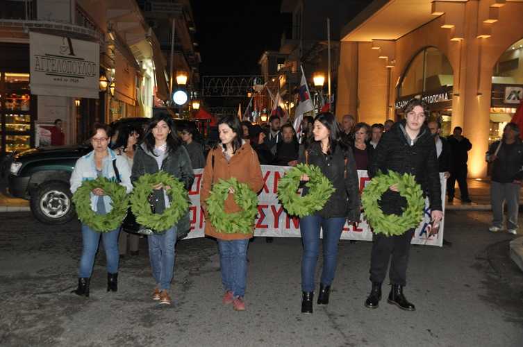 Ακολούθησε πορεία στους κεντρικούς δρόμους της πόλης του Αγρινίου με κατάληξη στο μνημείο της προτομής του Γρηγόρη Λαμπράκη όπου και έγινε κατάθεση στεφάνων.