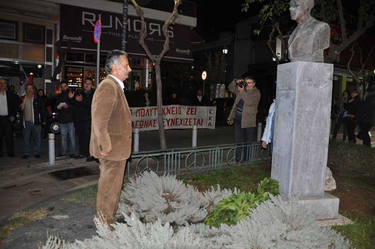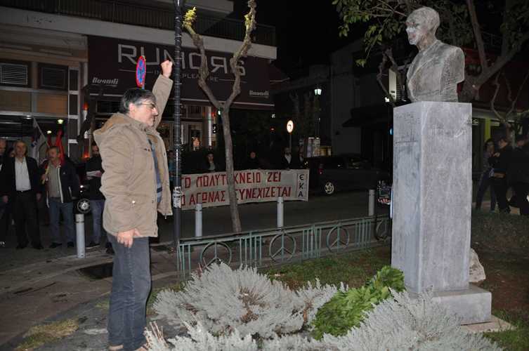 Στην συνέχεια στο βήμα ανέβηκε ο Σπύρος Κατσακιώρης μέλος της διοίκηση του ΕΚΑ ο οποίος με την κεντρική του ομιλία τόνισε την σημασία της ημέρας του Πολυτεχνείου στο χθες και το σήμερα, την ανάγκη για την συνέχιση των αγώνων καθώς και το πώς το Πολυτεχνείο είναι πιο επίκαιρο στις μέρες μας από ποτέ, ενώ αναφέρθηκε και στα τραγικά γεγονότα των ημερών και την στάση της πολιτικής ηγεσίας.