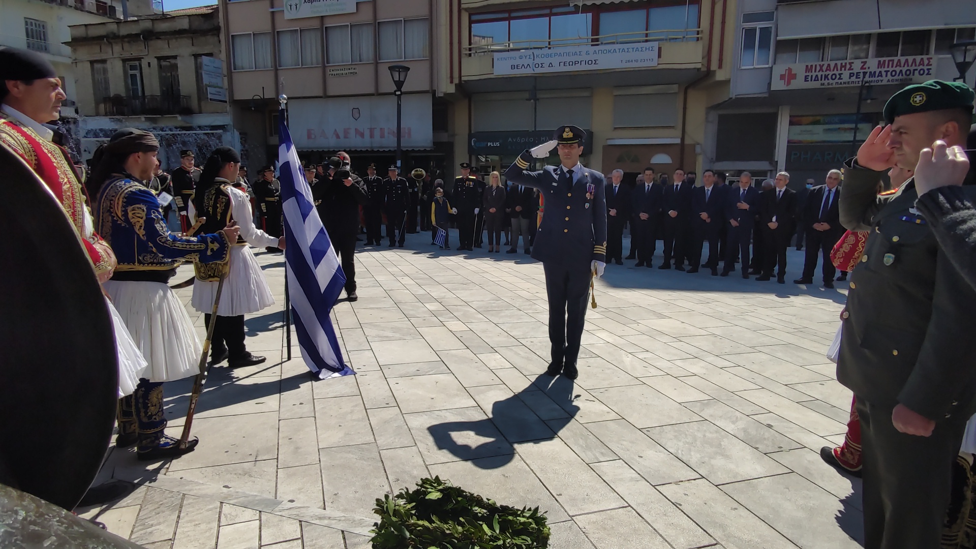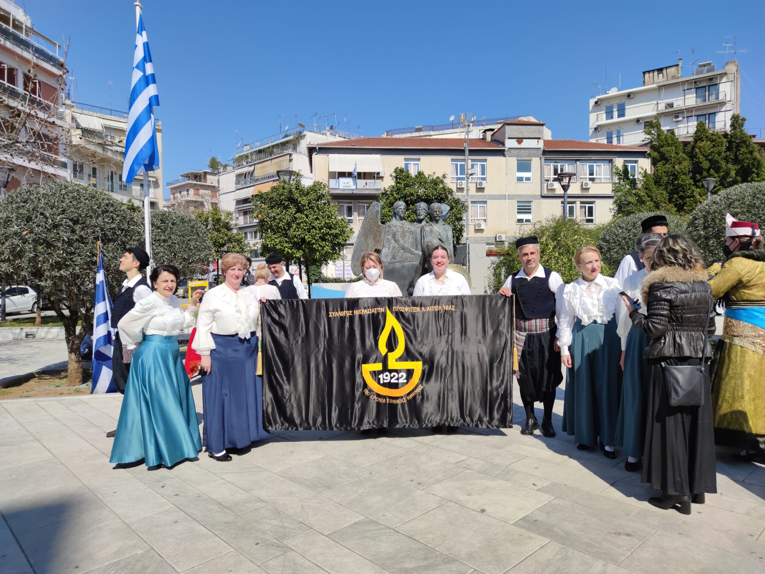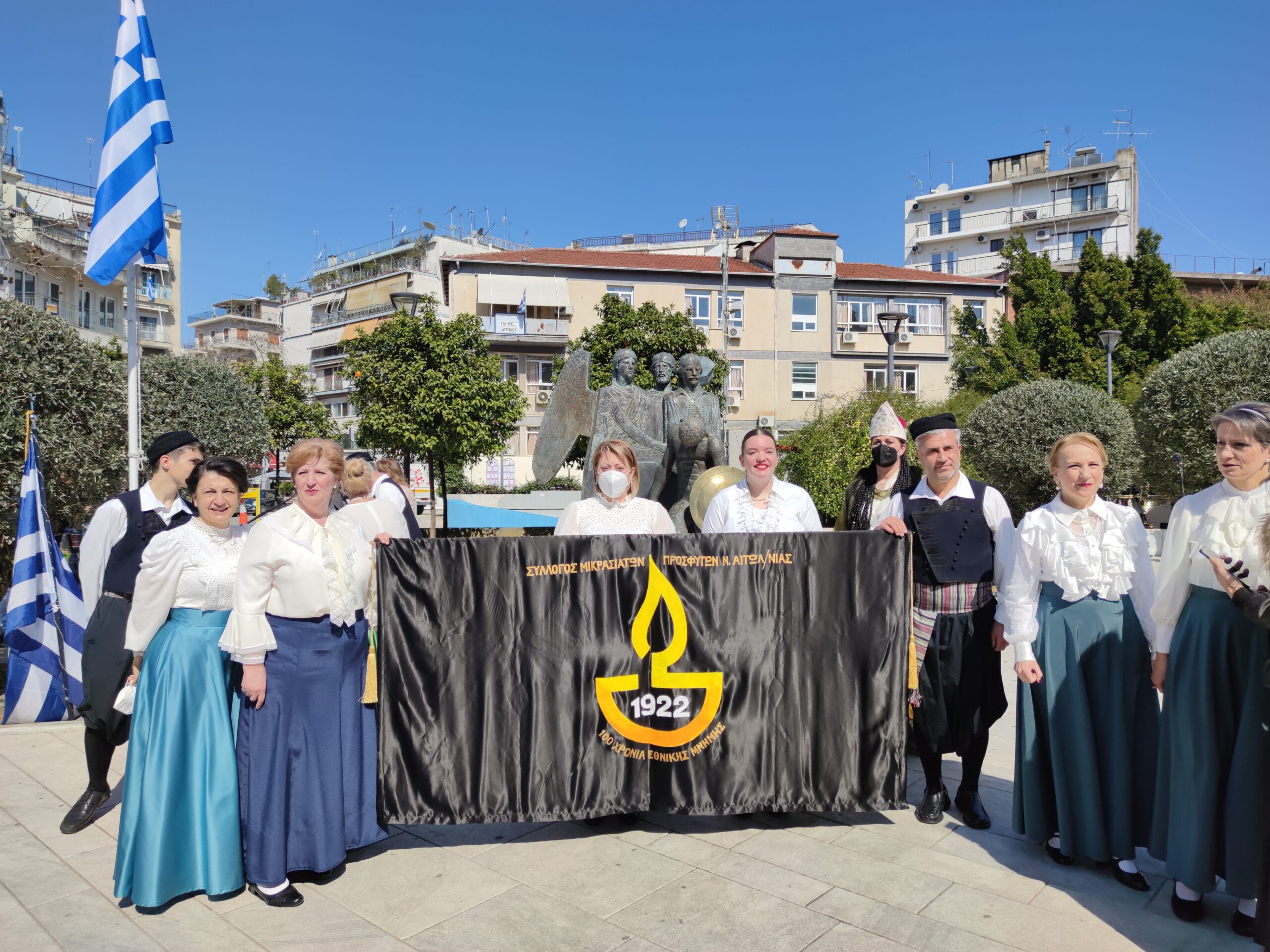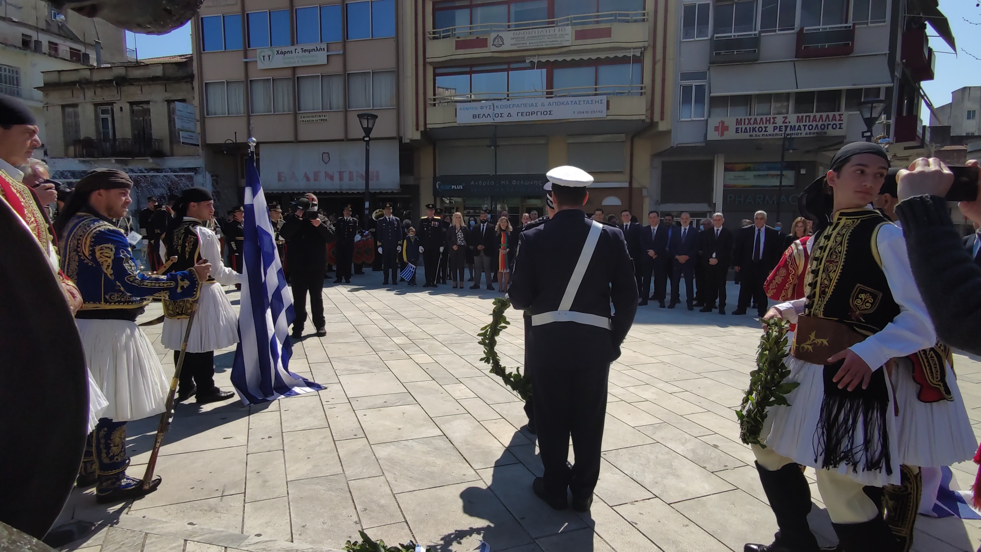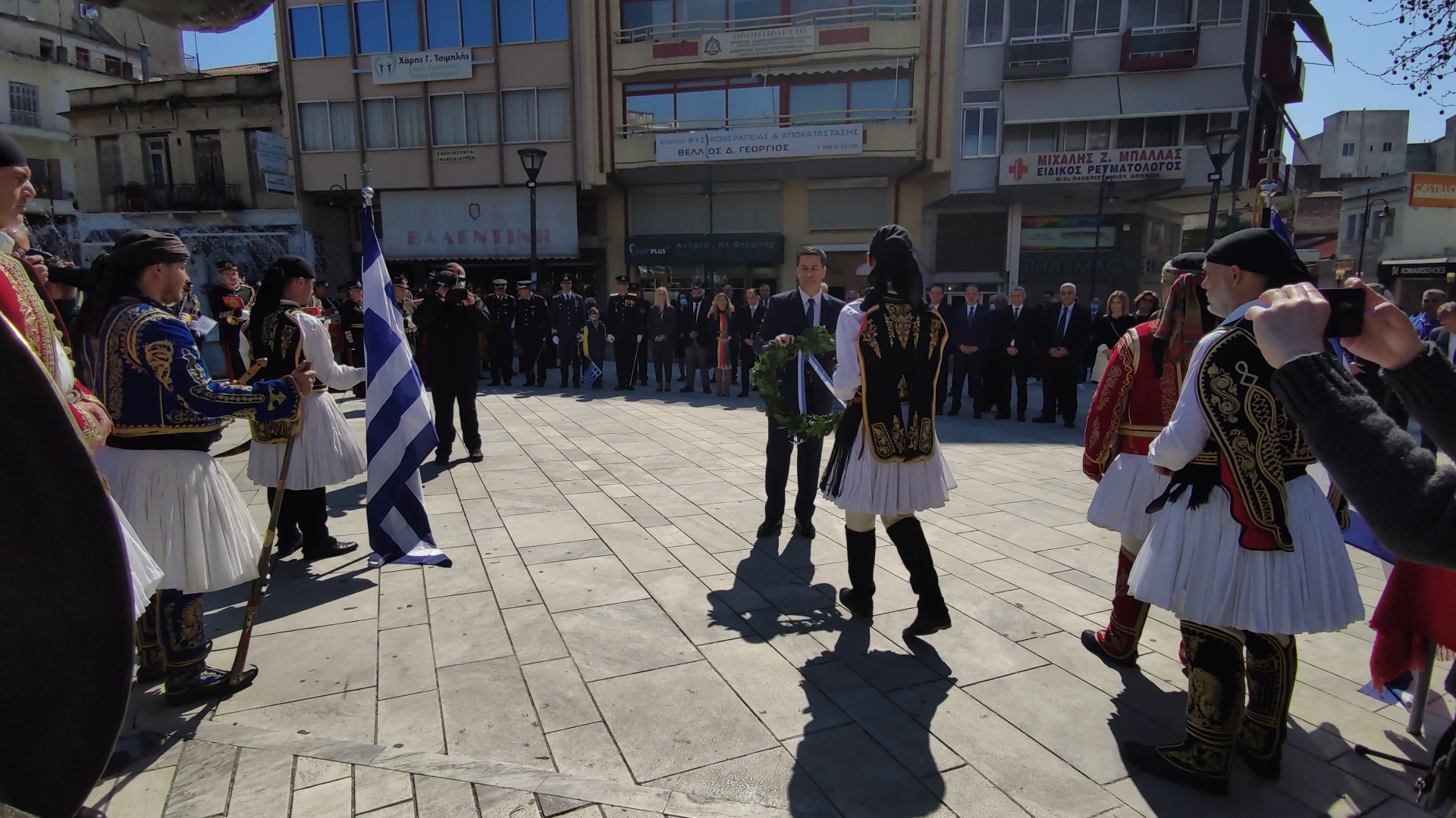 Στην συνέχεια ακολούθησε επιμνημόσυνη δέηση και κατάθεση στεφάνων στο Μνημείο των Πεσόντων στην Πλατεία Μαρίας Δημάδη.