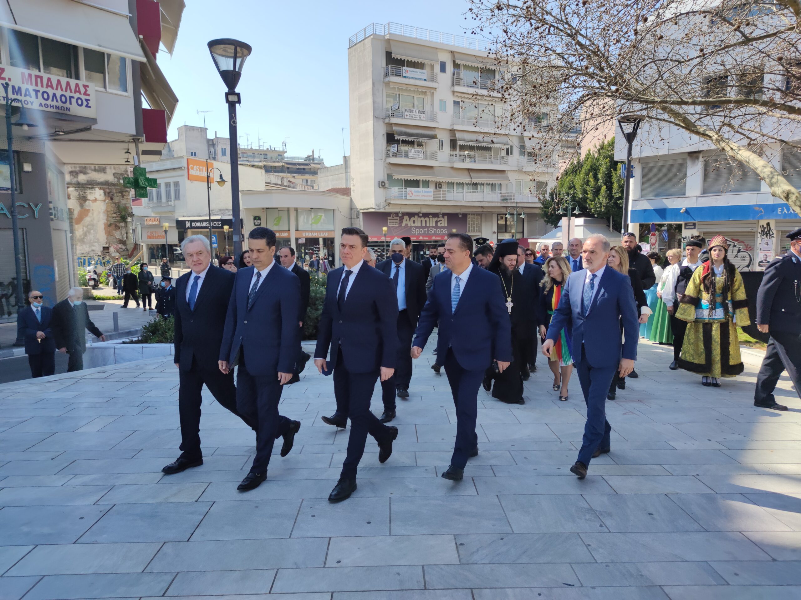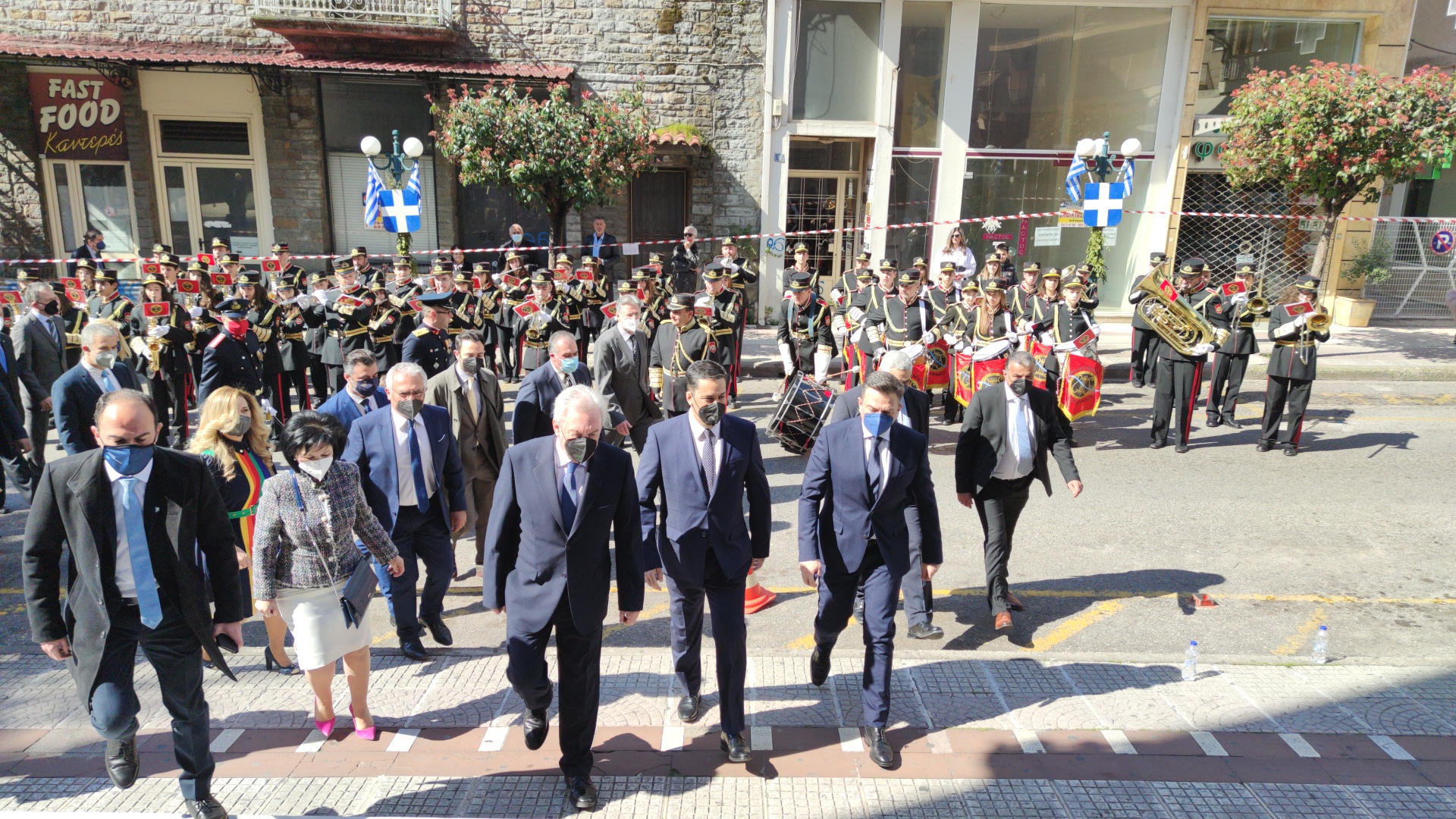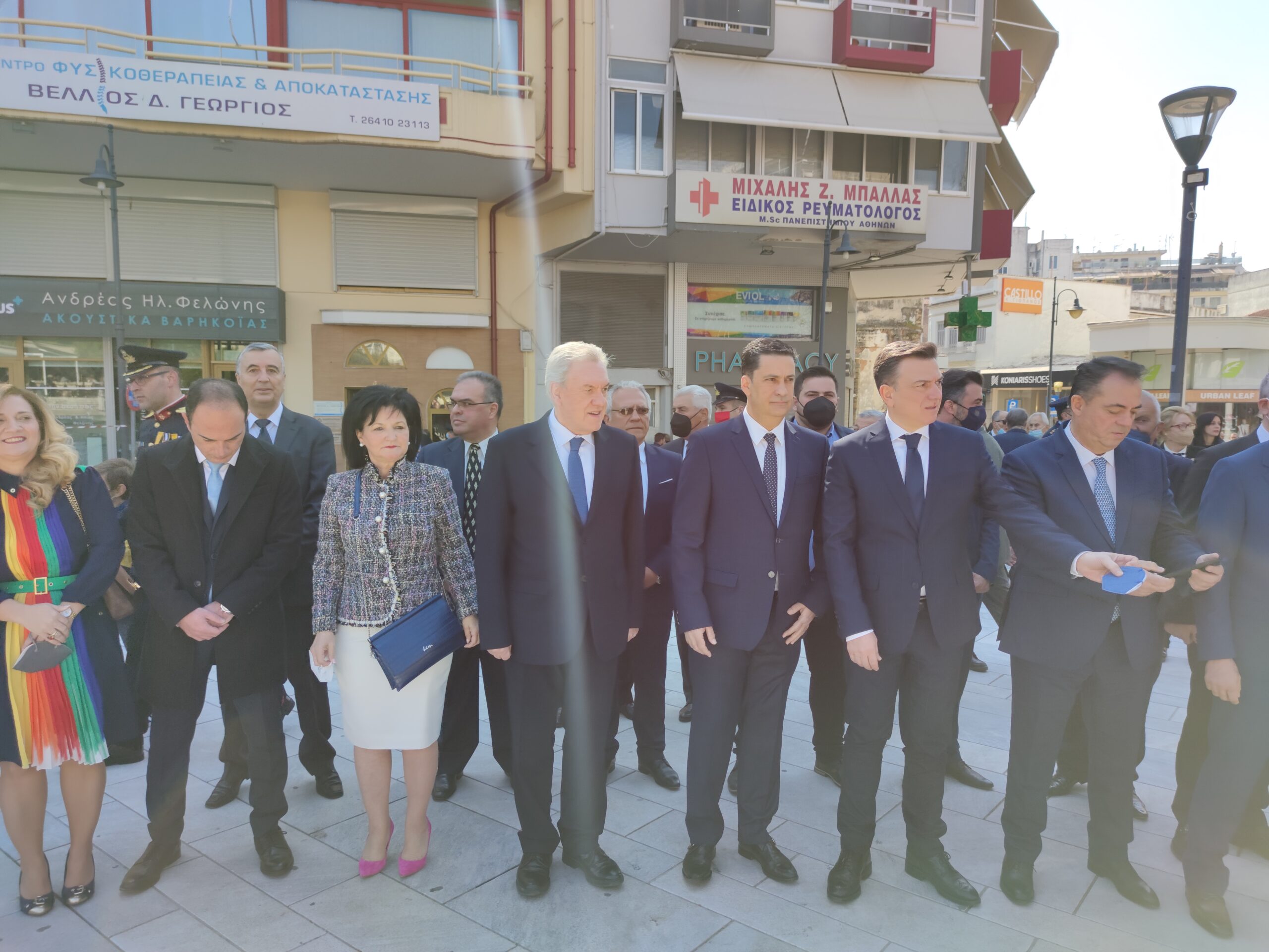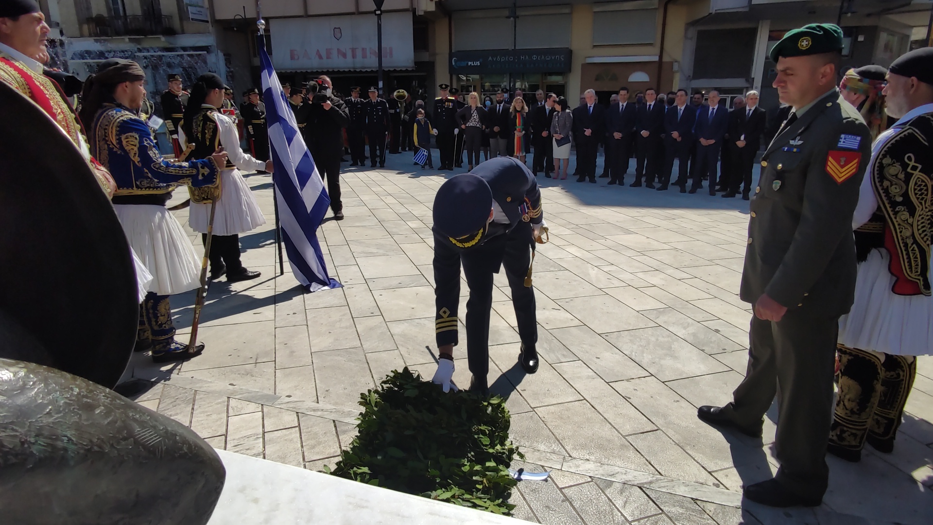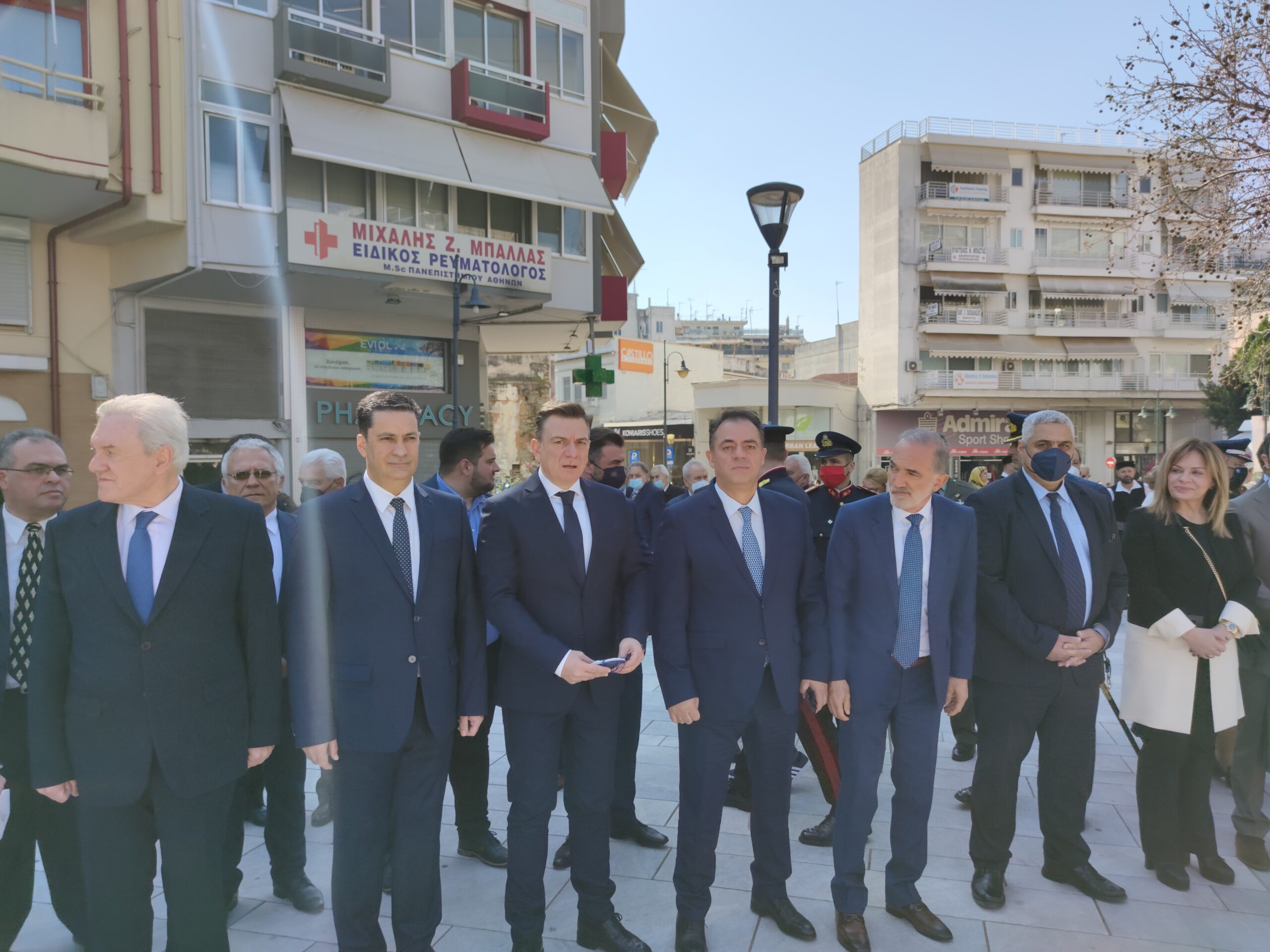 Στην συνέχεια ακολούθησε επιμνημόσυνη δέηση και κατάθεση στεφάνων στο Μνημείο των Πεσόντων στην Πλατεία Μαρίας Δημάδη.