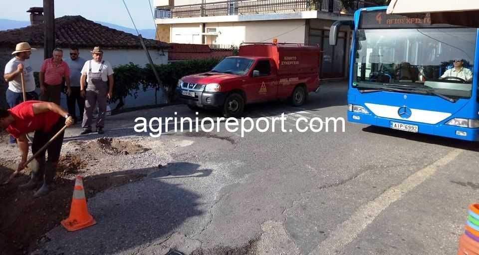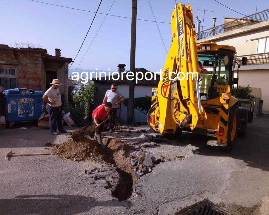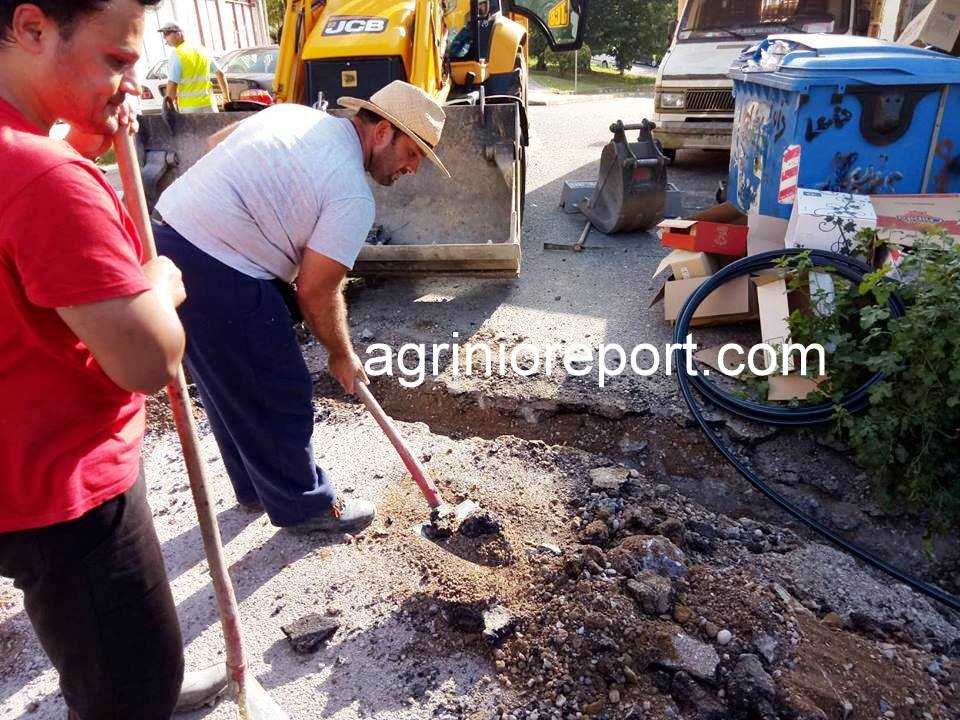 Εργασίες πραγματοποιεί από νωρίς το πρωί συνεργείο της Δ.Ε.Υ.Α. Αγρινίου επί της οδού Κολοκοτρώνη στην περιοχή του Αγίου Θωμά.