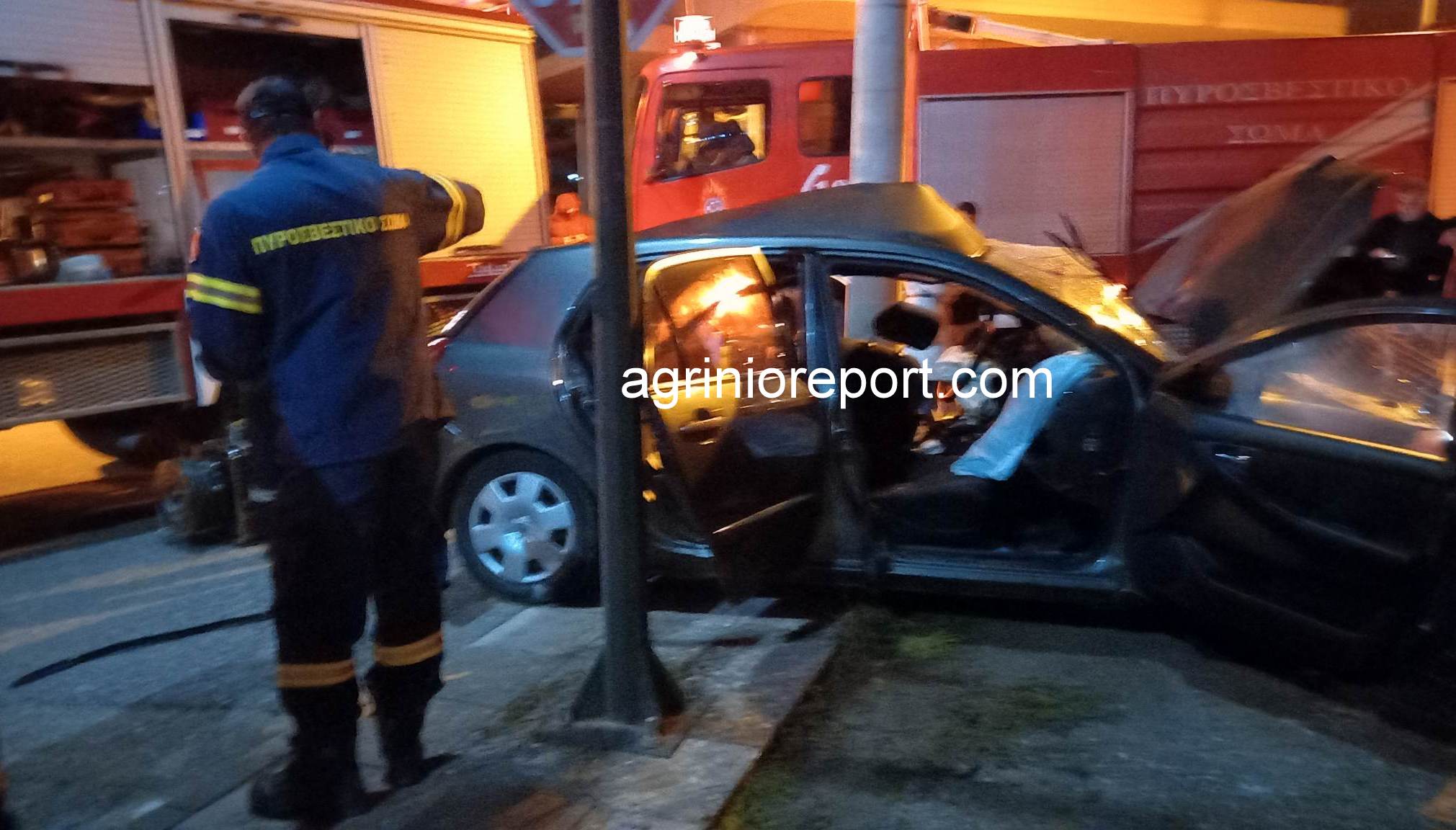 Τροχαίο ατύχημα, με Ι.Χ. επιβατικό αυτοκίνητο να καρφώνεται σε κολώνα ηλεκτροφωτισμού σημειώθηκε σήμερα το βράδυ στην οδό Πατριάρχου Καλλινίκου Β δεξιά της Περιμετρικής Αγρινίου κάτω από άγνωστες μέχρι στιγμής αιτίες .