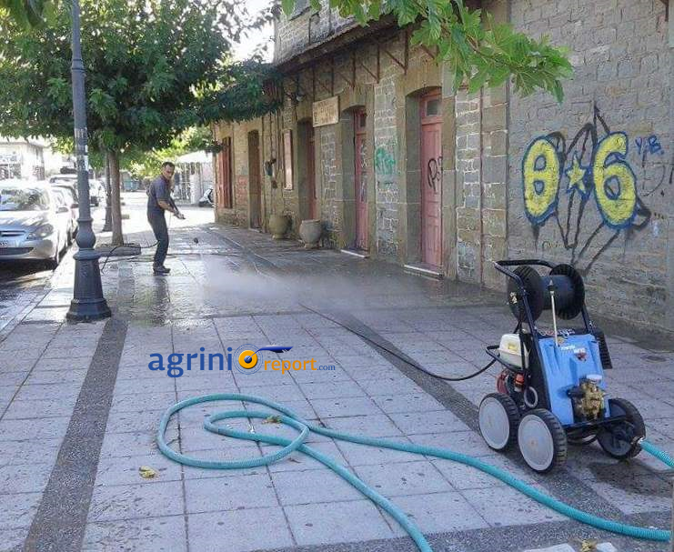 “Συνεργεία του Δήμου Αγρινίου έχουν ξεκινήσει τις τελευταίες ημέρες να καθαρίζουν και να απολυμαίνουν διάφορους κοινόχρηστους χώρους της πόλης. Έγινε μια αρχική προσπάθεια στη στοά Παπαγιάννη η οποία συνεχίστηκε με καθαρισμό επί της οδού Χαρίλαου Τρικούπη. Σήμερα τα συνεργεία του Δήμου επιχειρούν καθαρισμό στην οδό Λ. Μαβίλη, κοντά στην Οικονομική Υπηρεσία του Δήμου.