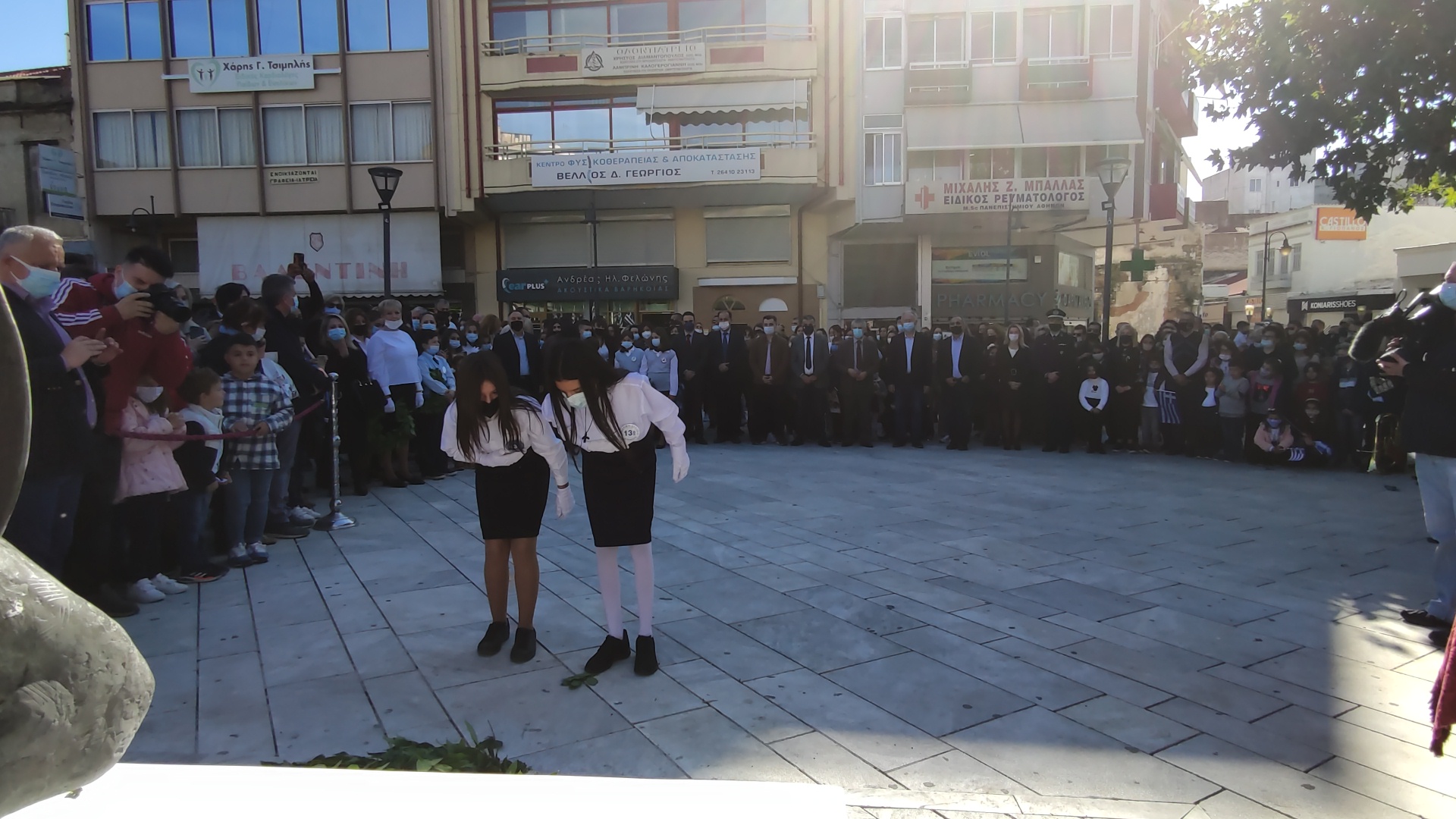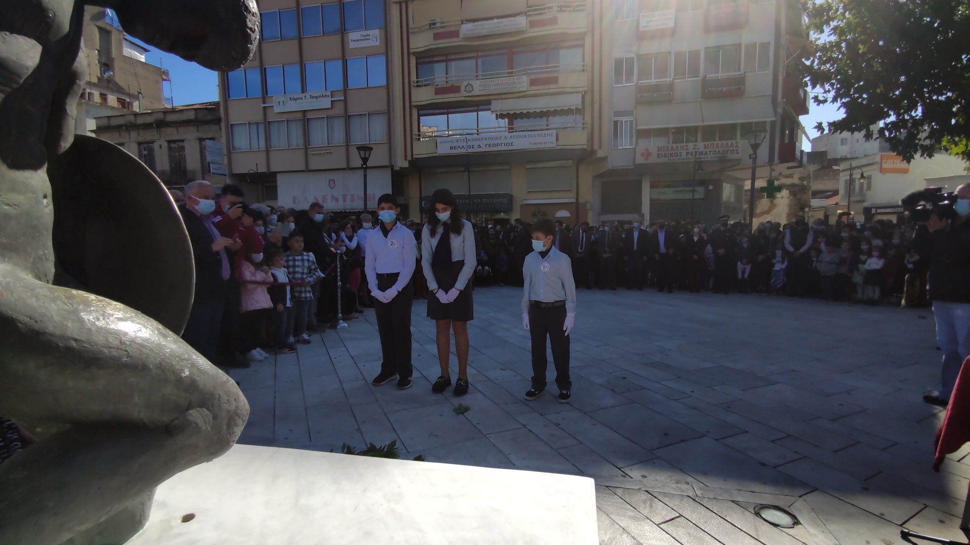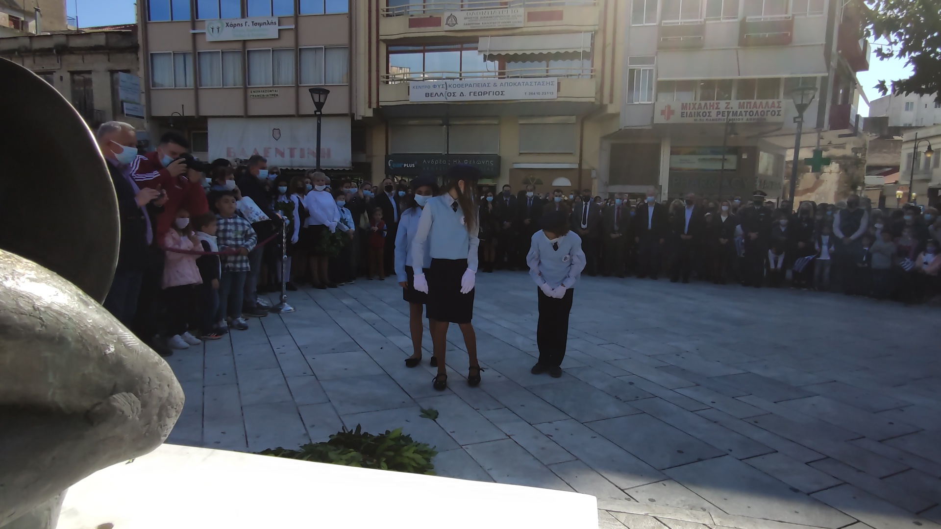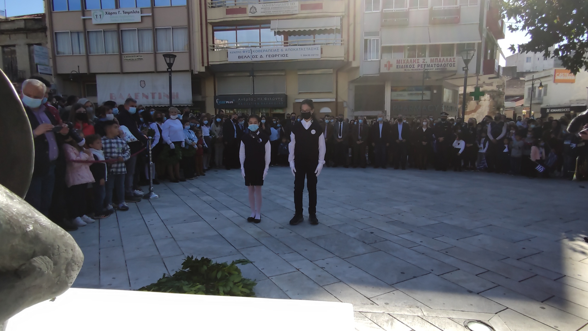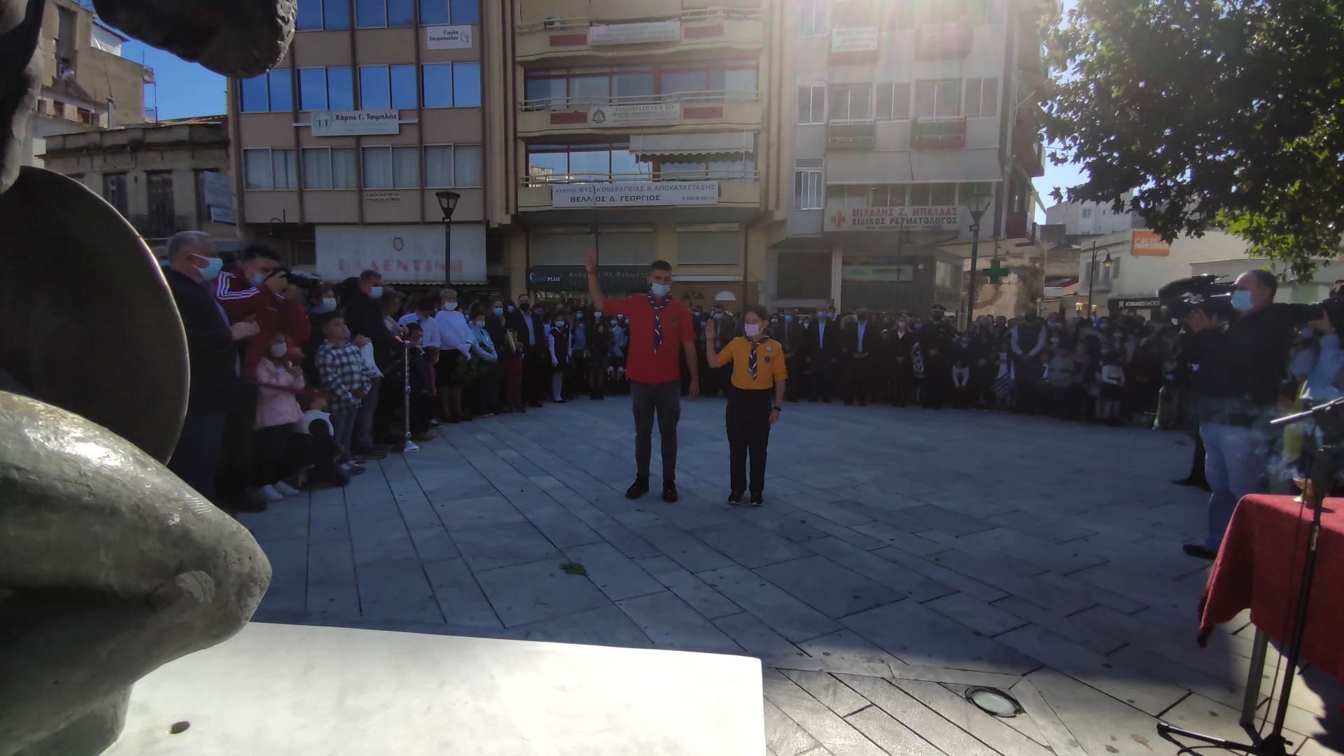 Στην πλατεία παραβρέθηκαν μαθητές από τα σχολεία της πόλης, εκπρόσωποι της Δημοτικής Αρχής, Σωμάτων Ασφαλείας, Φορέων και πολίτες που χειροκρότησαν τα παιδιά μικρά και μεγάλα.