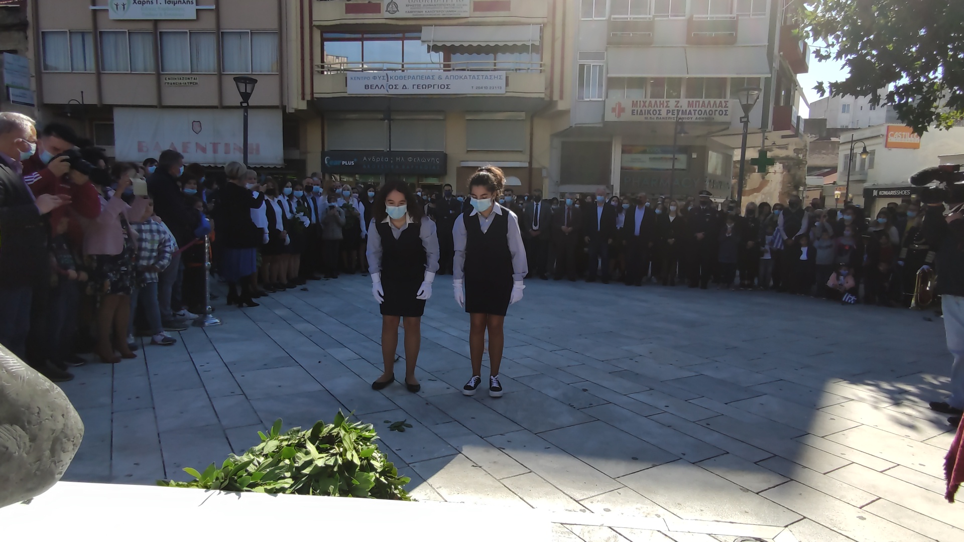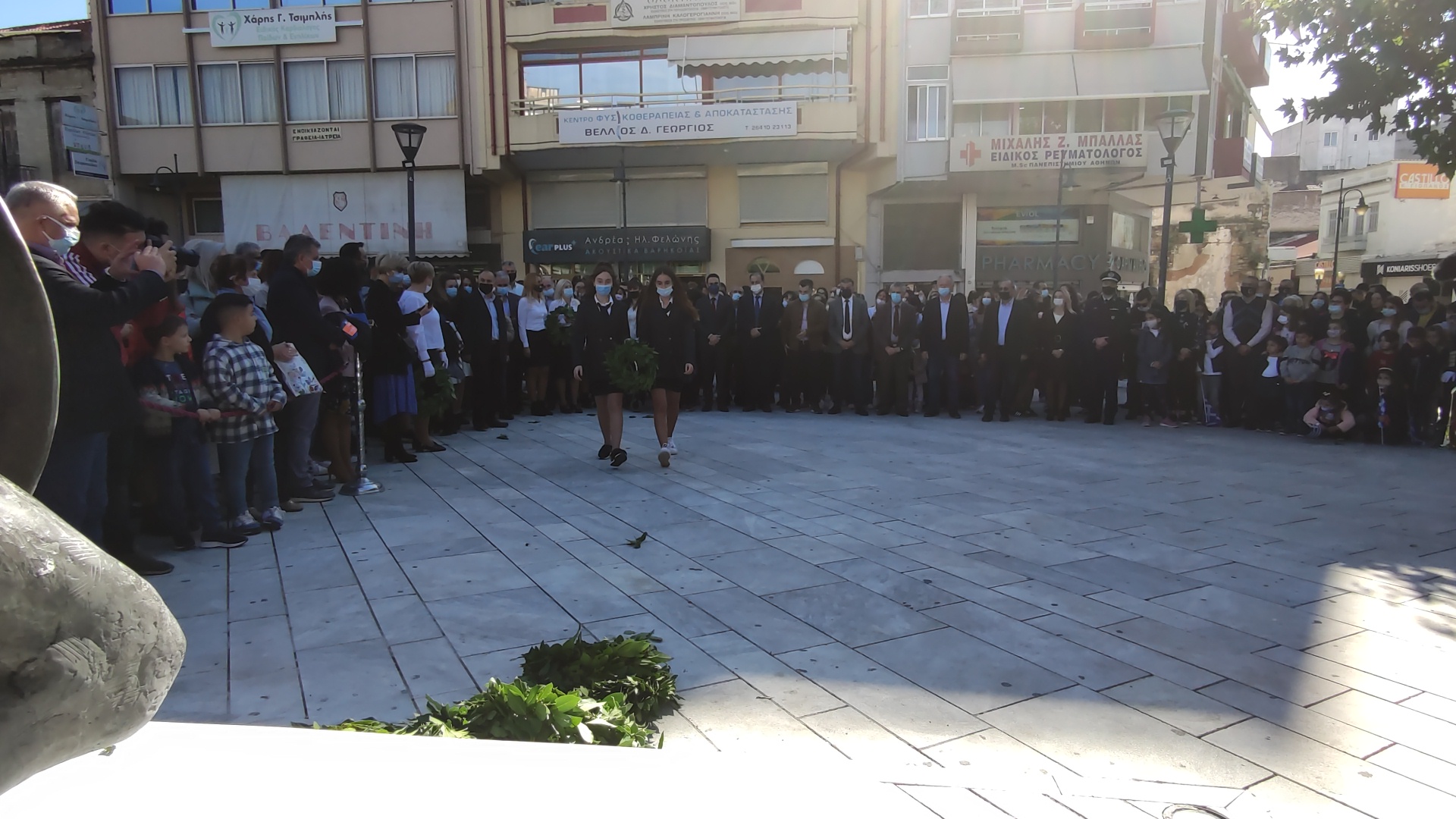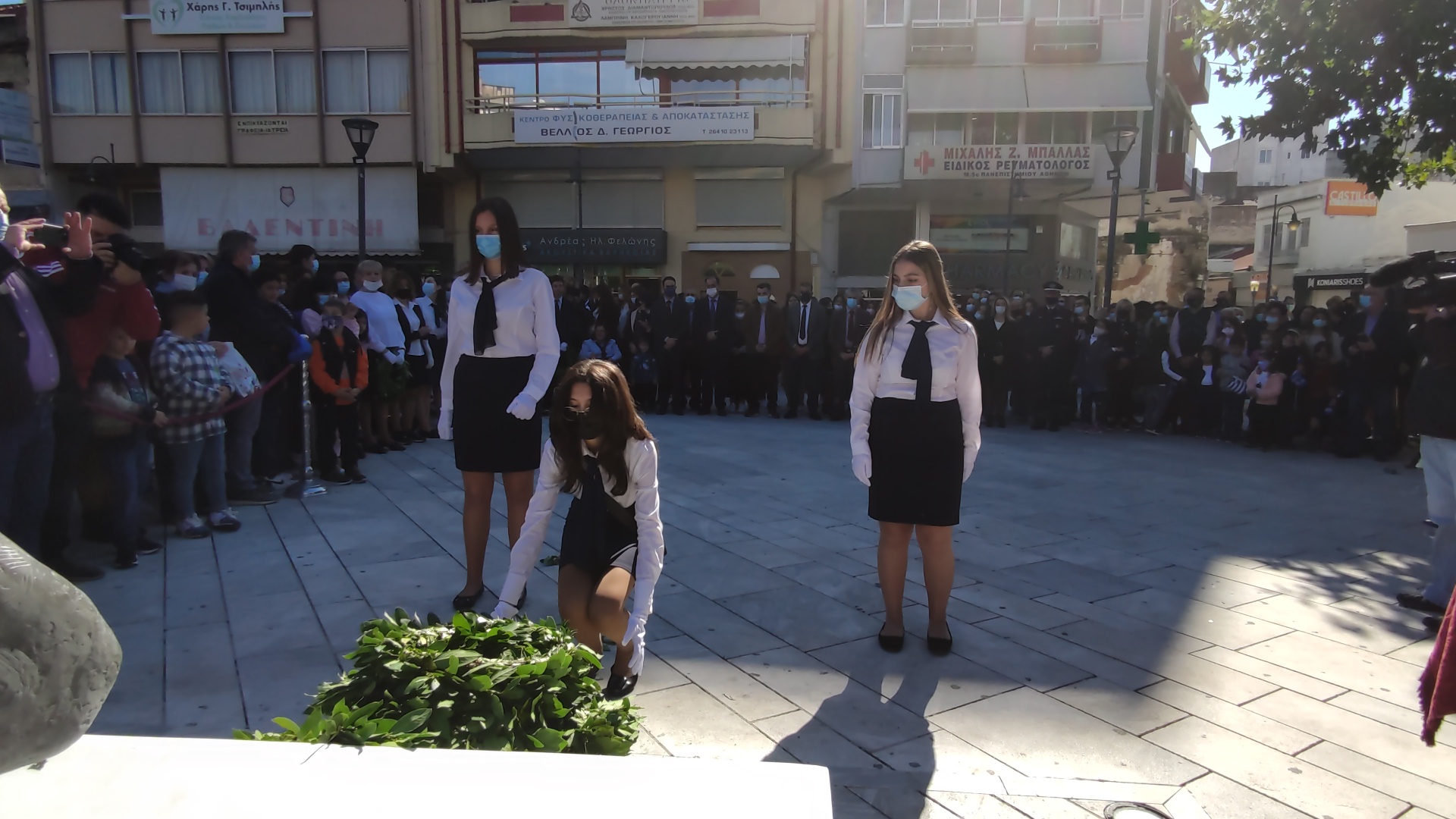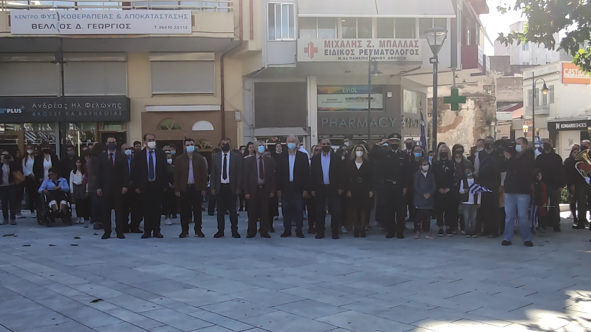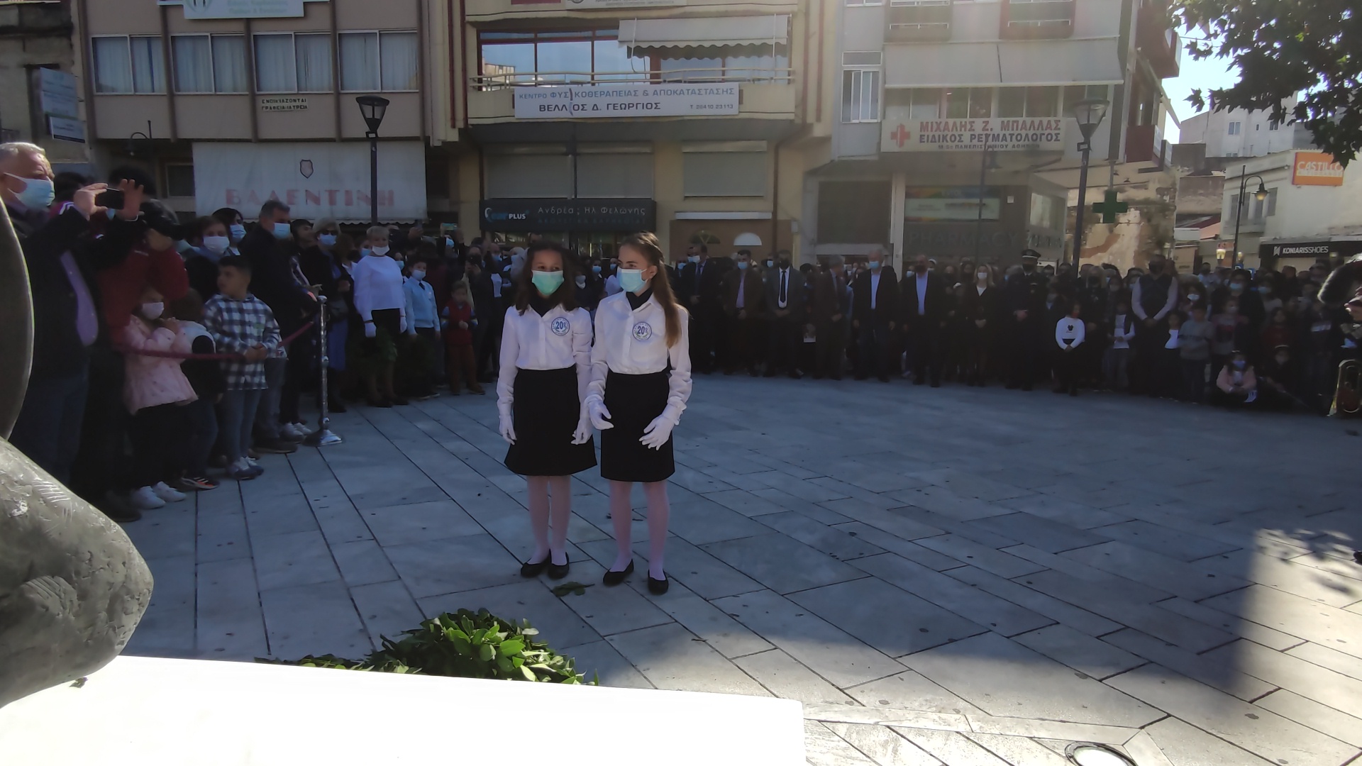 Στην πλατεία παραβρέθηκαν μαθητές από τα σχολεία της πόλης, εκπρόσωποι της Δημοτικής Αρχής, Σωμάτων Ασφαλείας, Φορέων και πολίτες που χειροκρότησαν τα παιδιά μικρά και μεγάλα.