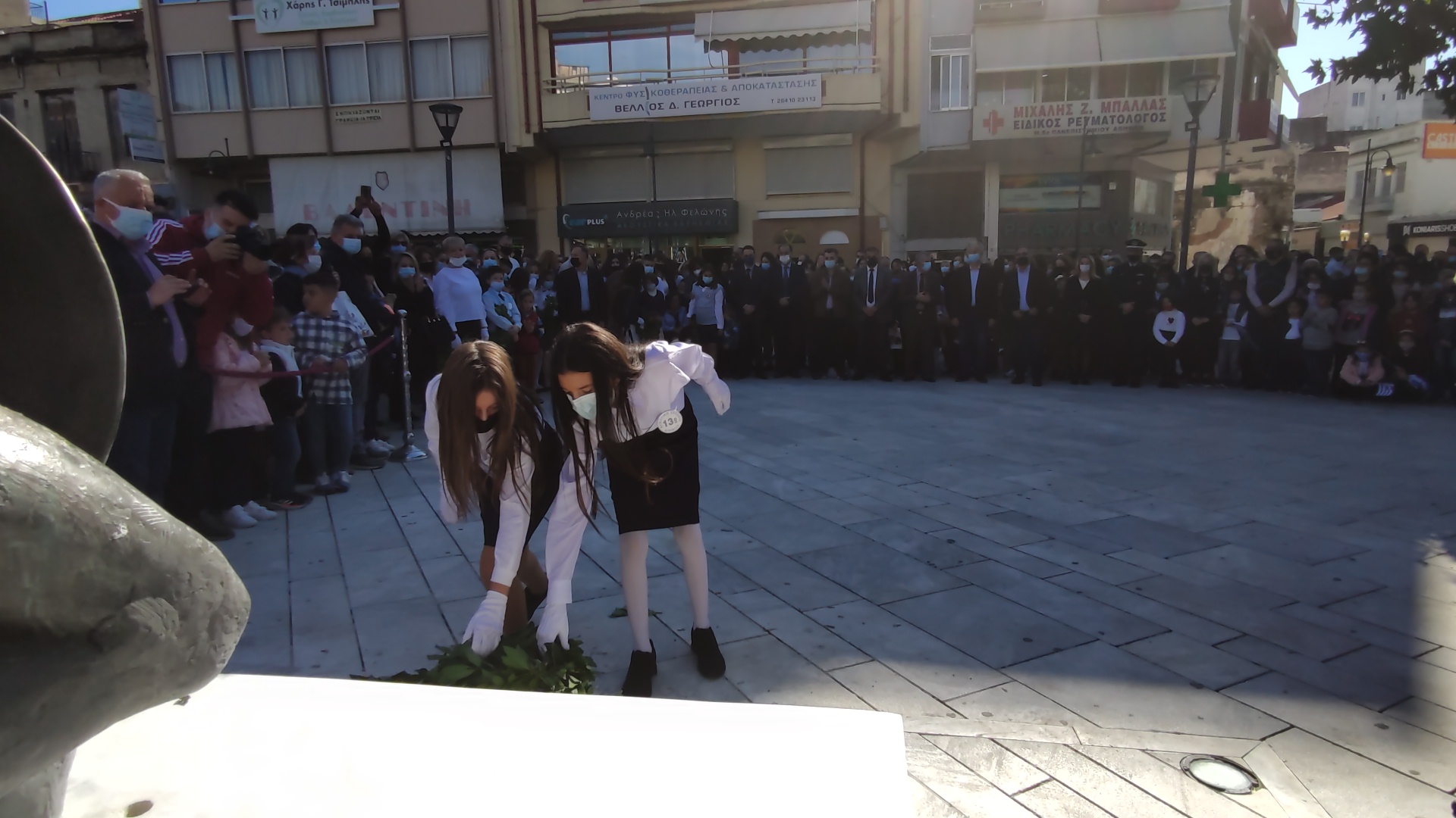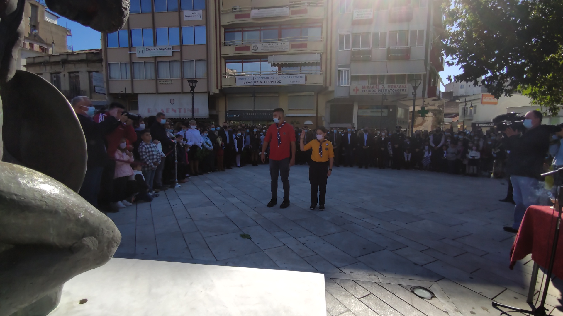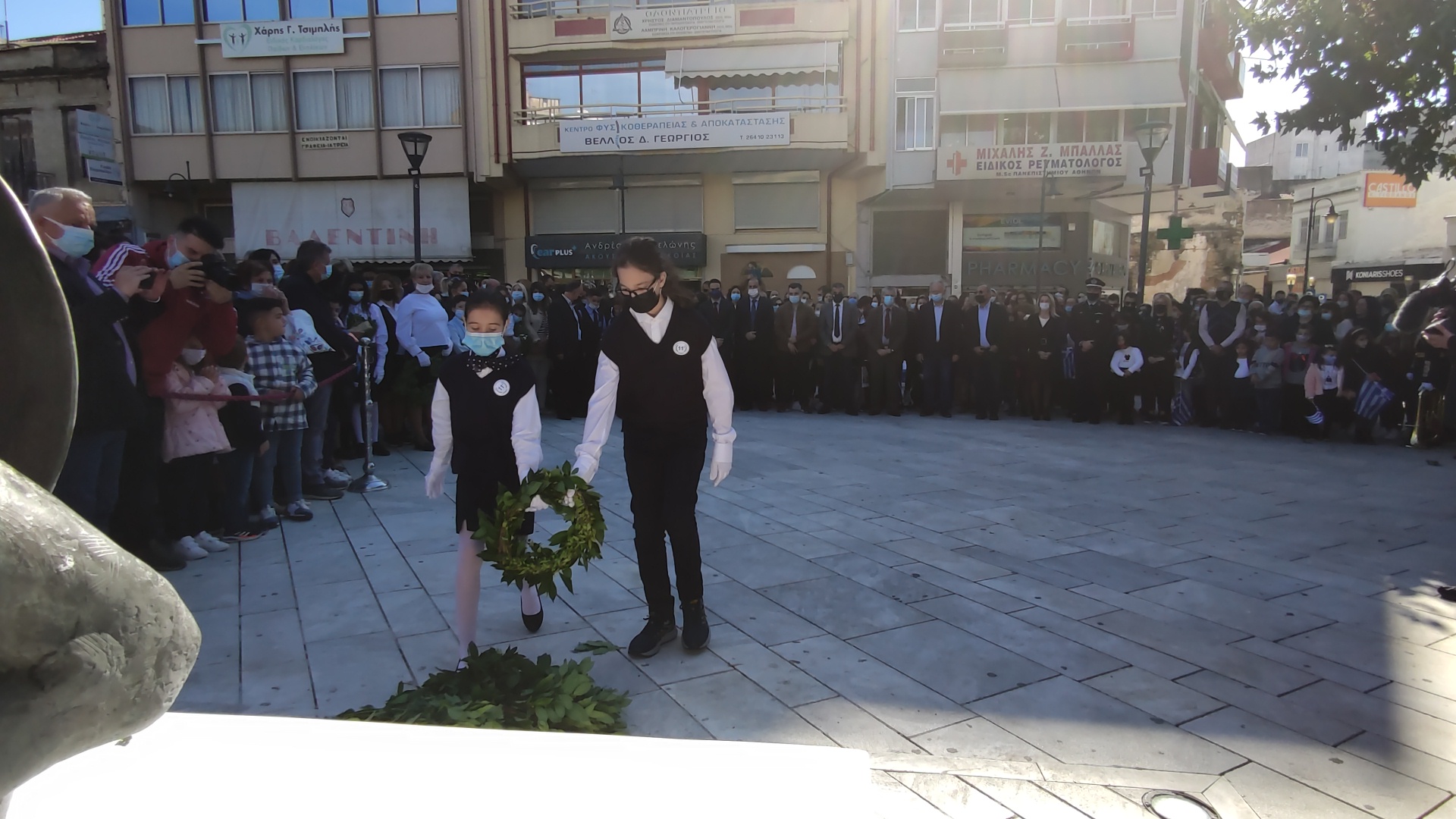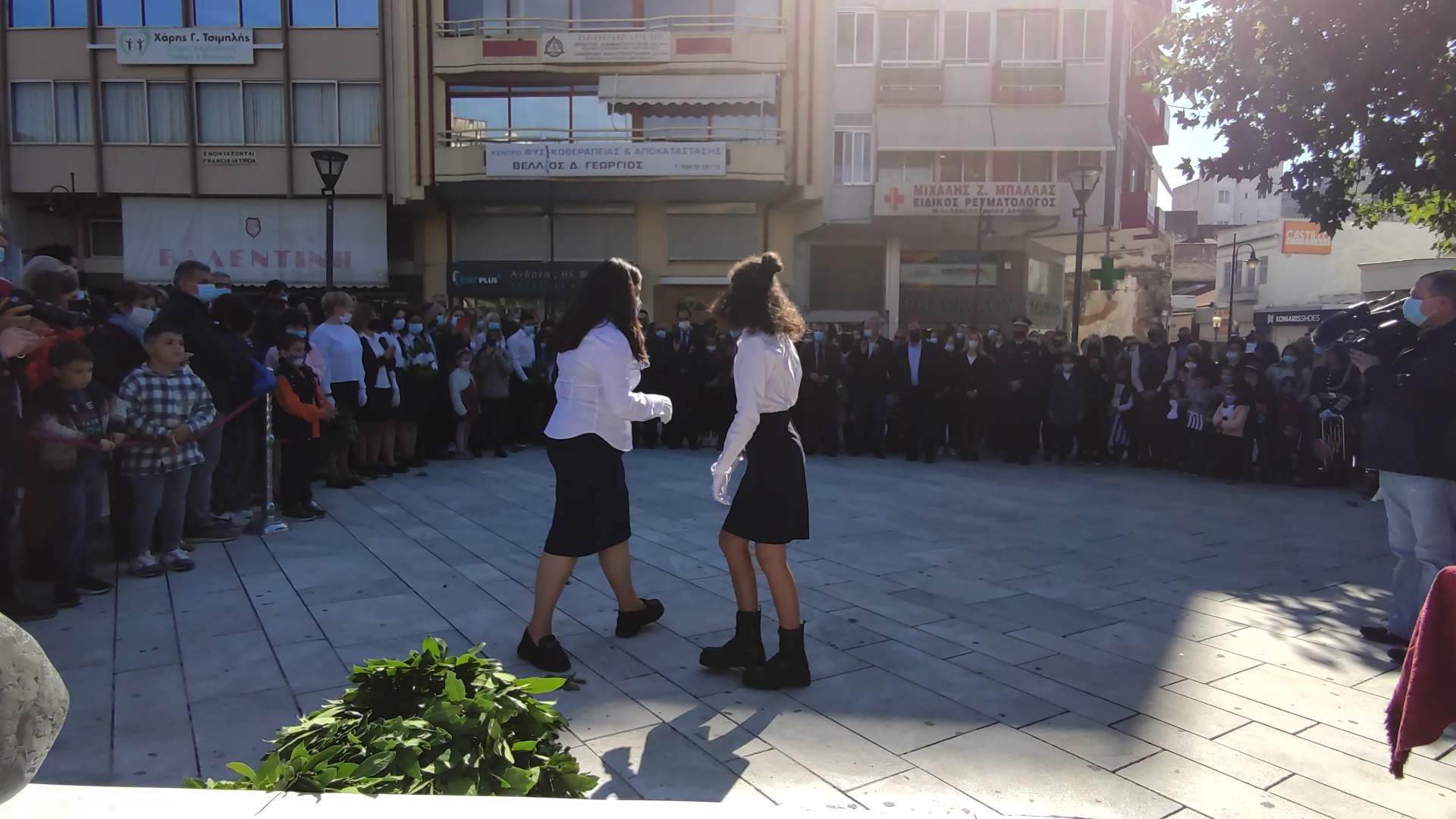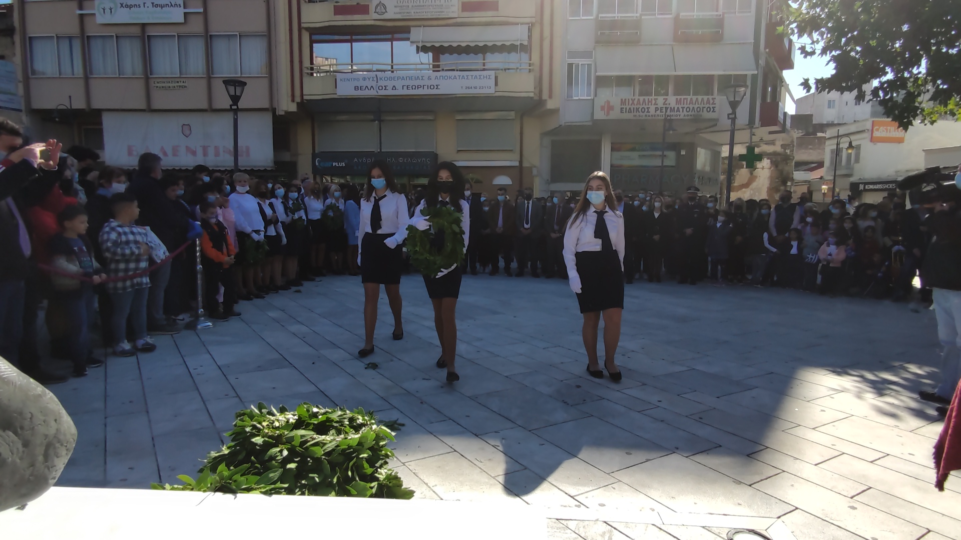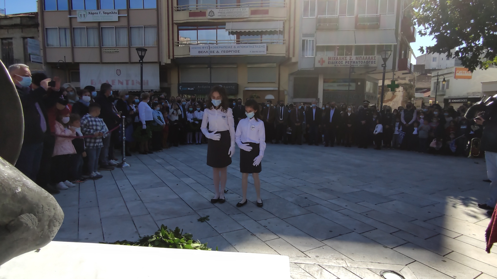 Στην πλατεία παραβρέθηκαν μαθητές από τα σχολεία της πόλης, εκπρόσωποι της Δημοτικής Αρχής, Σωμάτων Ασφαλείας, Φορέων και πολίτες που χειροκρότησαν τα παιδιά μικρά και μεγάλα.