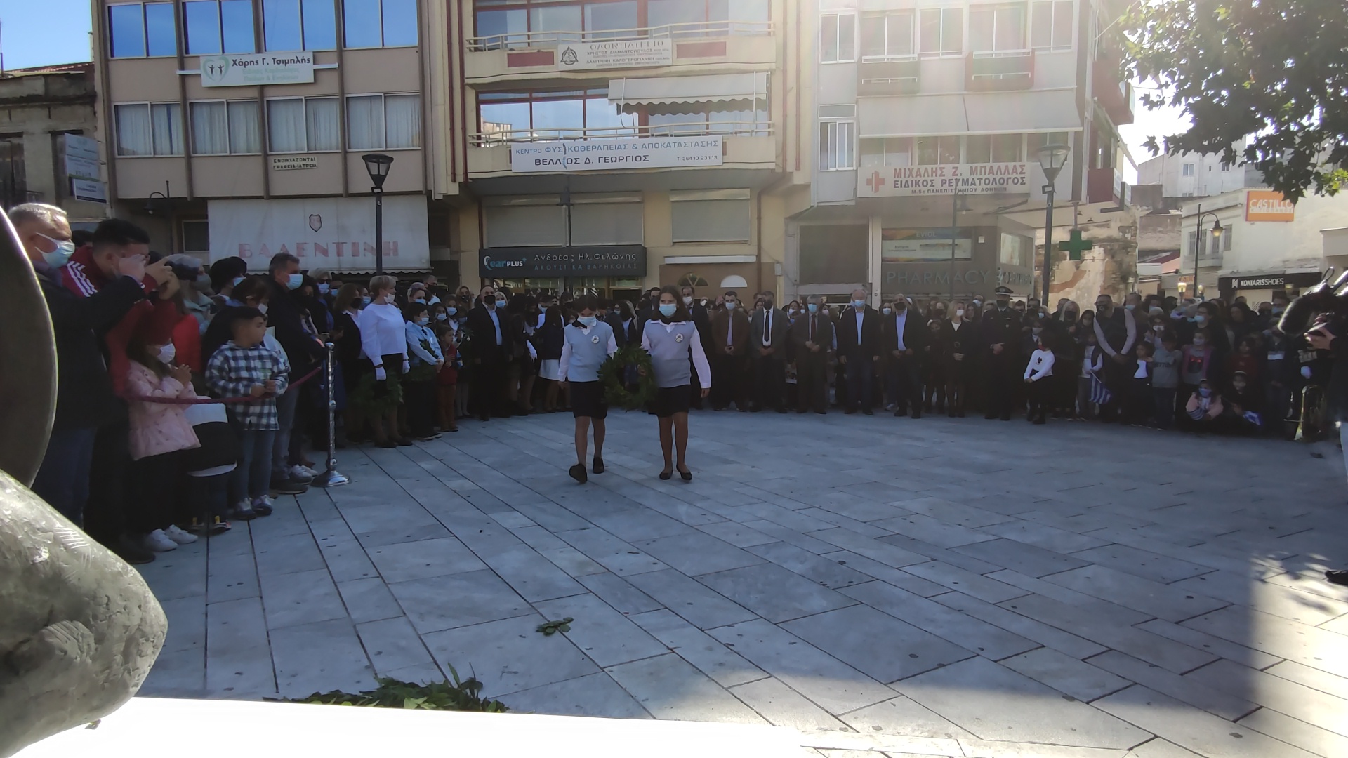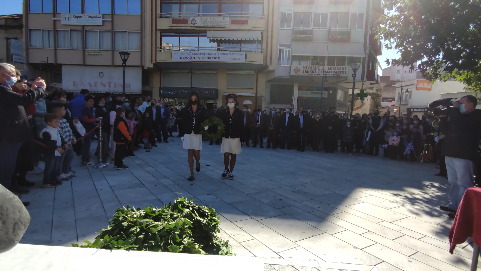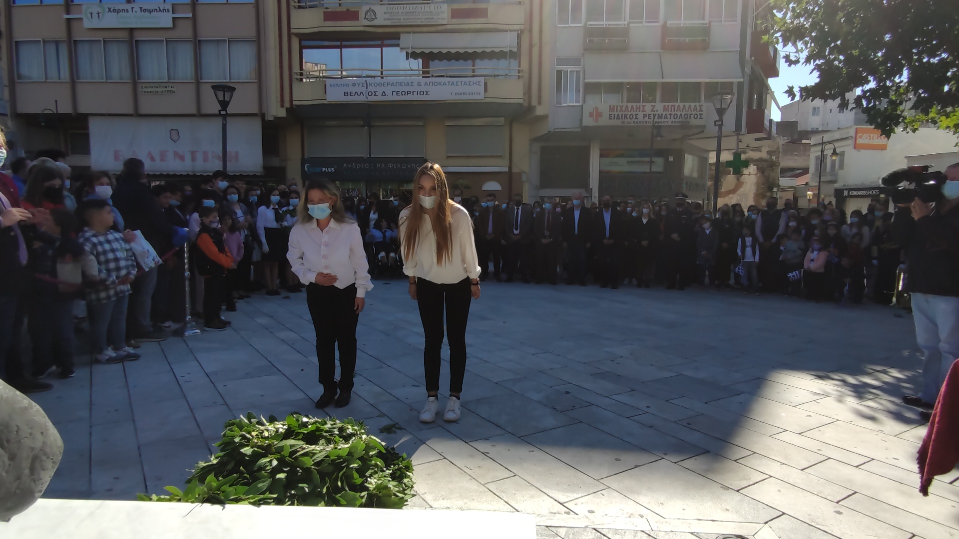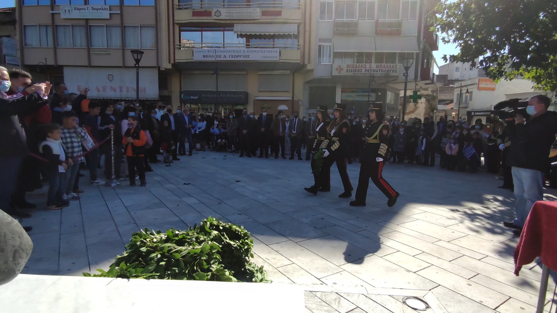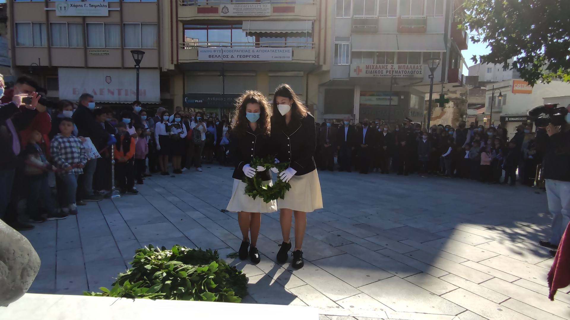 Στην πλατεία παραβρέθηκαν μαθητές από τα σχολεία της πόλης, εκπρόσωποι της Δημοτικής Αρχής, Σωμάτων Ασφαλείας, Φορέων και πολίτες που χειροκρότησαν τα παιδιά μικρά και μεγάλα.