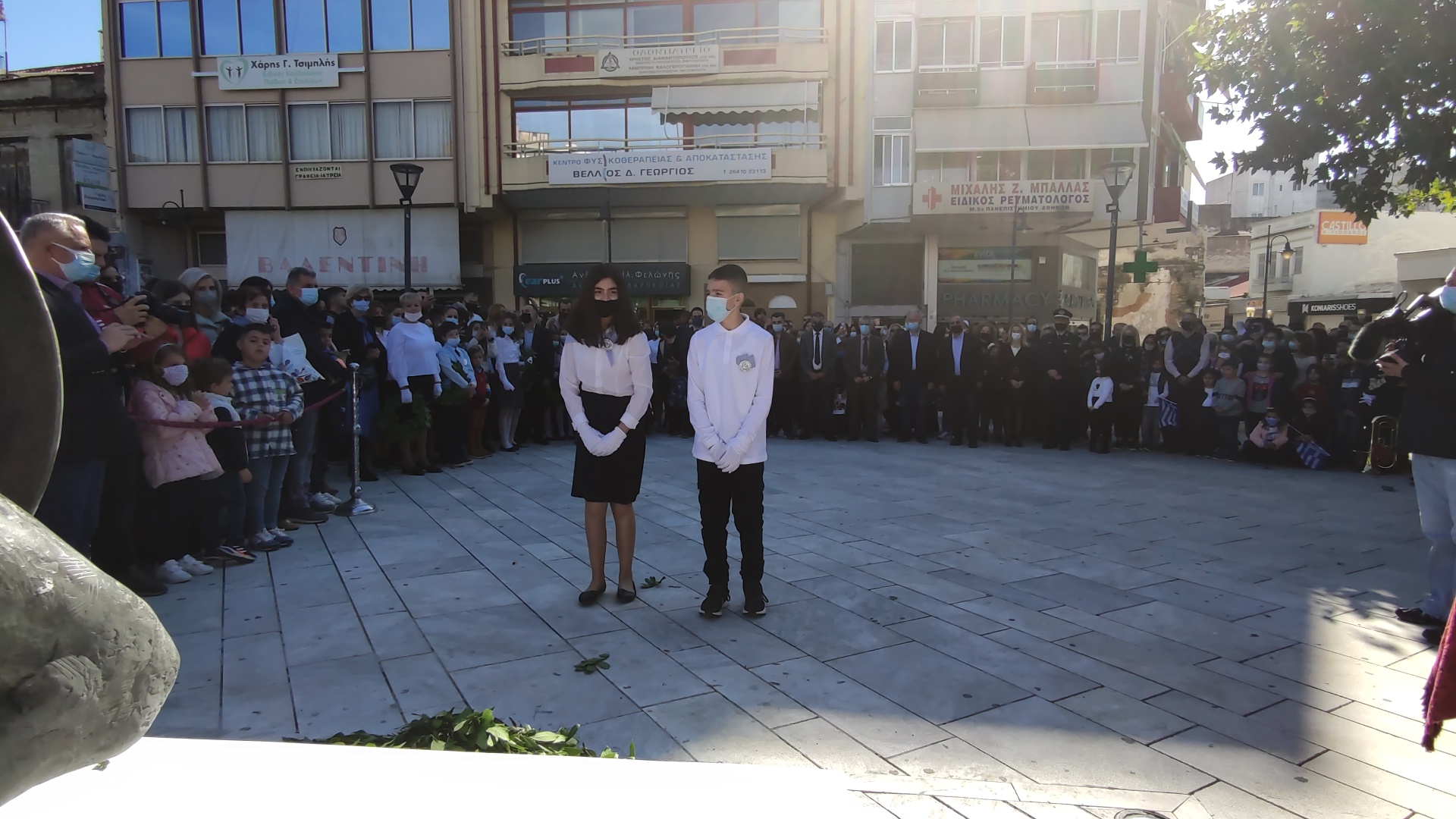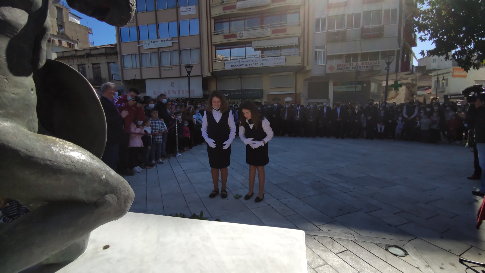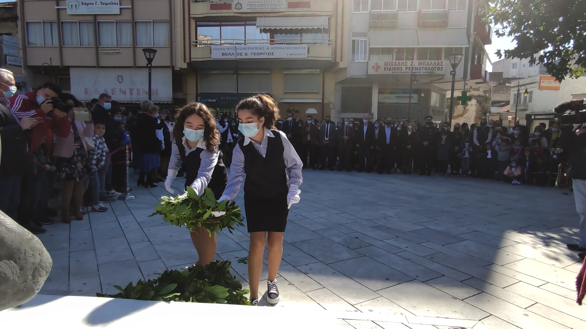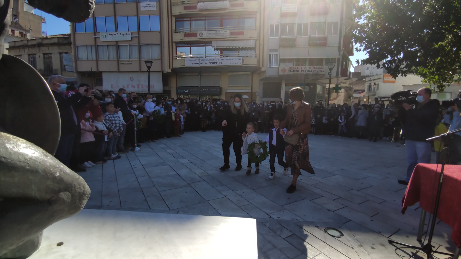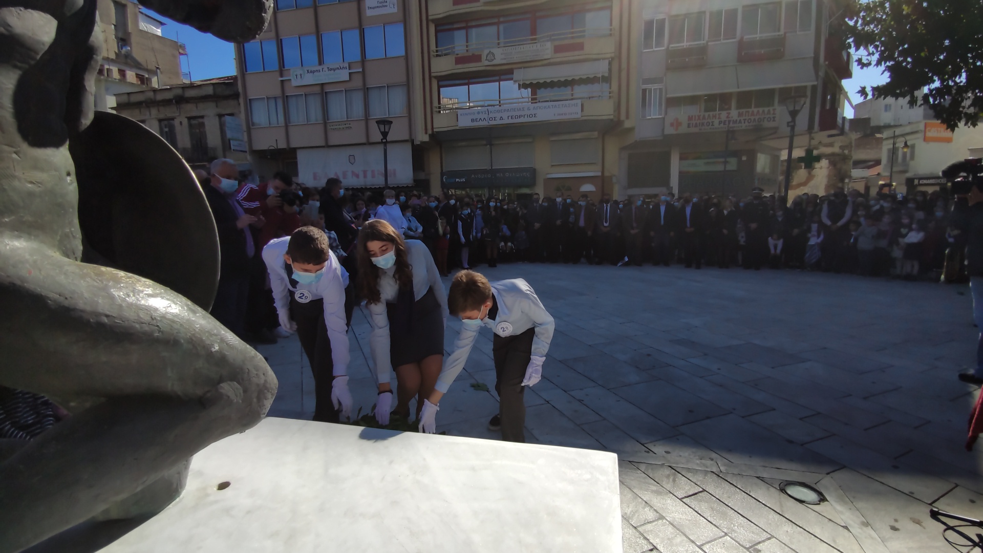 Στην πλατεία παραβρέθηκαν μαθητές από τα σχολεία της πόλης, εκπρόσωποι της Δημοτικής Αρχής, Σωμάτων Ασφαλείας, Φορέων και πολίτες που χειροκρότησαν τα παιδιά μικρά και μεγάλα.