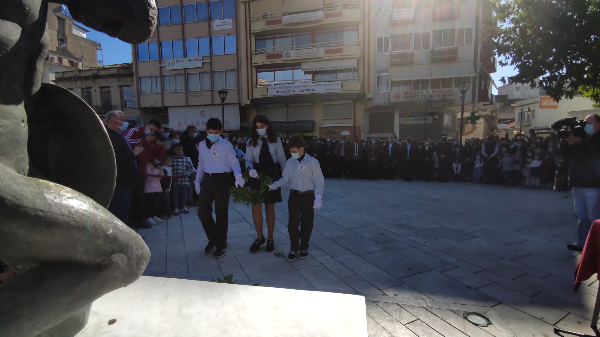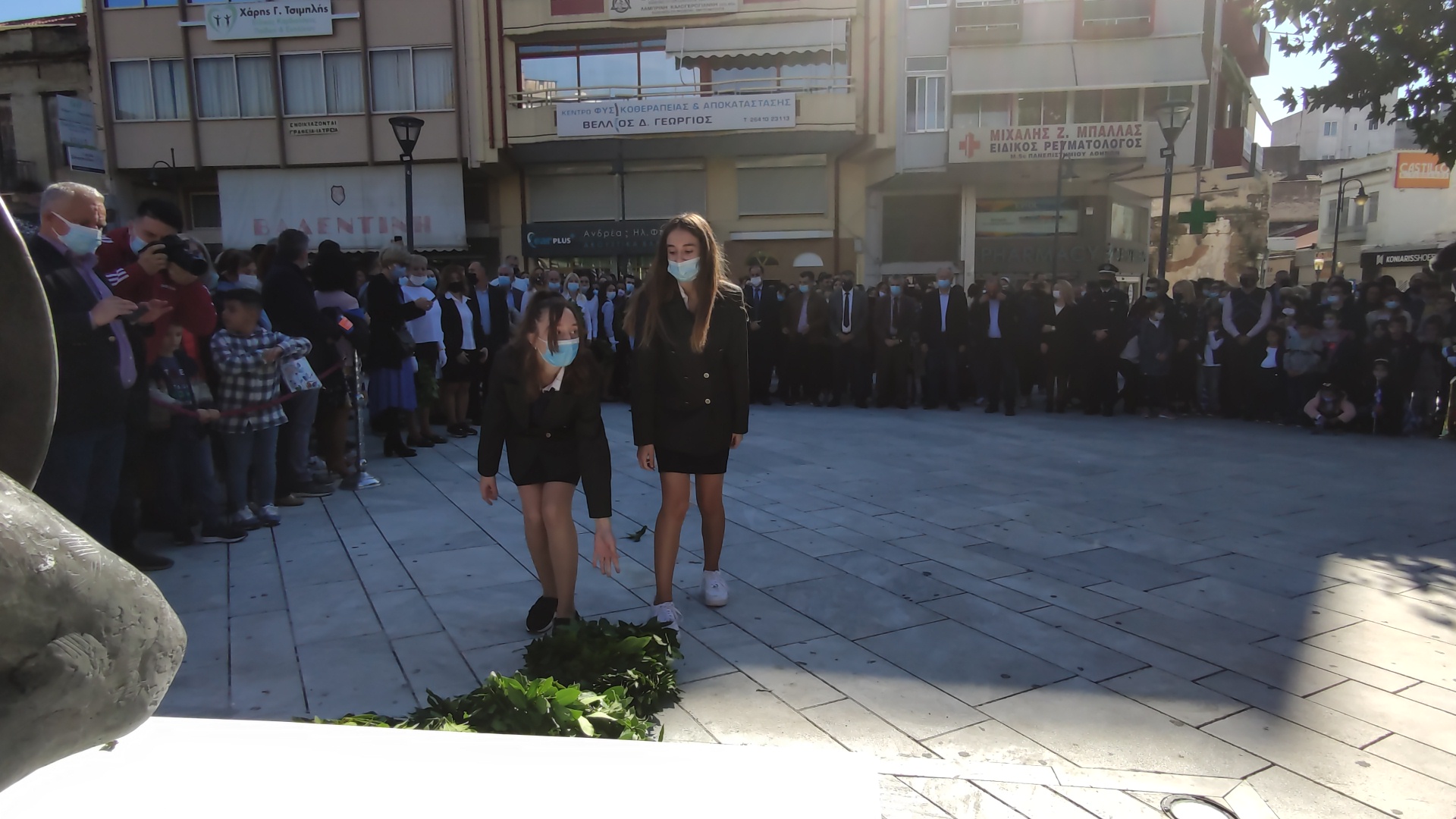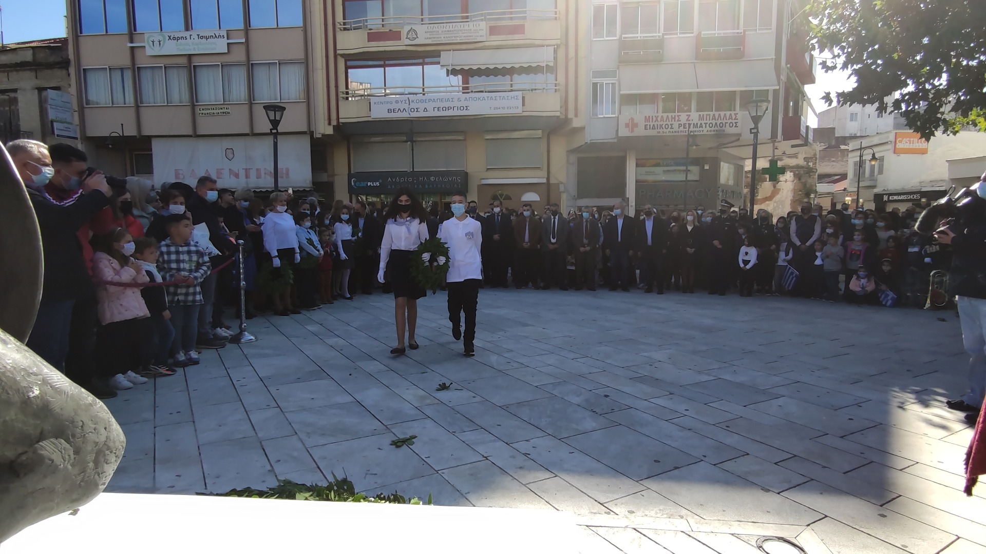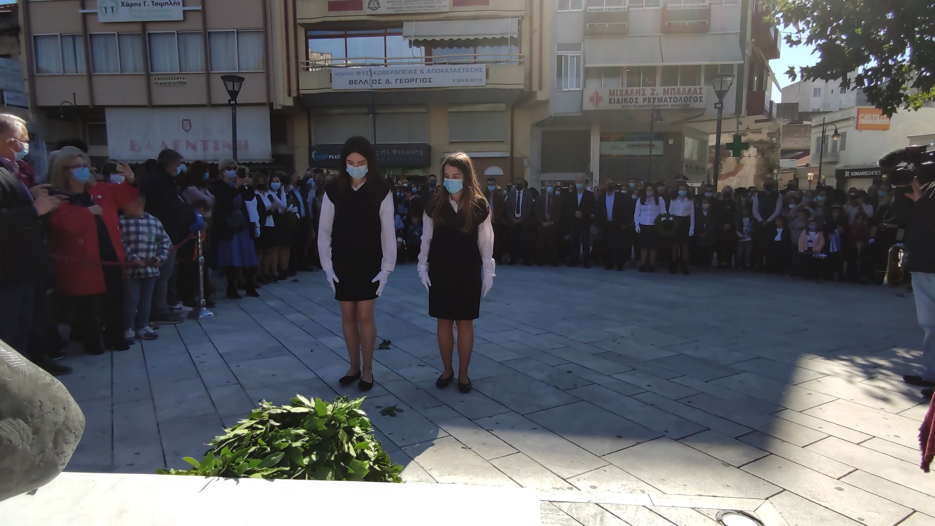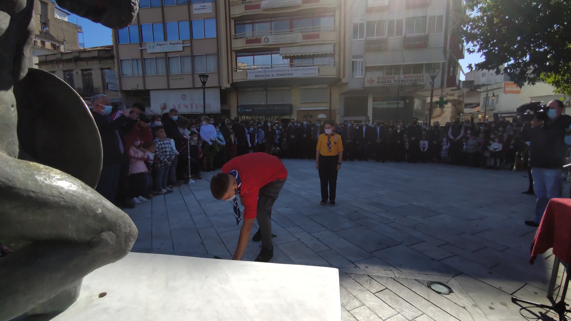 Στην πλατεία παραβρέθηκαν μαθητές από τα σχολεία της πόλης, εκπρόσωποι της Δημοτικής Αρχής, Σωμάτων Ασφαλείας, Φορέων και πολίτες που χειροκρότησαν τα παιδιά μικρά και μεγάλα.