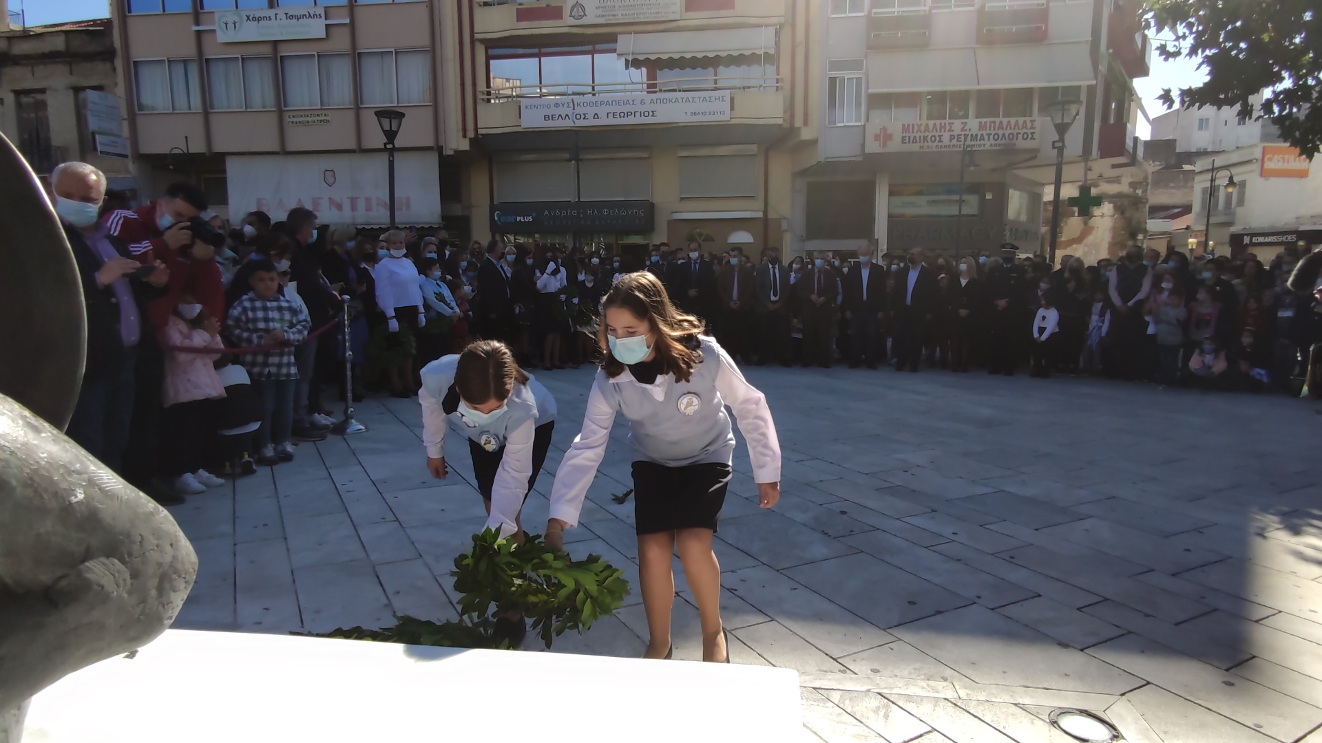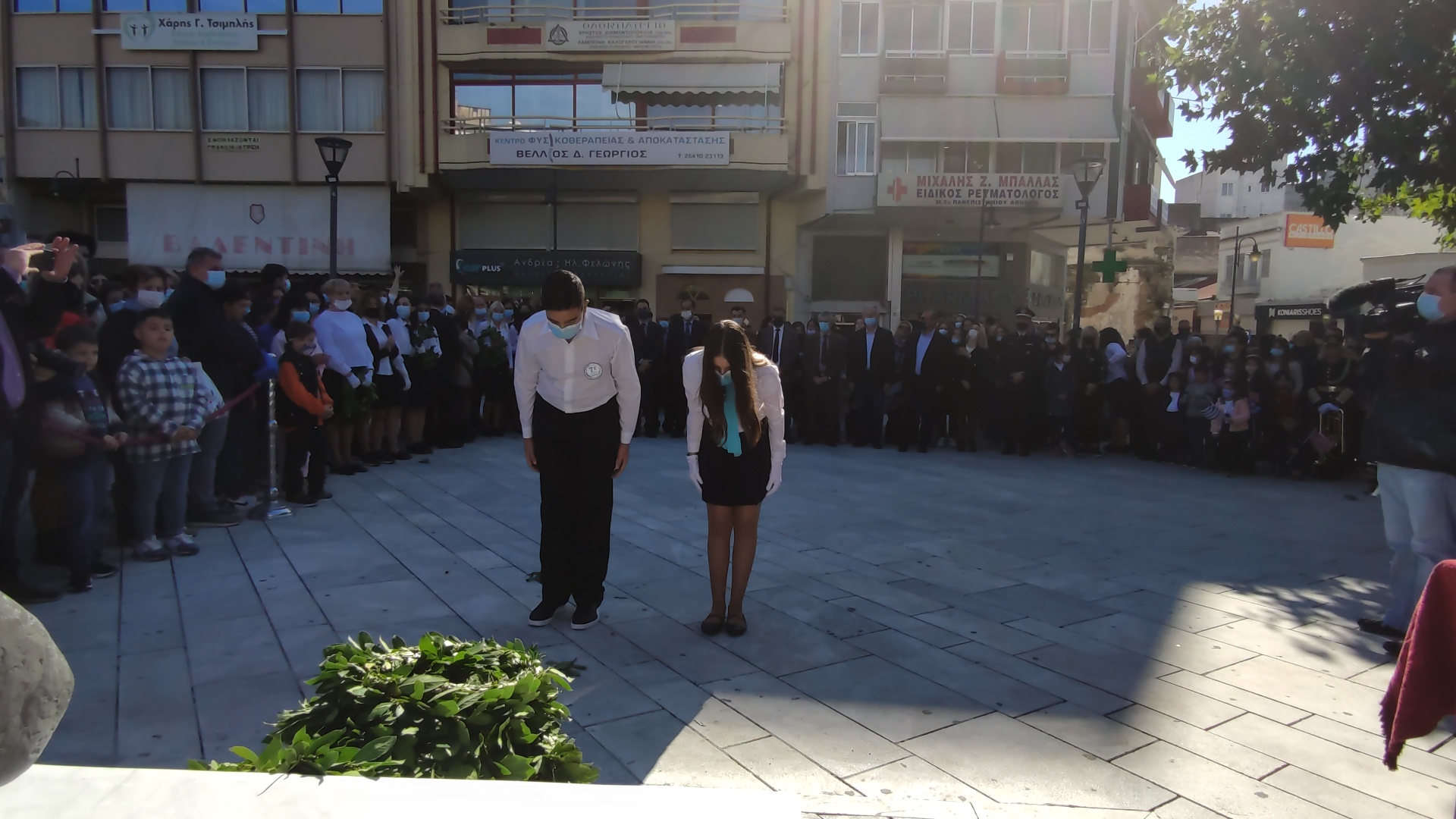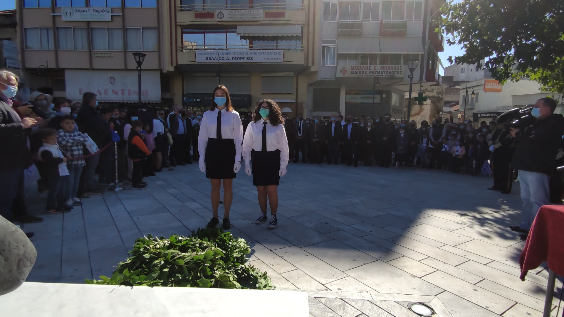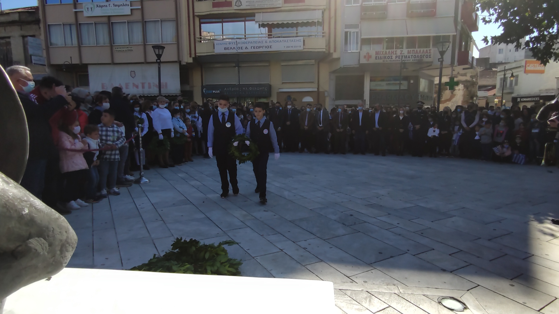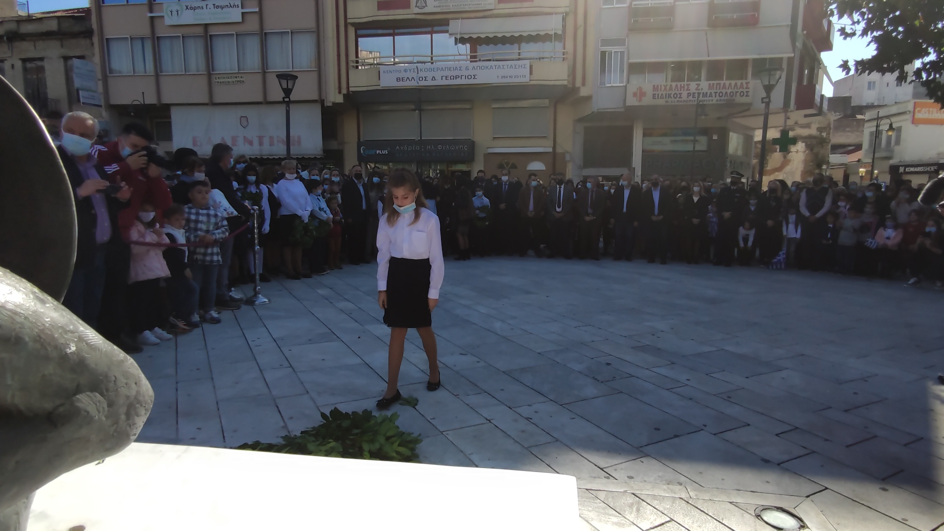 Στην πλατεία παραβρέθηκαν μαθητές από τα σχολεία της πόλης, εκπρόσωποι της Δημοτικής Αρχής, Σωμάτων Ασφαλείας, Φορέων και πολίτες που χειροκρότησαν τα παιδιά μικρά και μεγάλα.