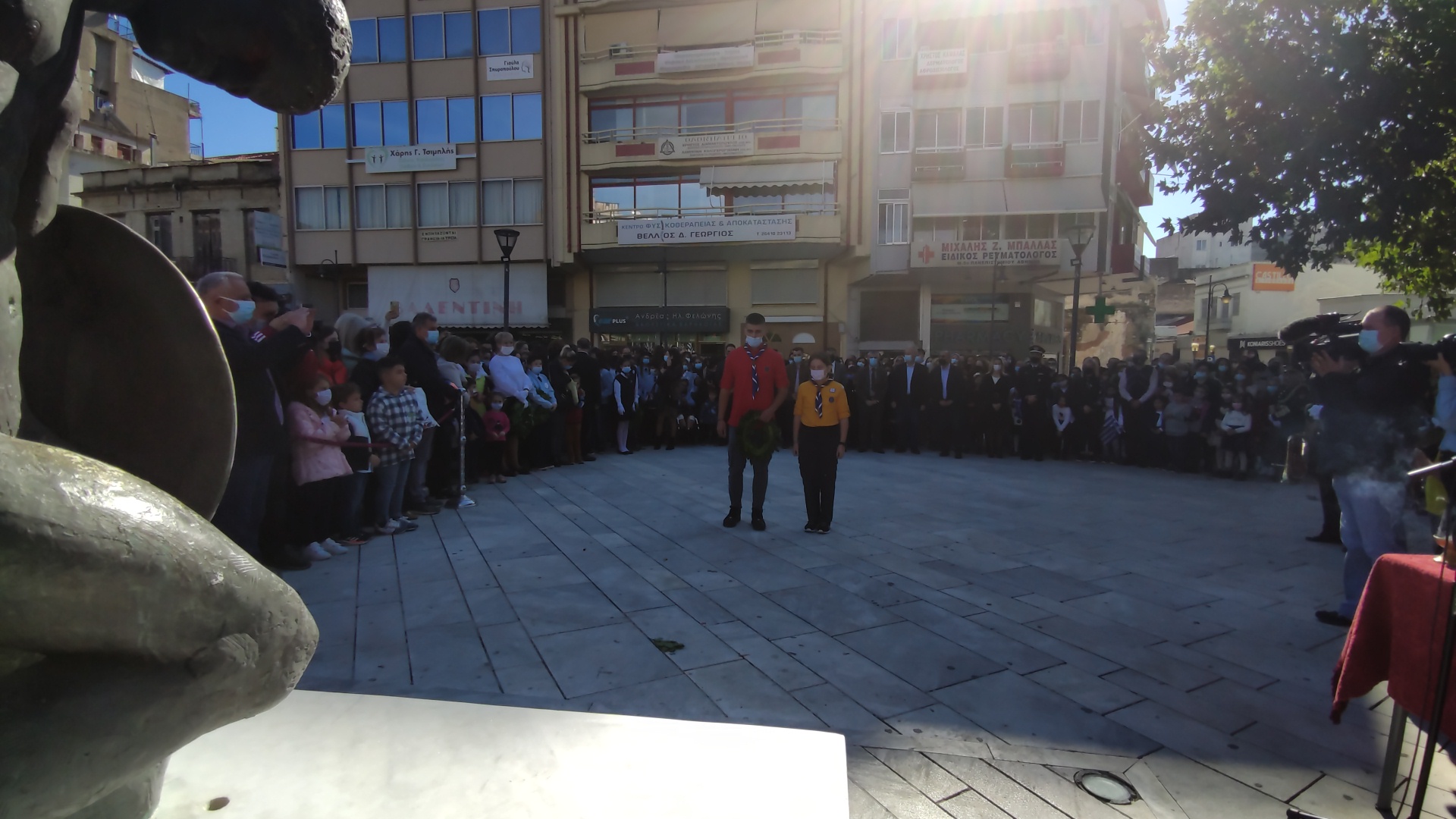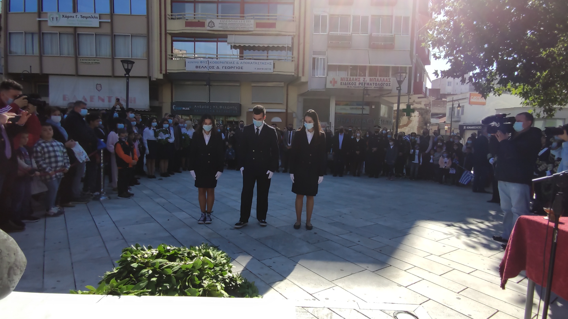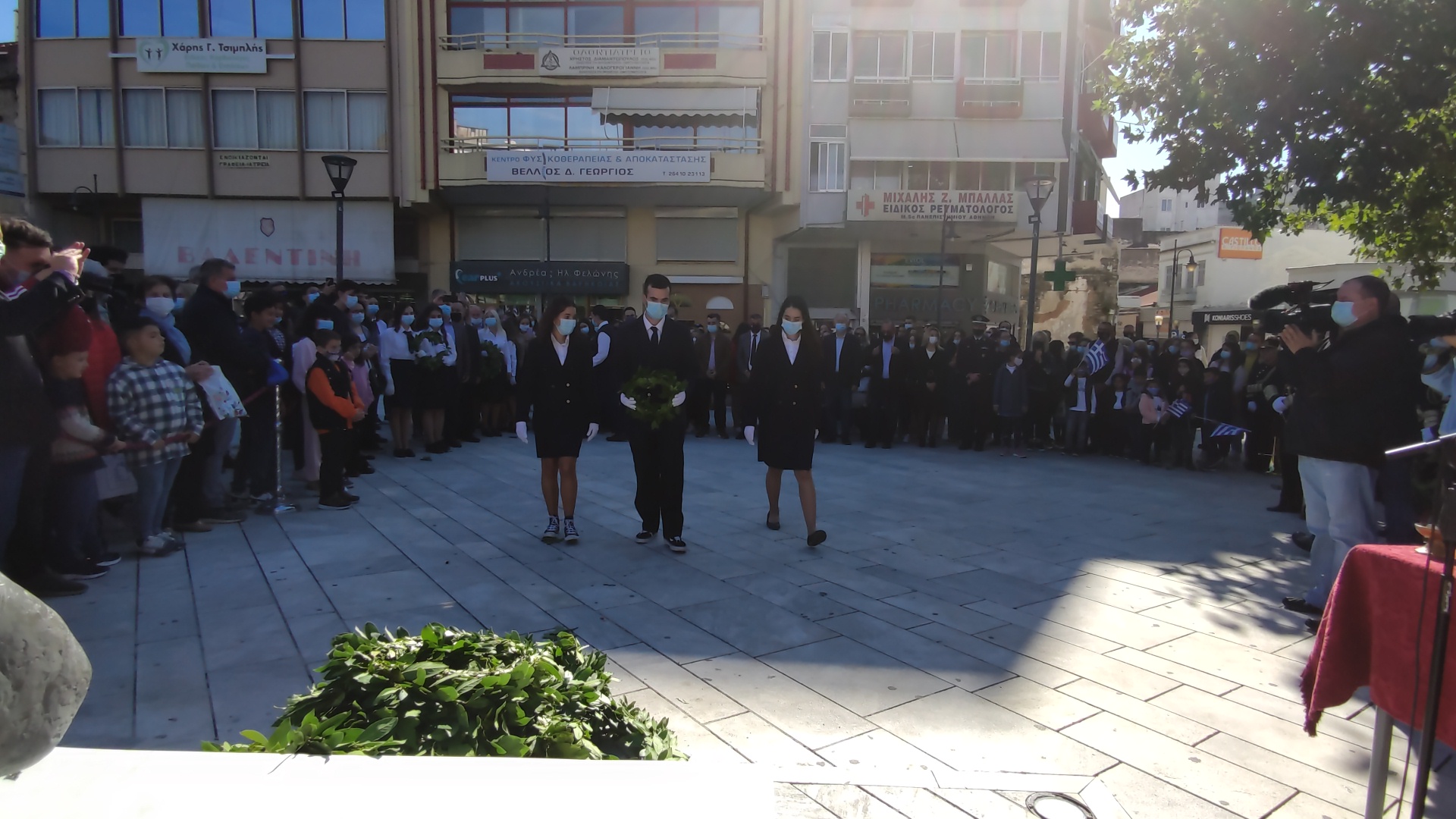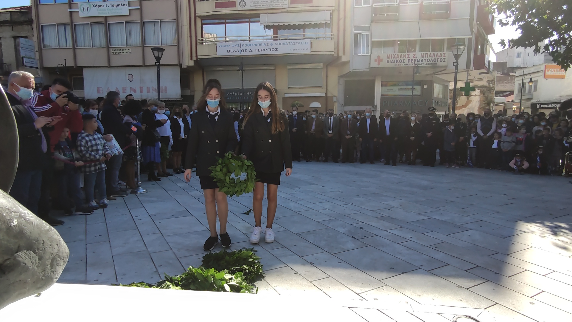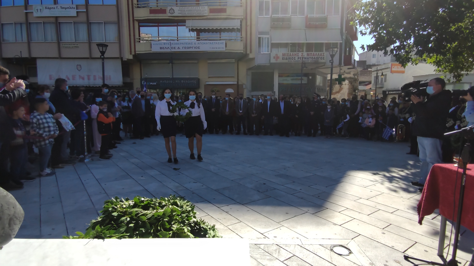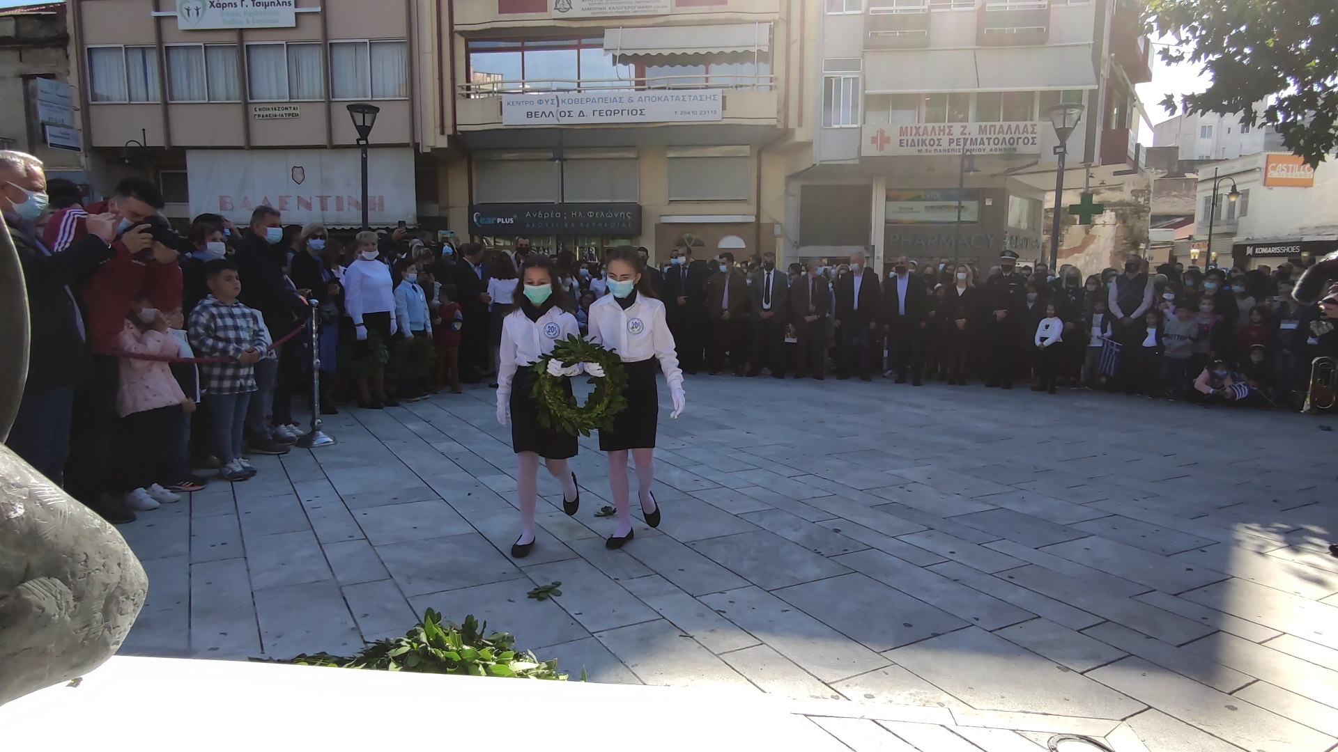 Στην πλατεία παραβρέθηκαν μαθητές από τα σχολεία της πόλης, εκπρόσωποι της Δημοτικής Αρχής, Σωμάτων Ασφαλείας, Φορέων και πολίτες που χειροκρότησαν τα παιδιά μικρά και μεγάλα.