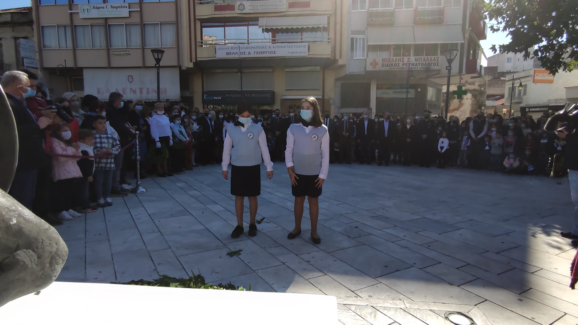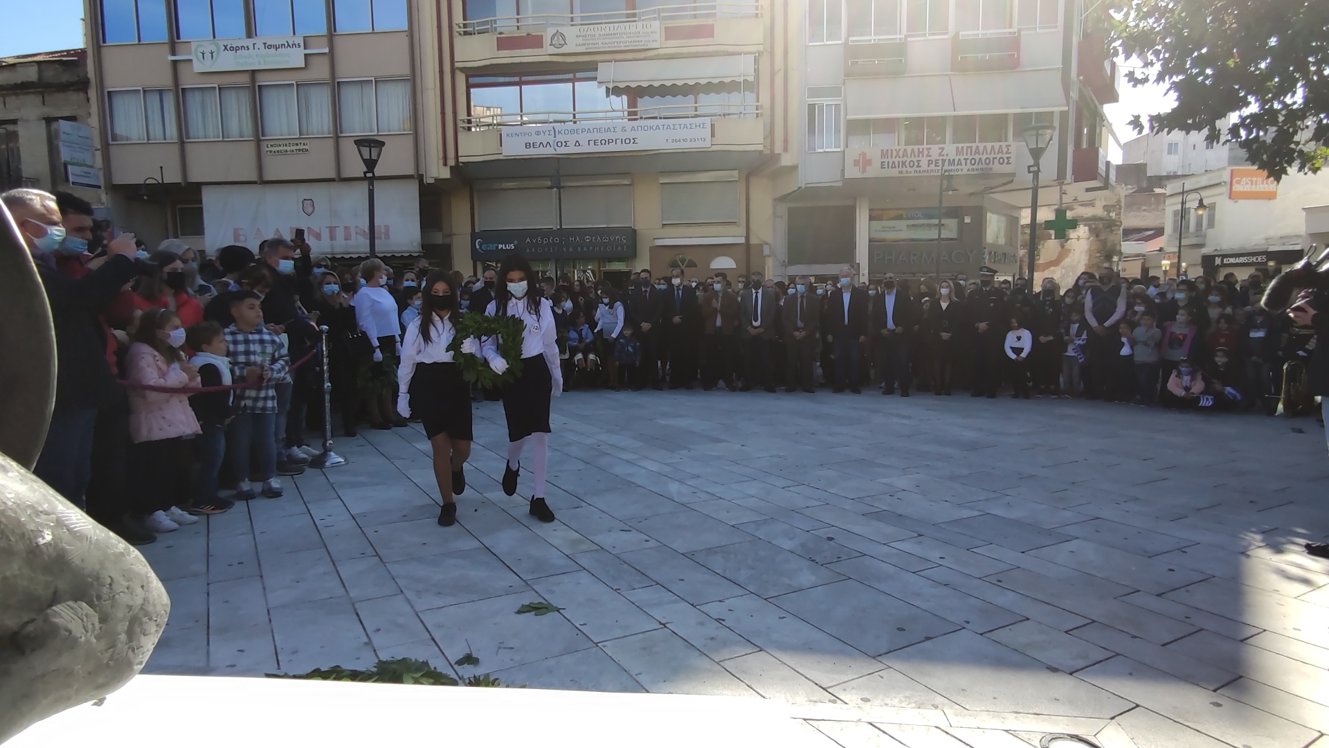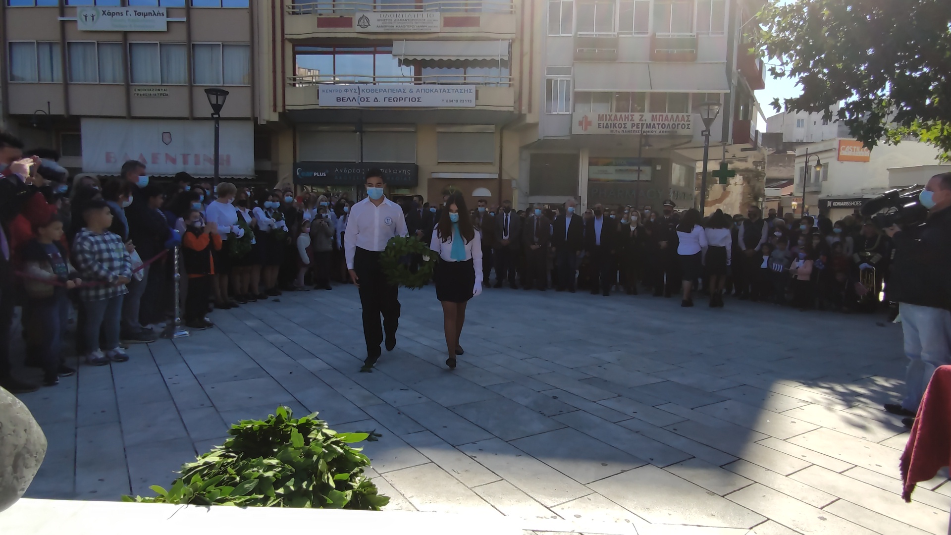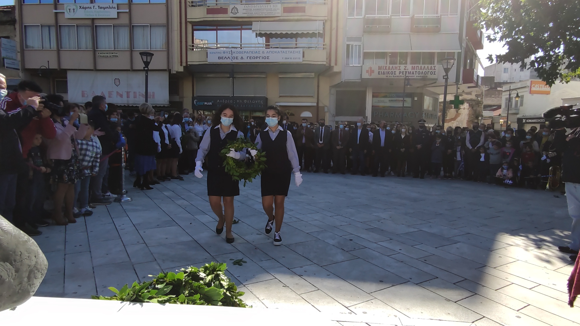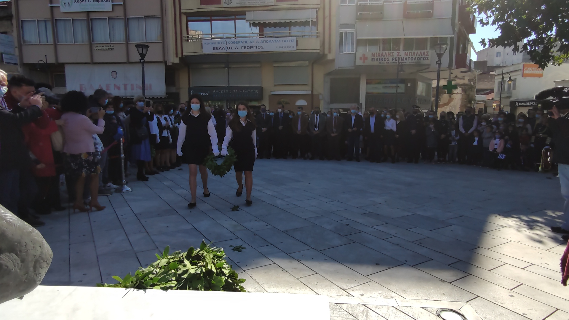 Στην πλατεία παραβρέθηκαν μαθητές από τα σχολεία της πόλης, εκπρόσωποι της Δημοτικής Αρχής, Σωμάτων Ασφαλείας, Φορέων και πολίτες που χειροκρότησαν τα παιδιά μικρά και μεγάλα.