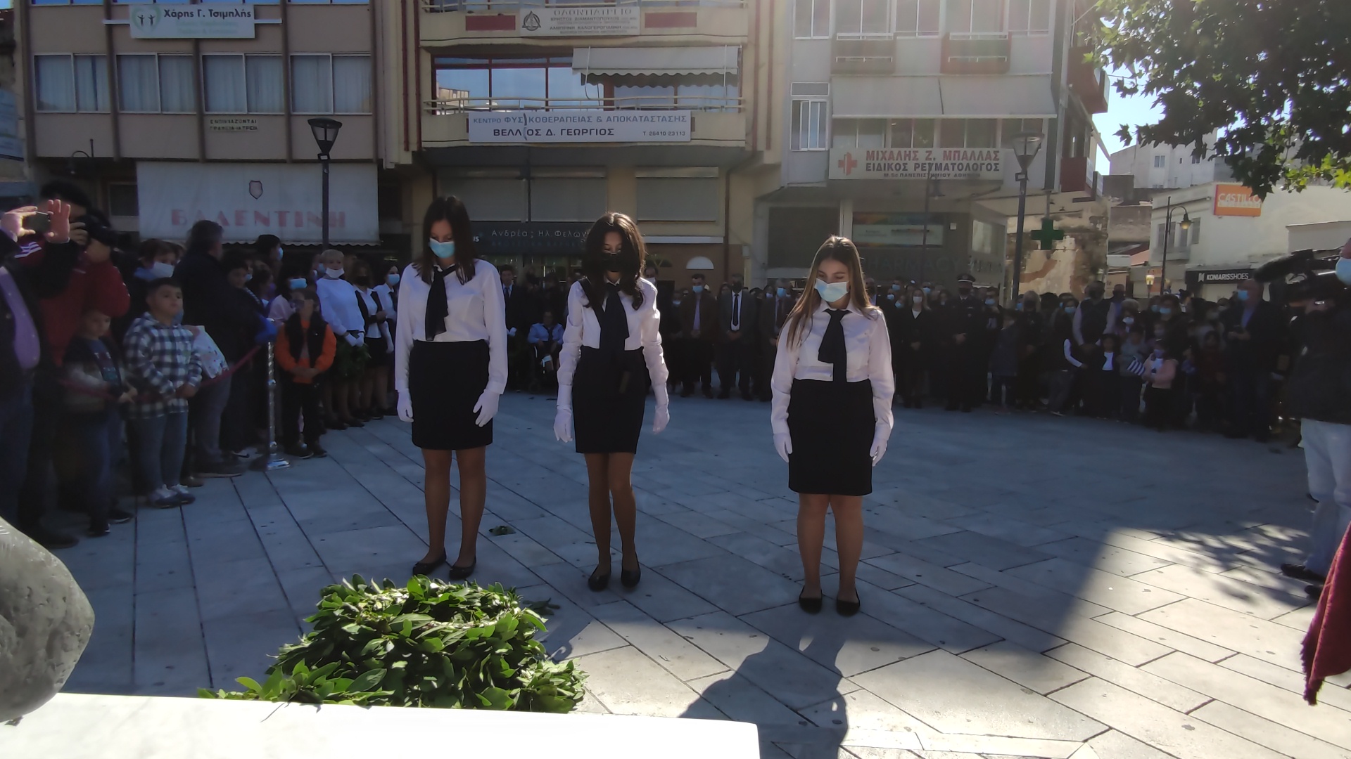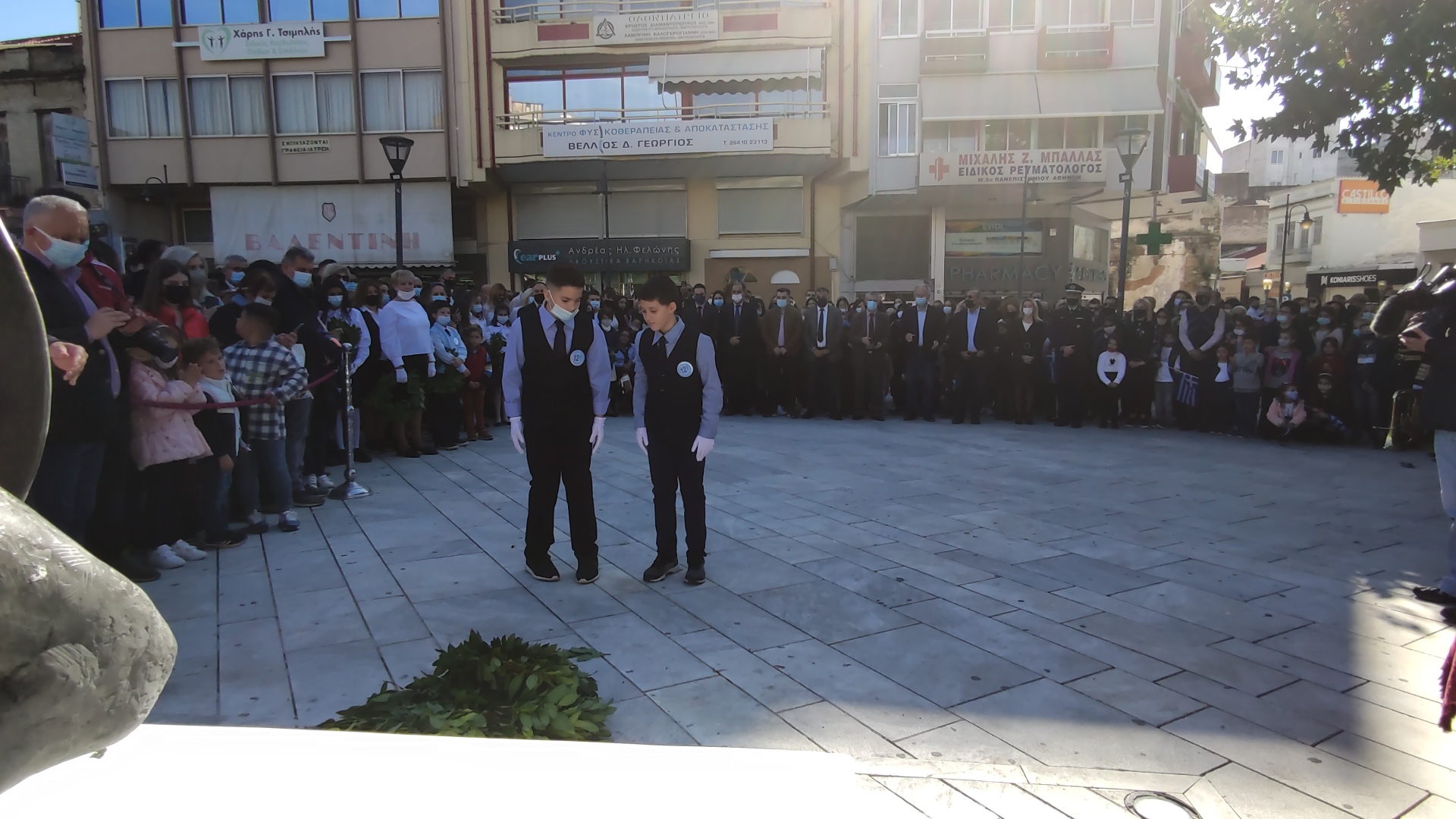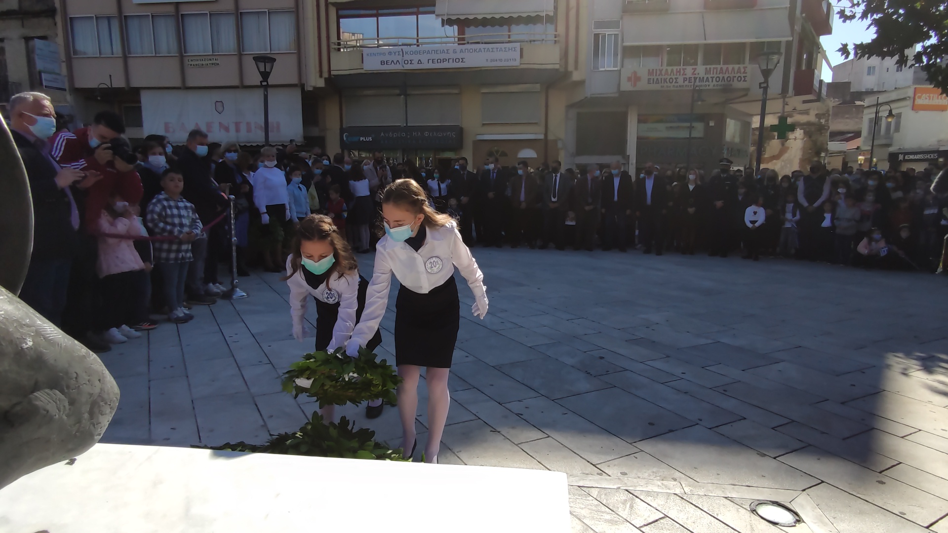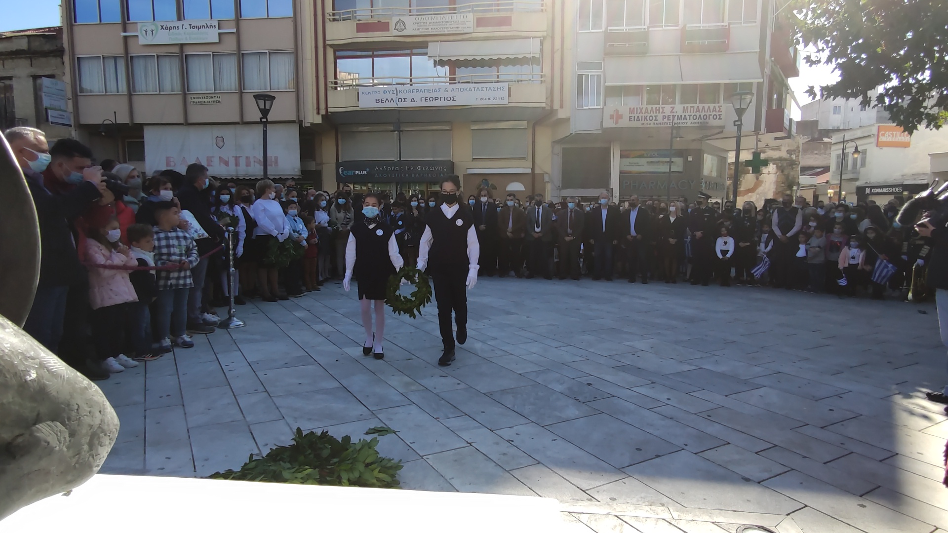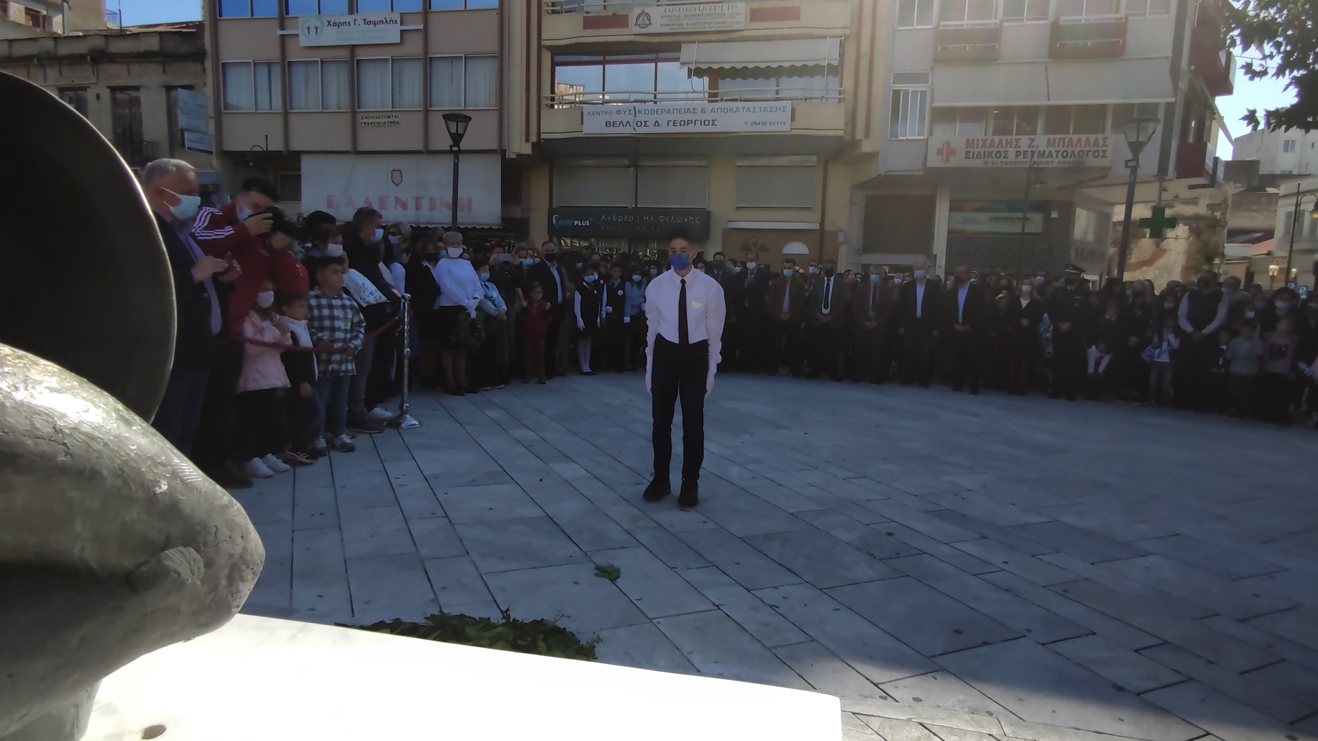 Στην πλατεία παραβρέθηκαν μαθητές από τα σχολεία της πόλης, εκπρόσωποι της Δημοτικής Αρχής, Σωμάτων Ασφαλείας, Φορέων και πολίτες που χειροκρότησαν τα παιδιά μικρά και μεγάλα.