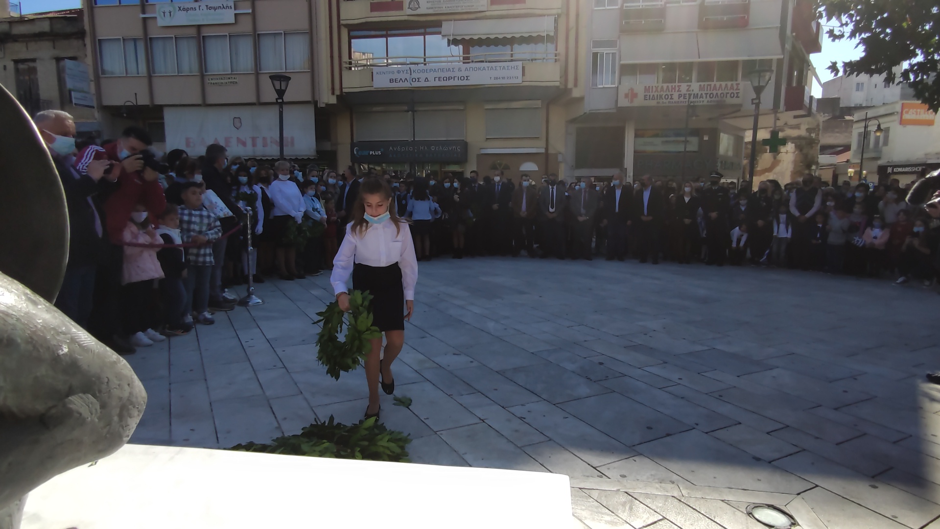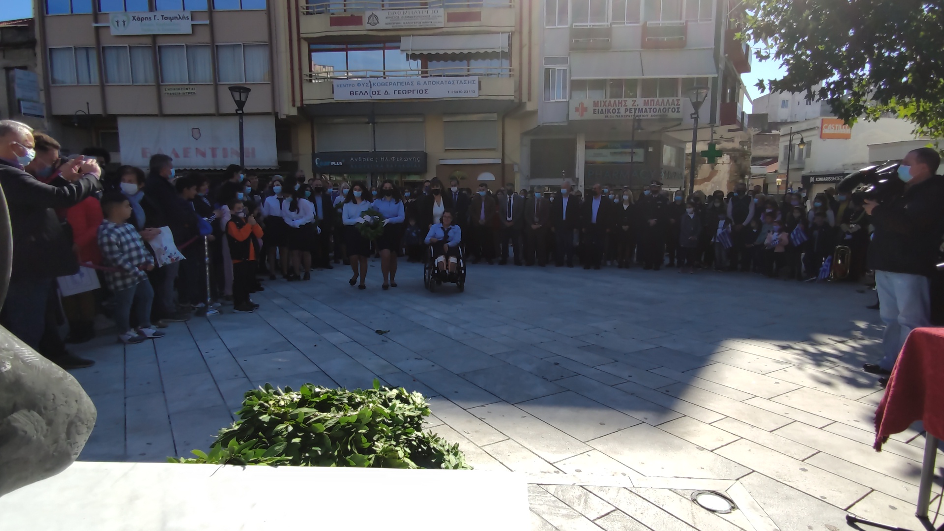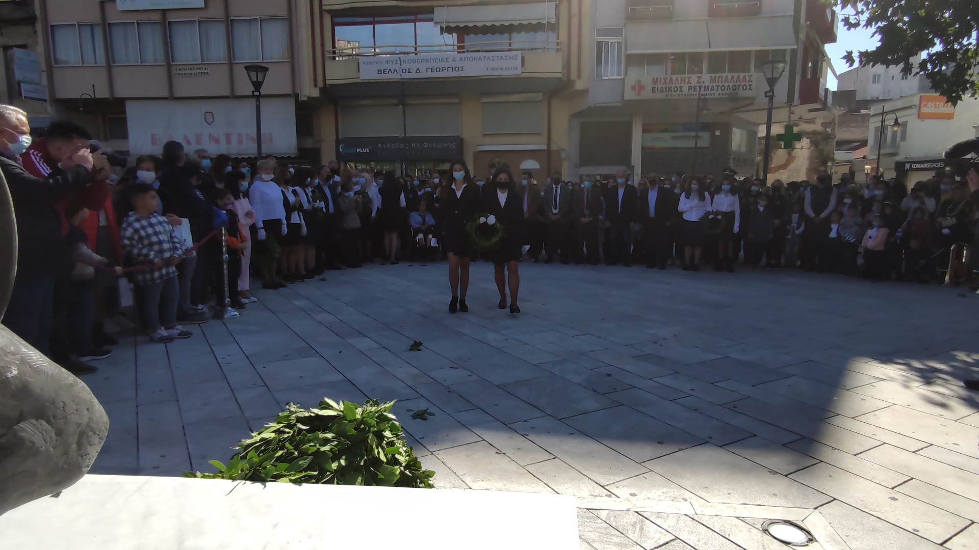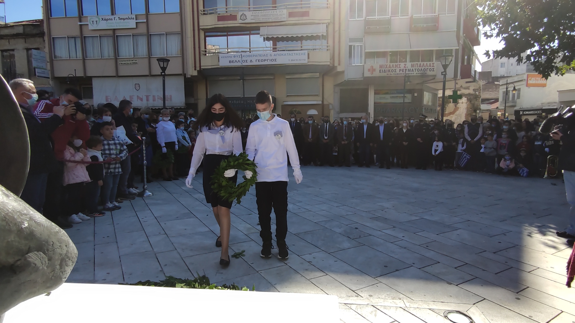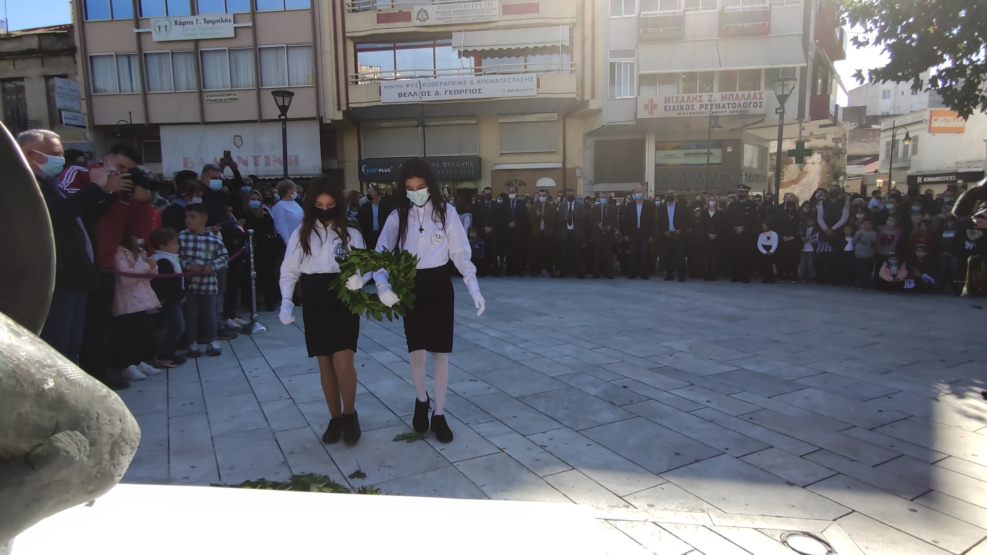 Στην πλατεία παραβρέθηκαν μαθητές από τα σχολεία της πόλης, εκπρόσωποι της Δημοτικής Αρχής, Σωμάτων Ασφαλείας, Φορέων και πολίτες που χειροκρότησαν τα παιδιά μικρά και μεγάλα.