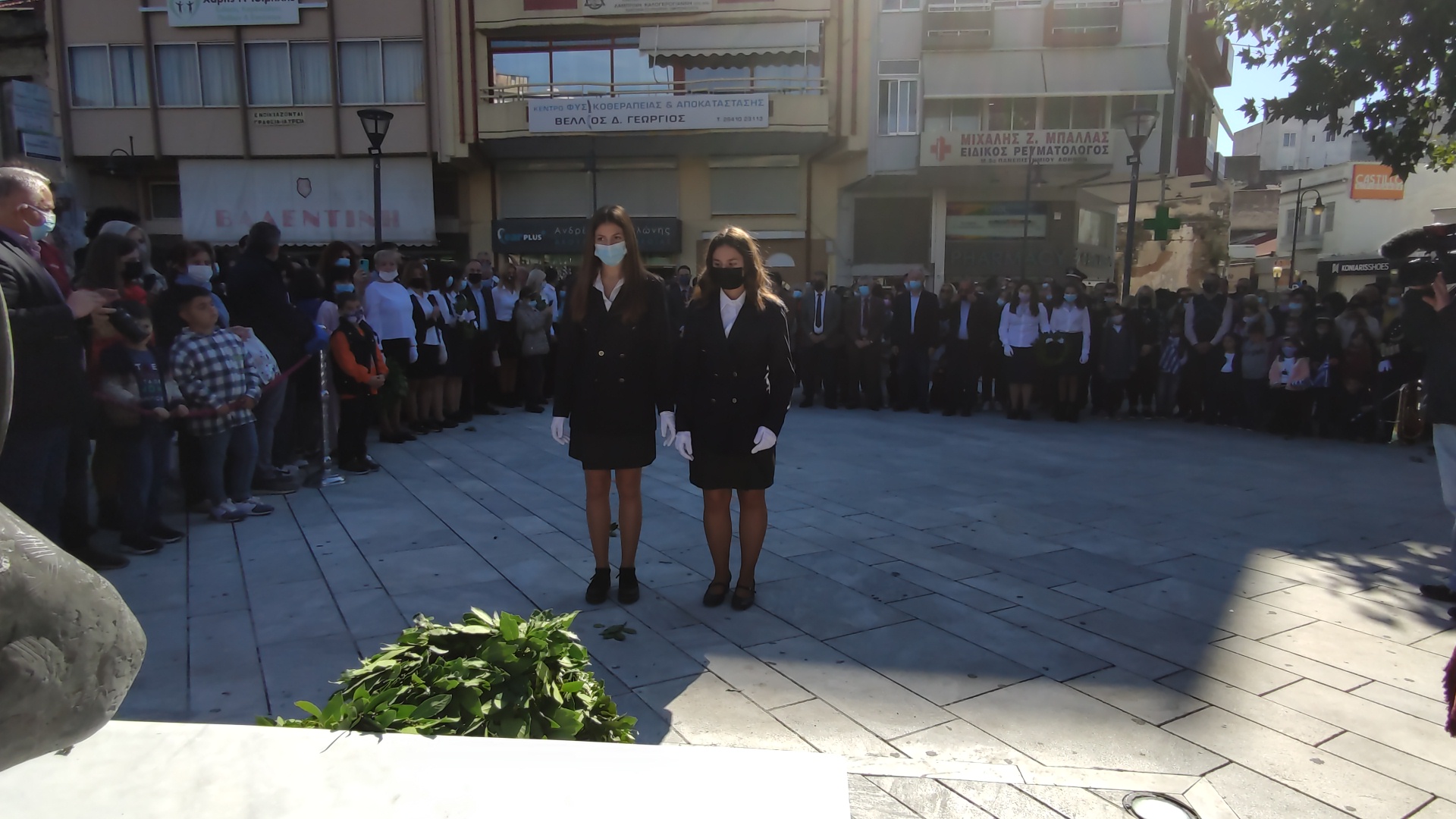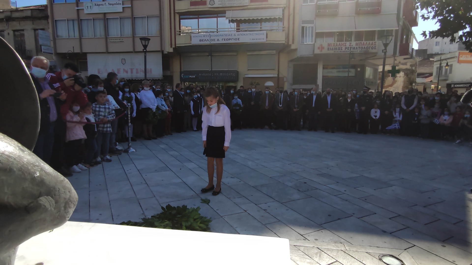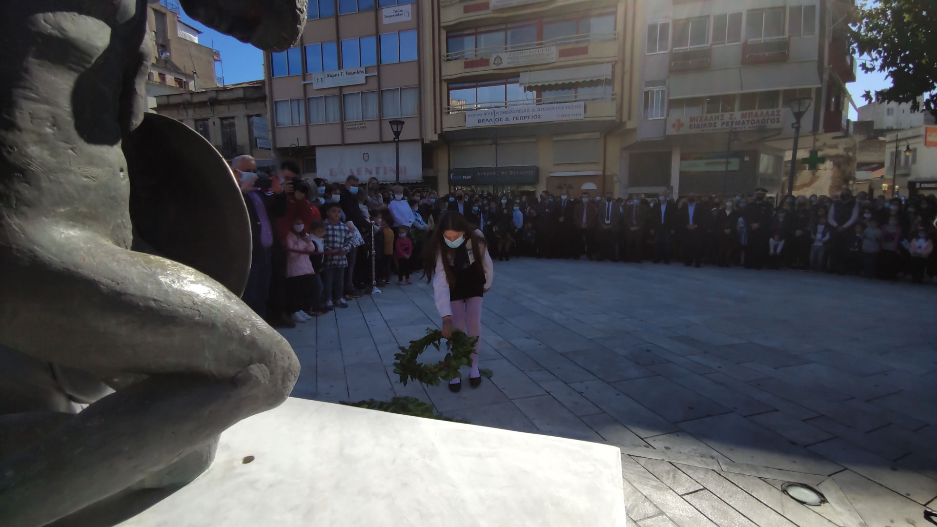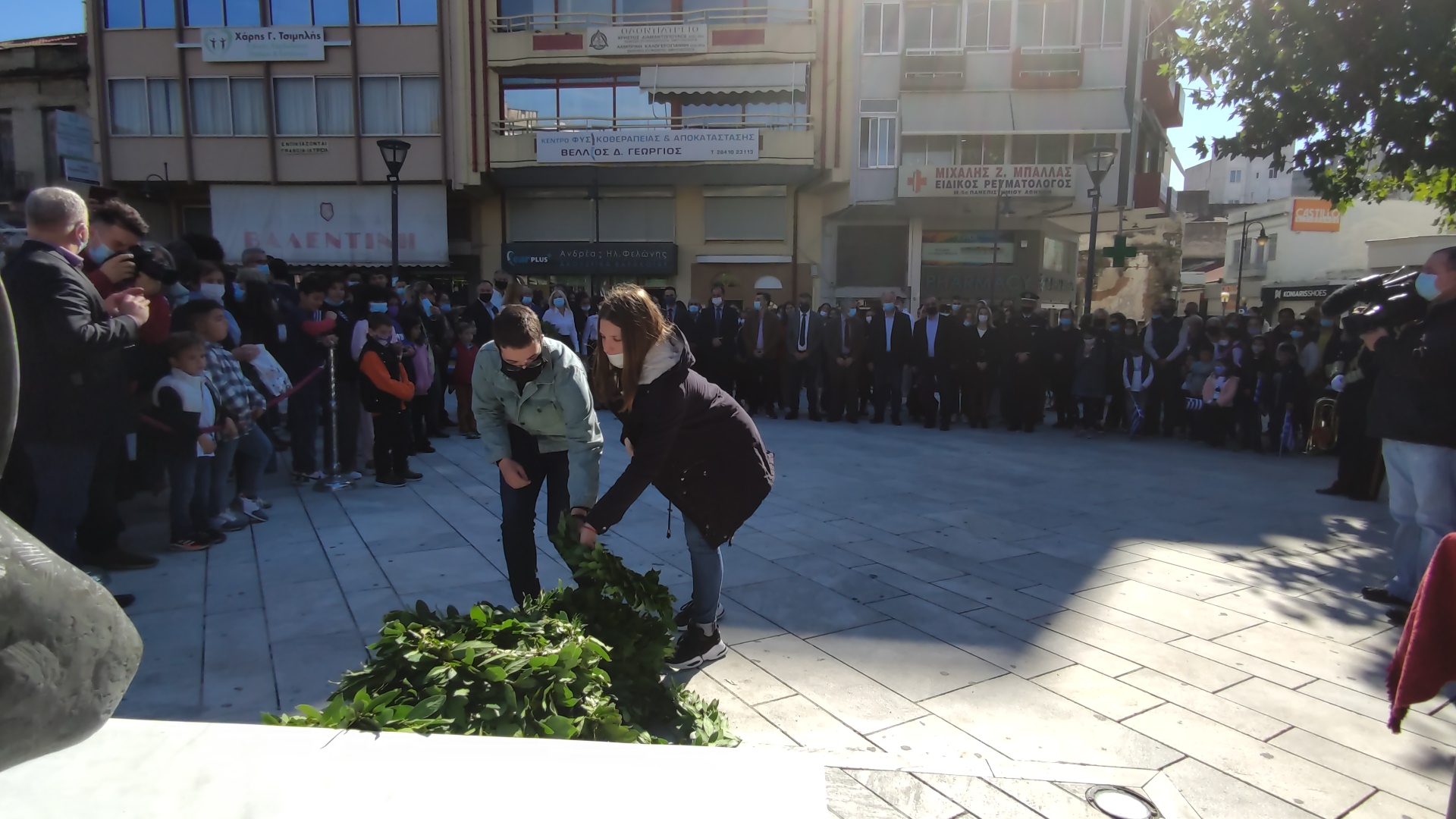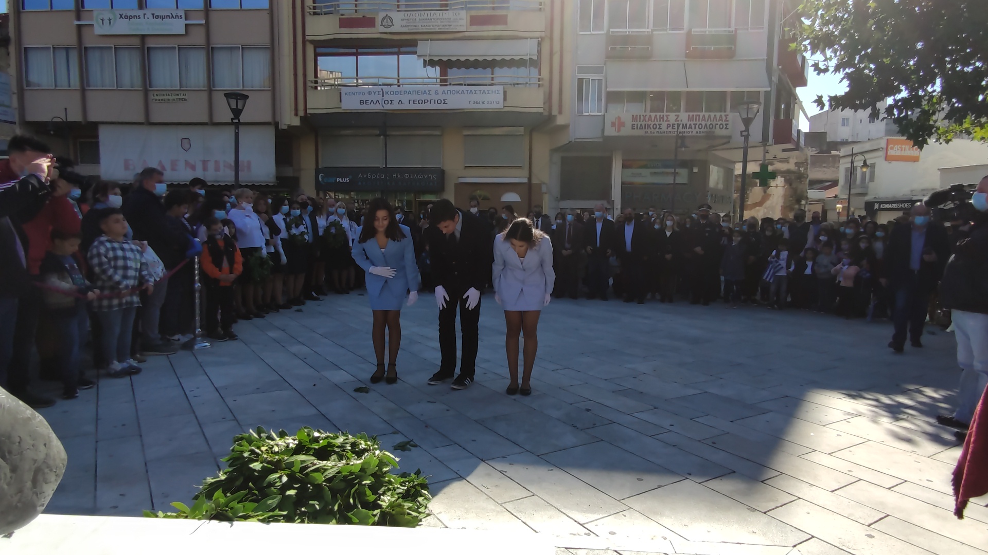 Στην πλατεία παραβρέθηκαν μαθητές από τα σχολεία της πόλης, εκπρόσωποι της Δημοτικής Αρχής, Σωμάτων Ασφαλείας, Φορέων και πολίτες που χειροκρότησαν τα παιδιά μικρά και μεγάλα.