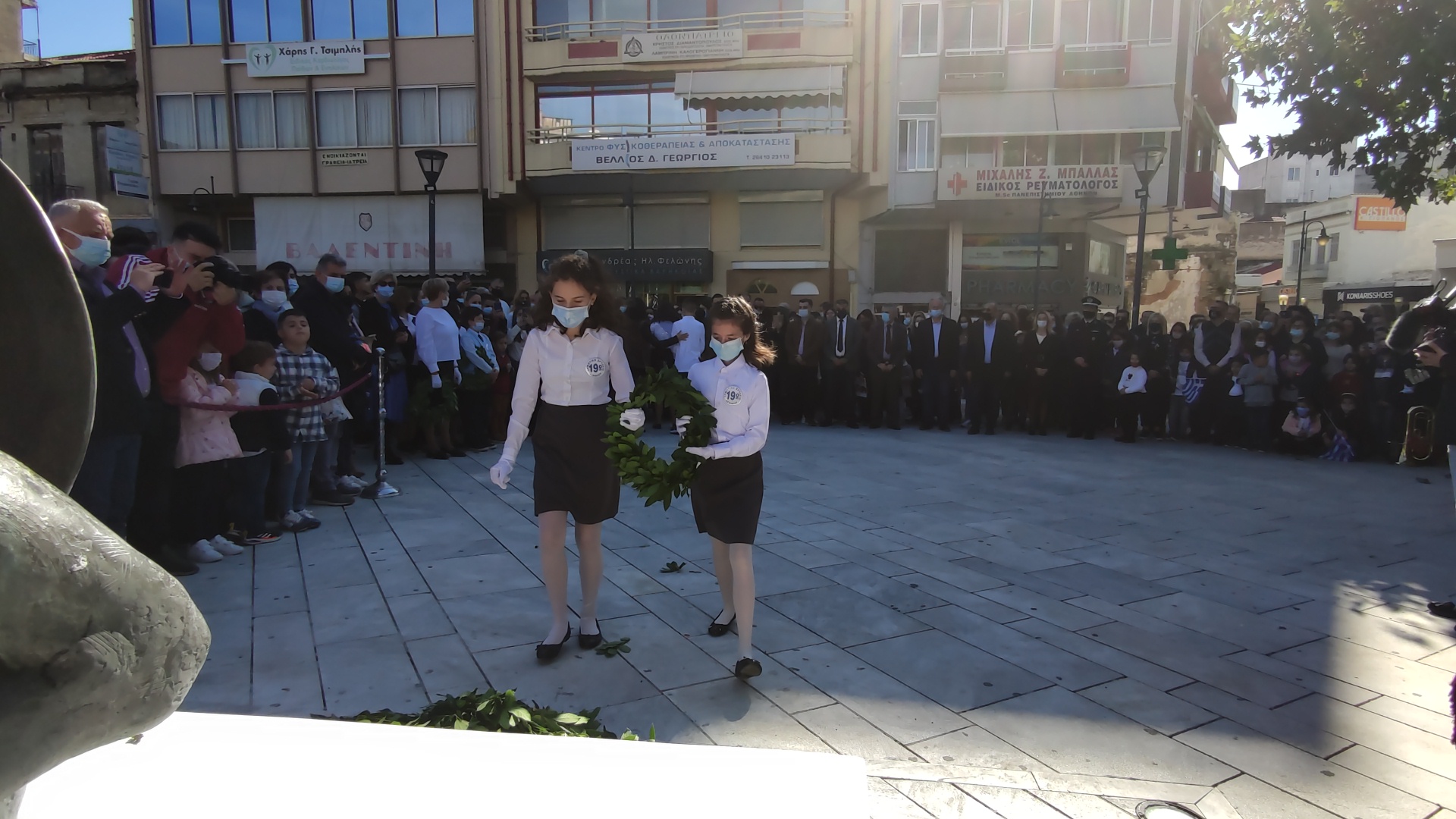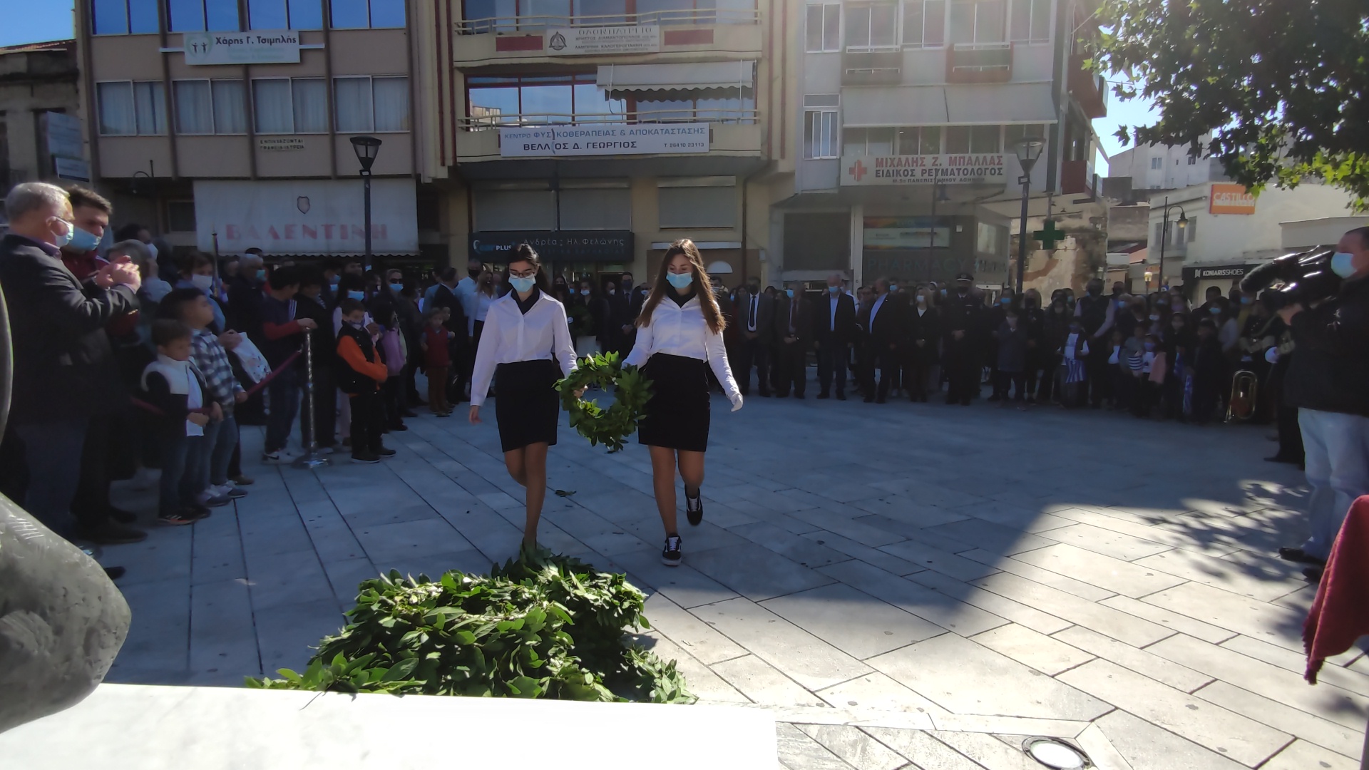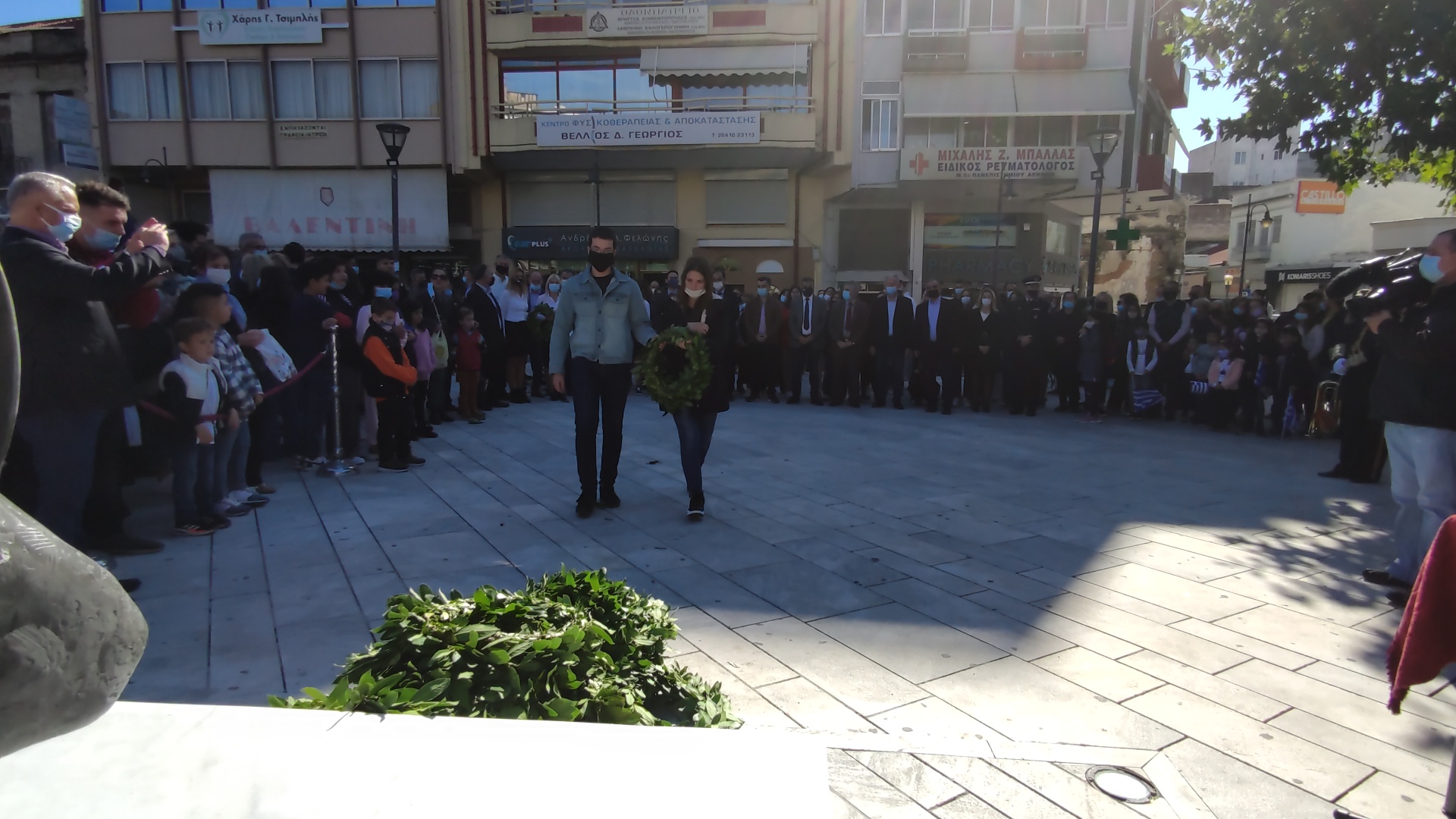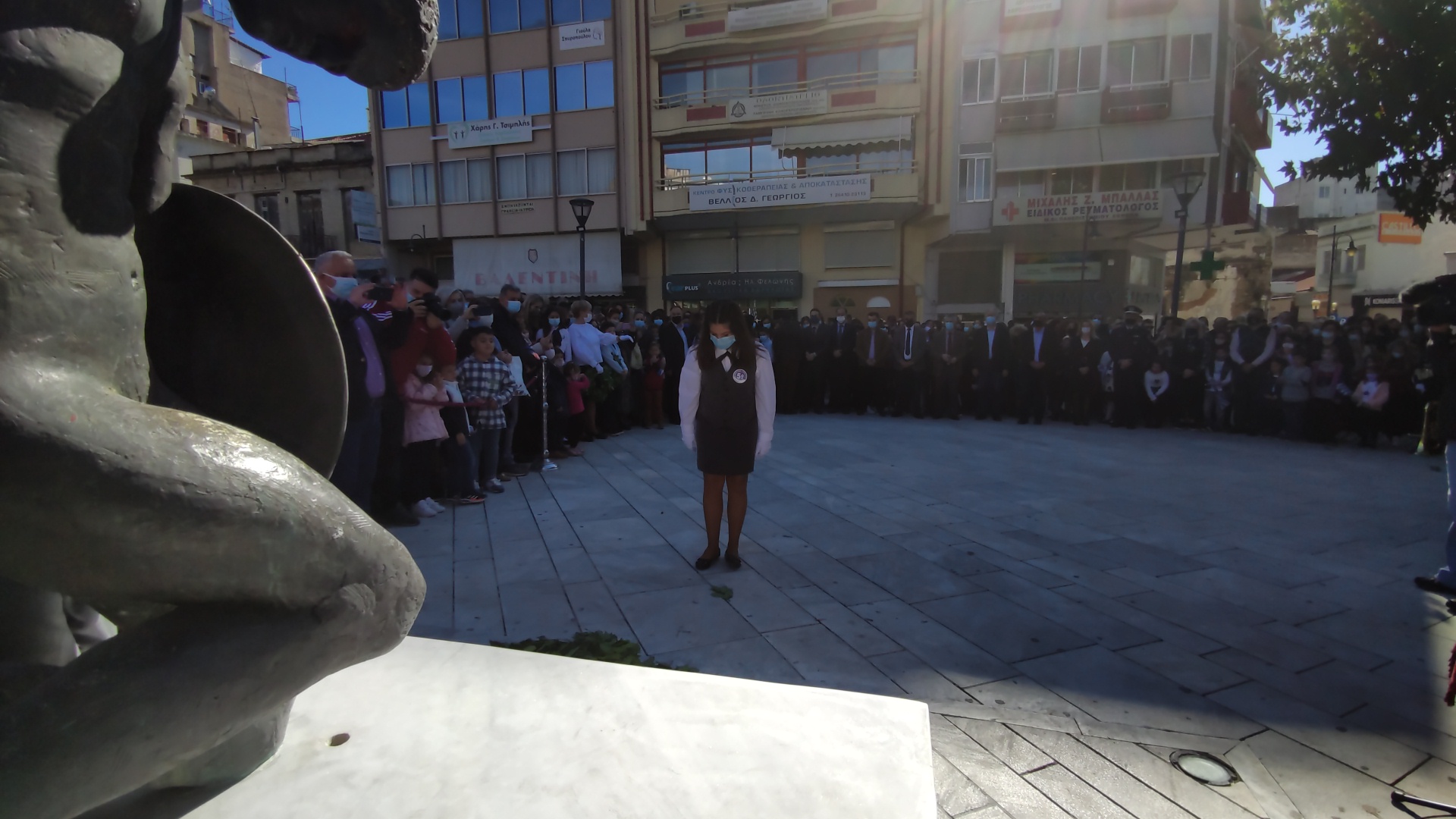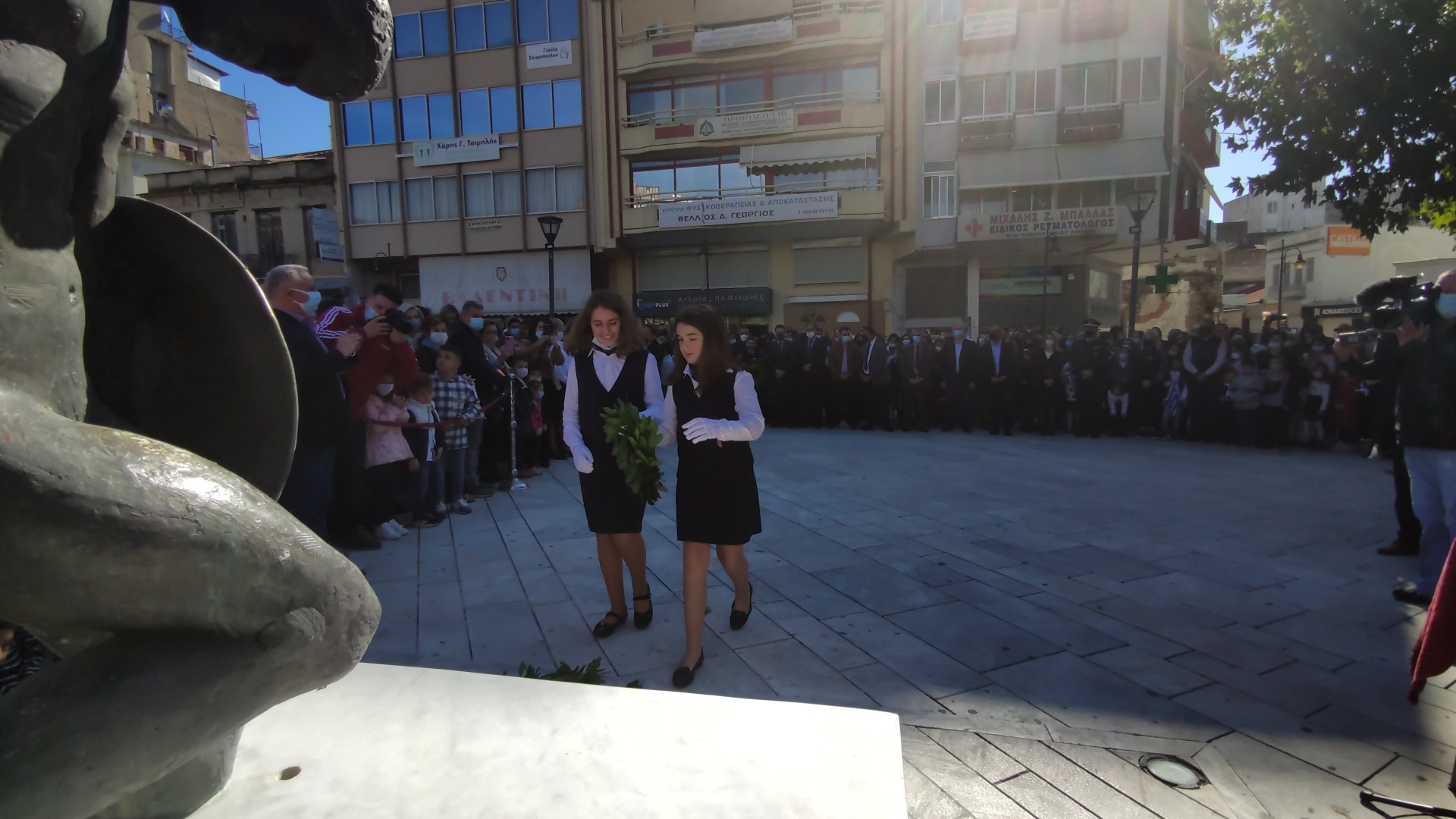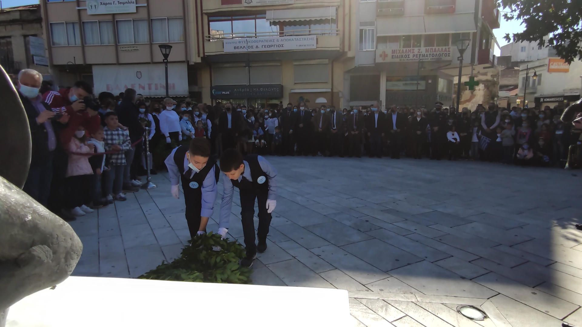Στην πλατεία παραβρέθηκαν μαθητές από τα σχολεία της πόλης, εκπρόσωποι της Δημοτικής Αρχής, Σωμάτων Ασφαλείας, Φορέων και πολίτες που χειροκρότησαν τα παιδιά μικρά και μεγάλα.