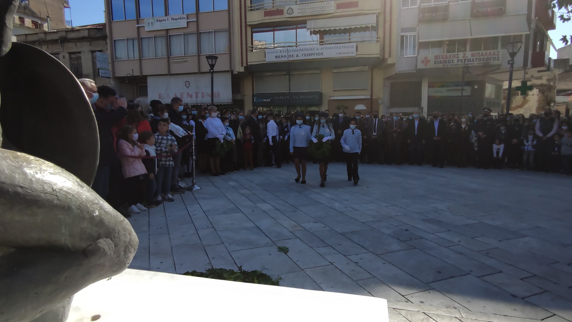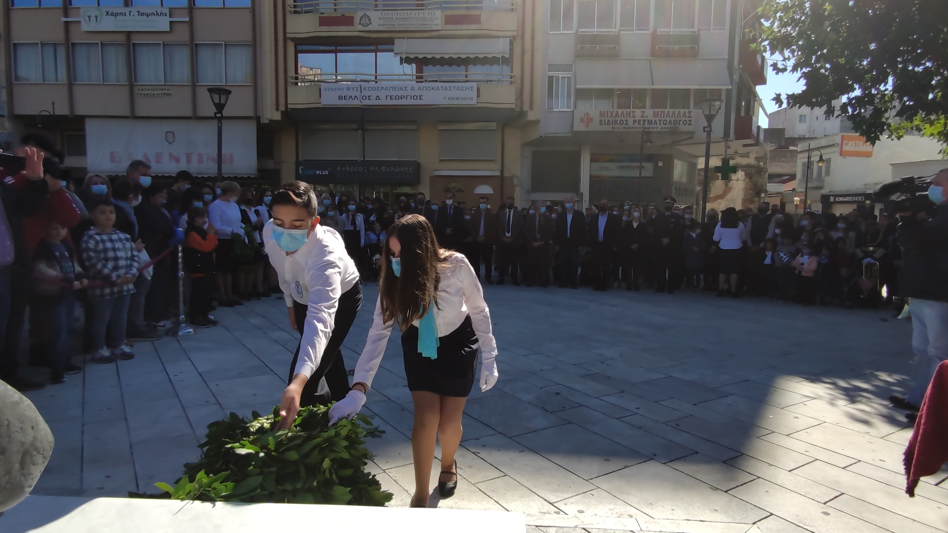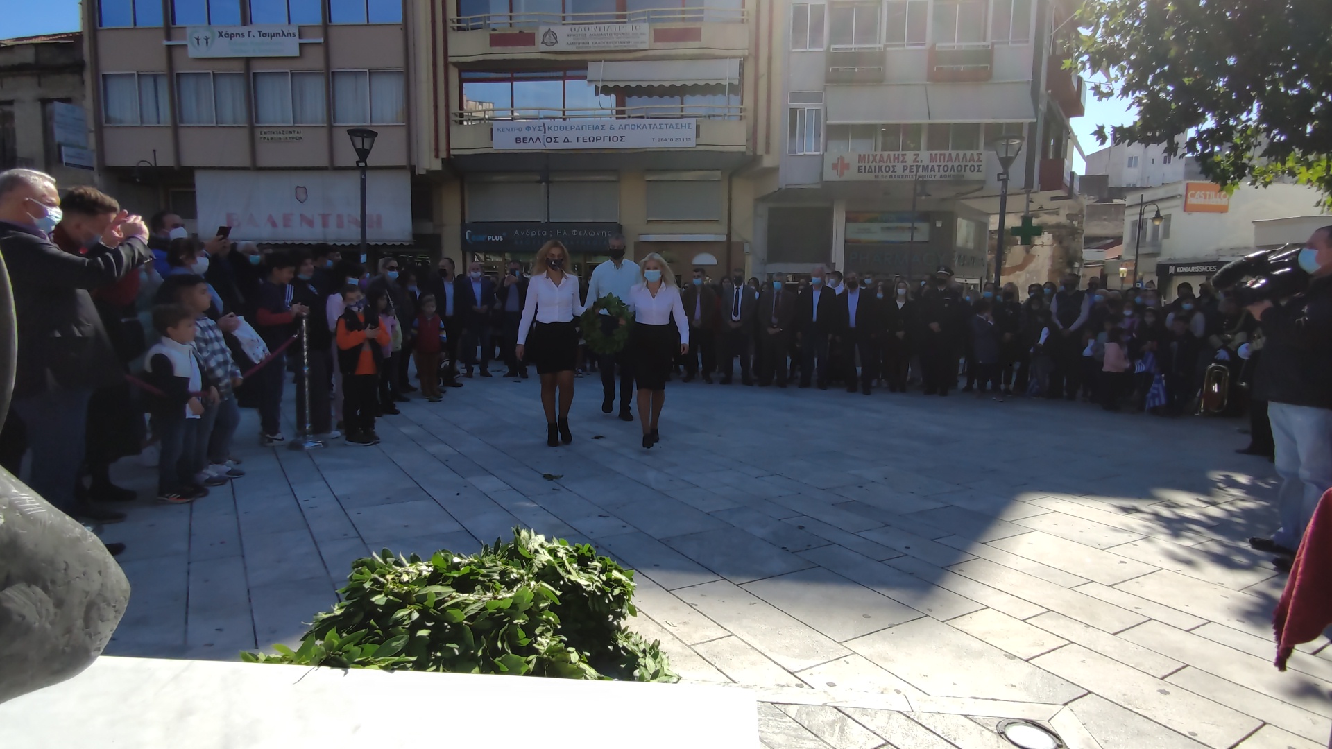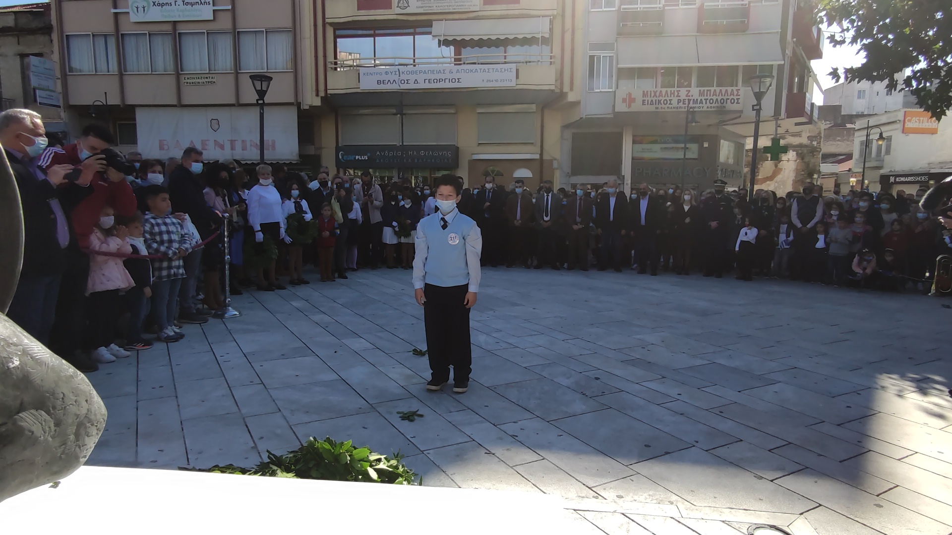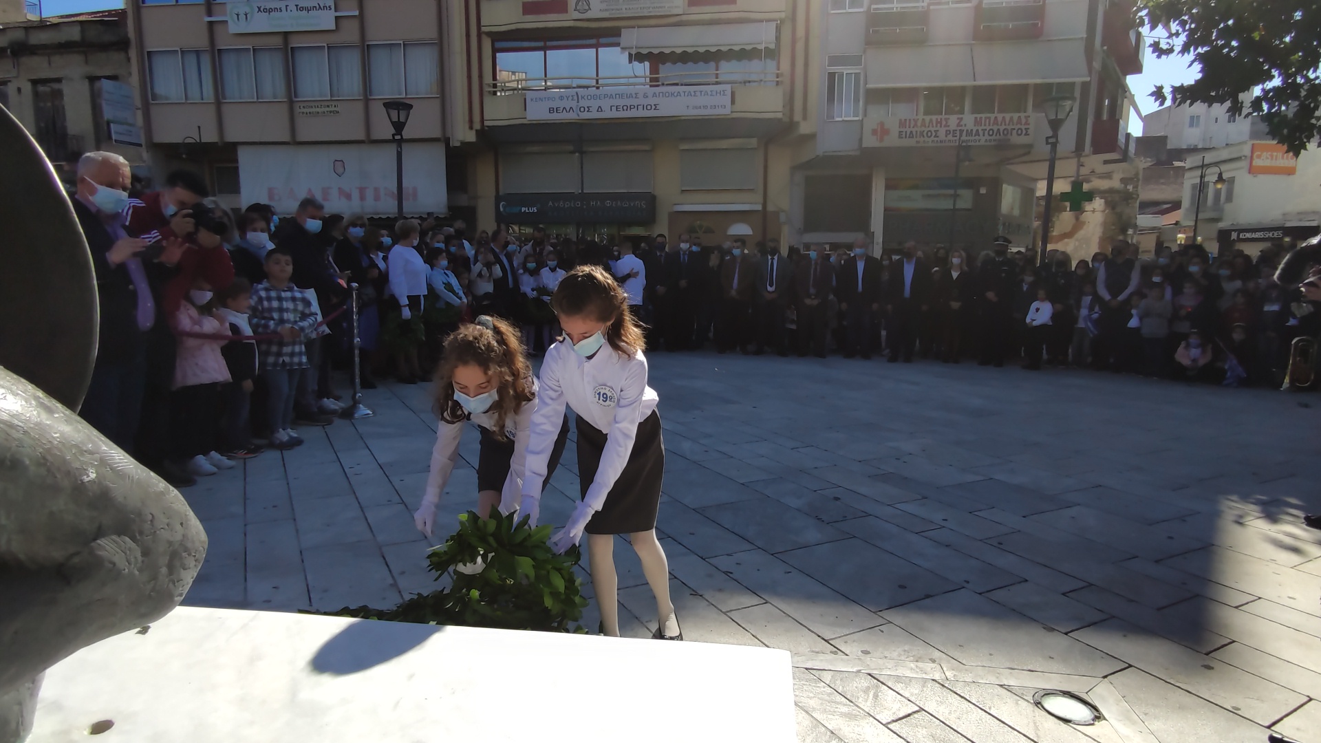 Στην πλατεία παραβρέθηκαν μαθητές από τα σχολεία της πόλης, εκπρόσωποι της Δημοτικής Αρχής, Σωμάτων Ασφαλείας, Φορέων και πολίτες που χειροκρότησαν τα παιδιά μικρά και μεγάλα.
