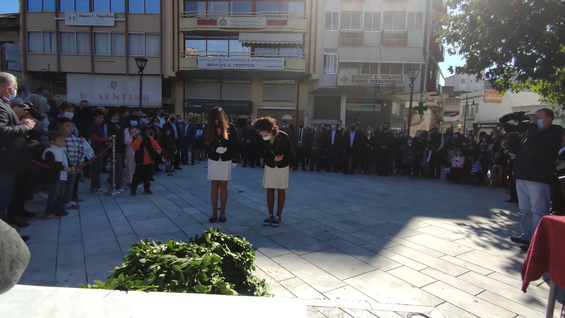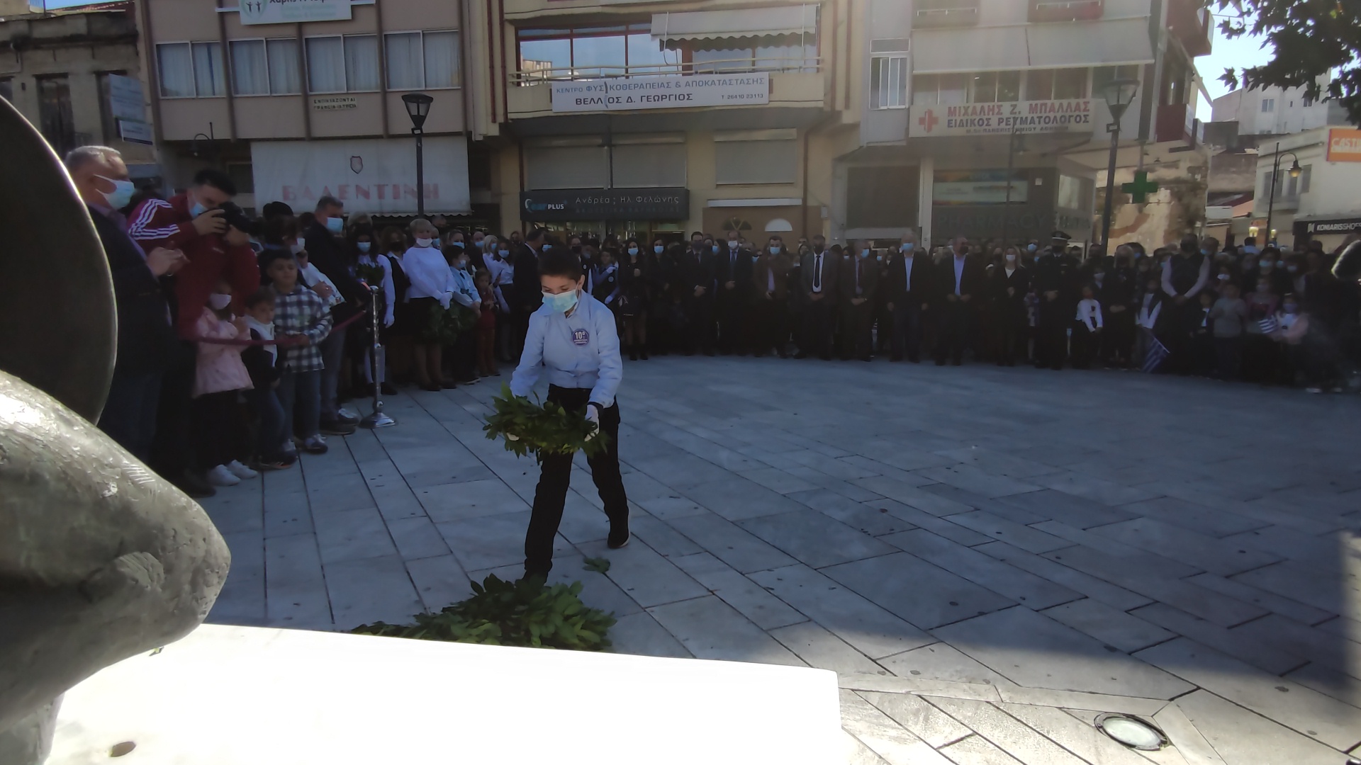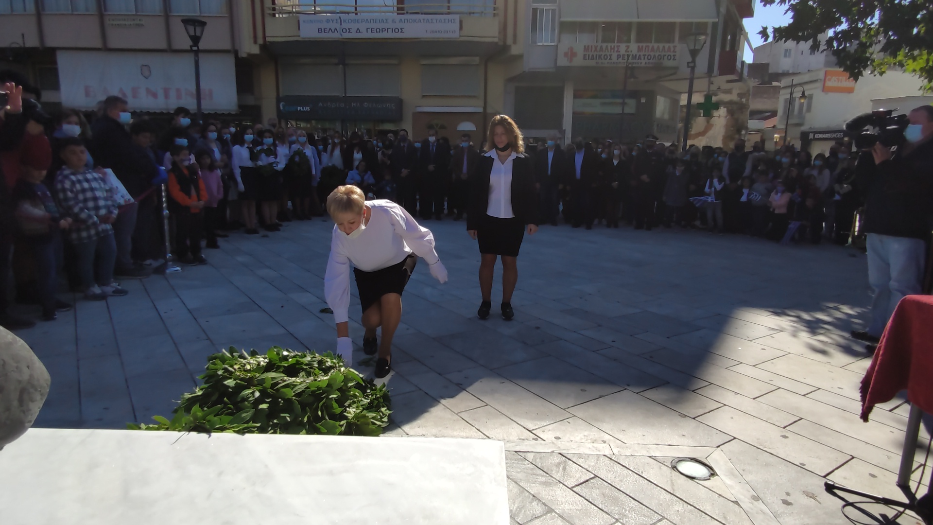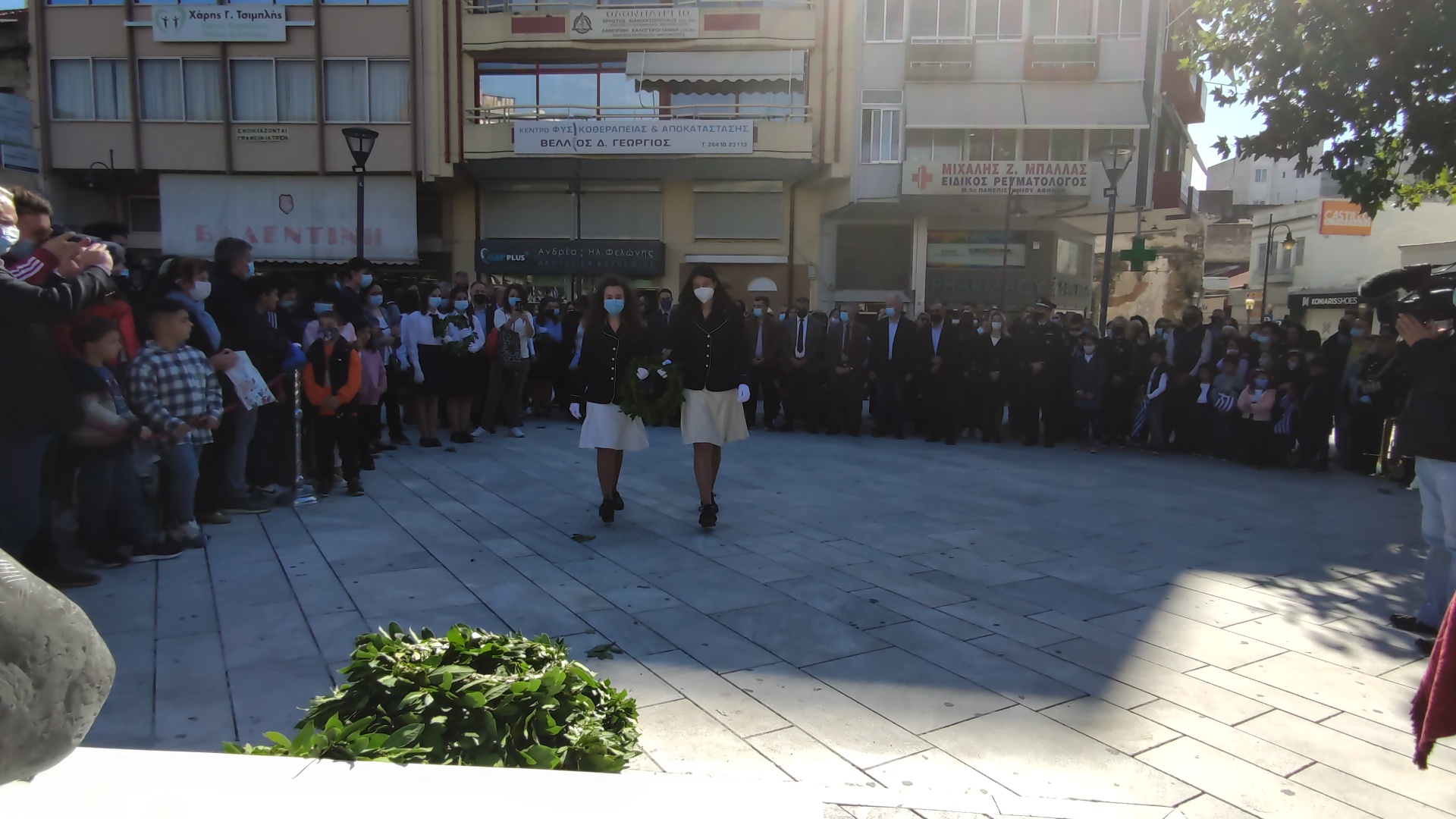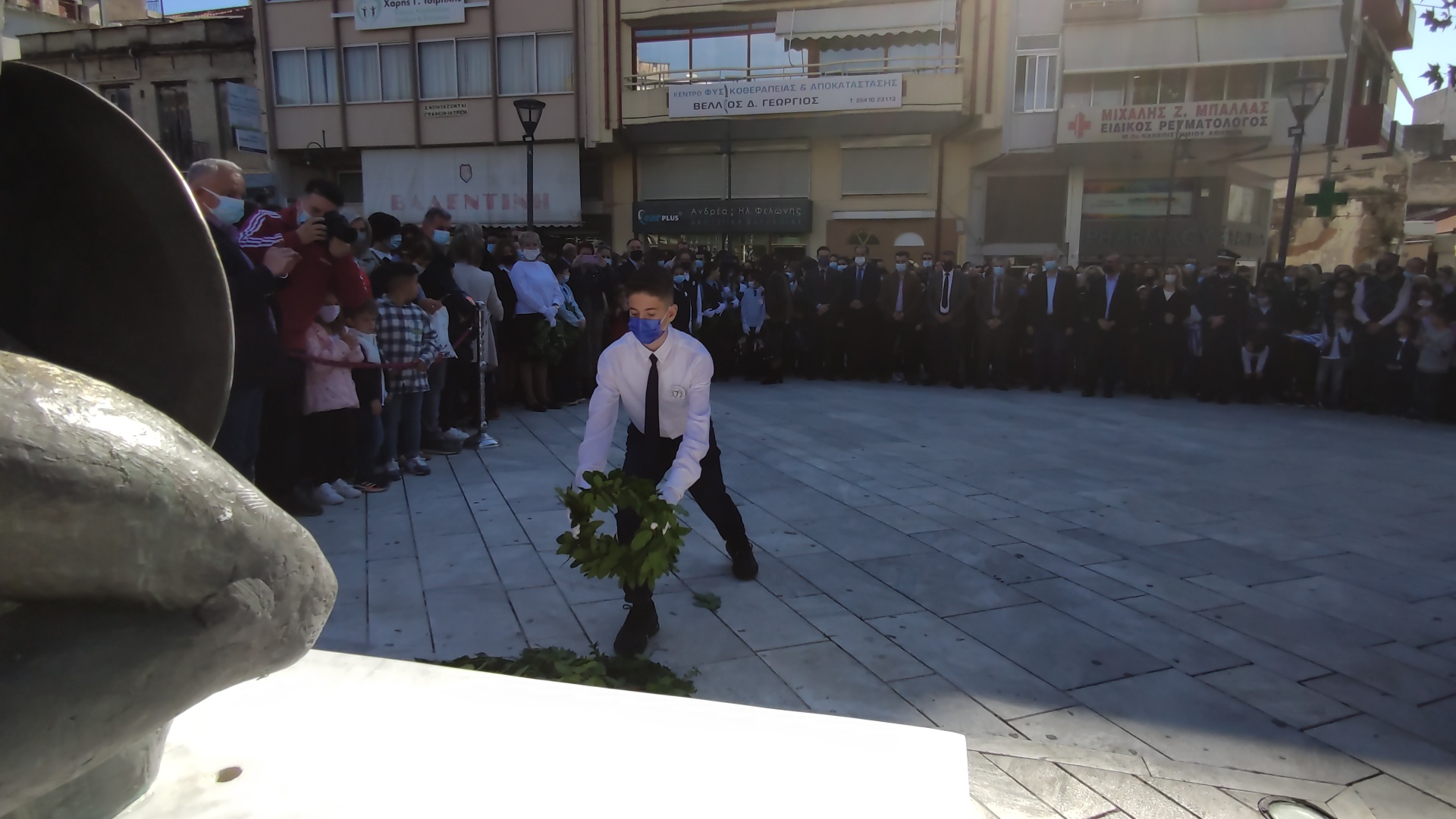 Στην πλατεία παραβρέθηκαν μαθητές από τα σχολεία της πόλης, εκπρόσωποι της Δημοτικής Αρχής, Σωμάτων Ασφαλείας, Φορέων και πολίτες που χειροκρότησαν τα παιδιά μικρά και μεγάλα.