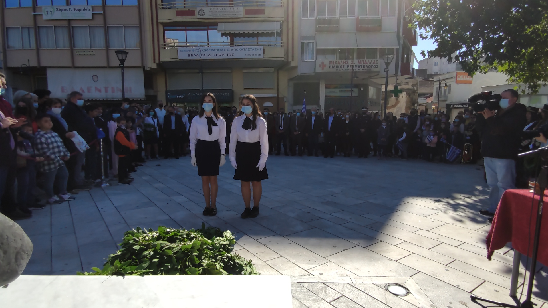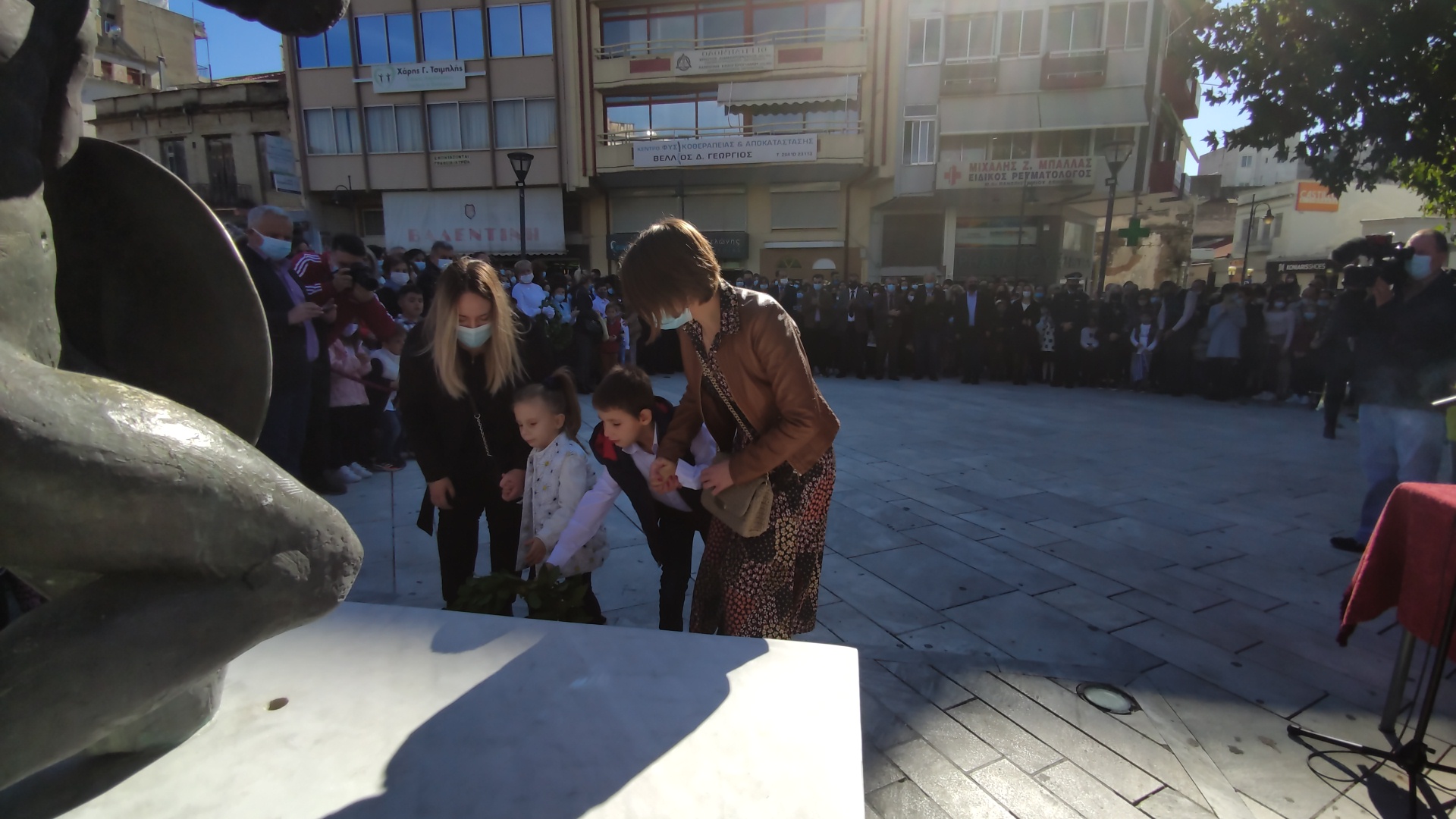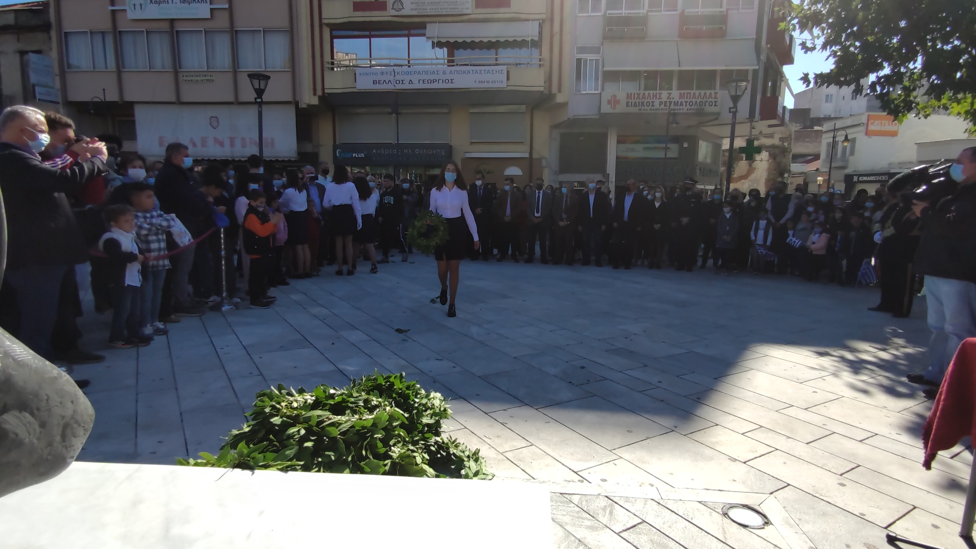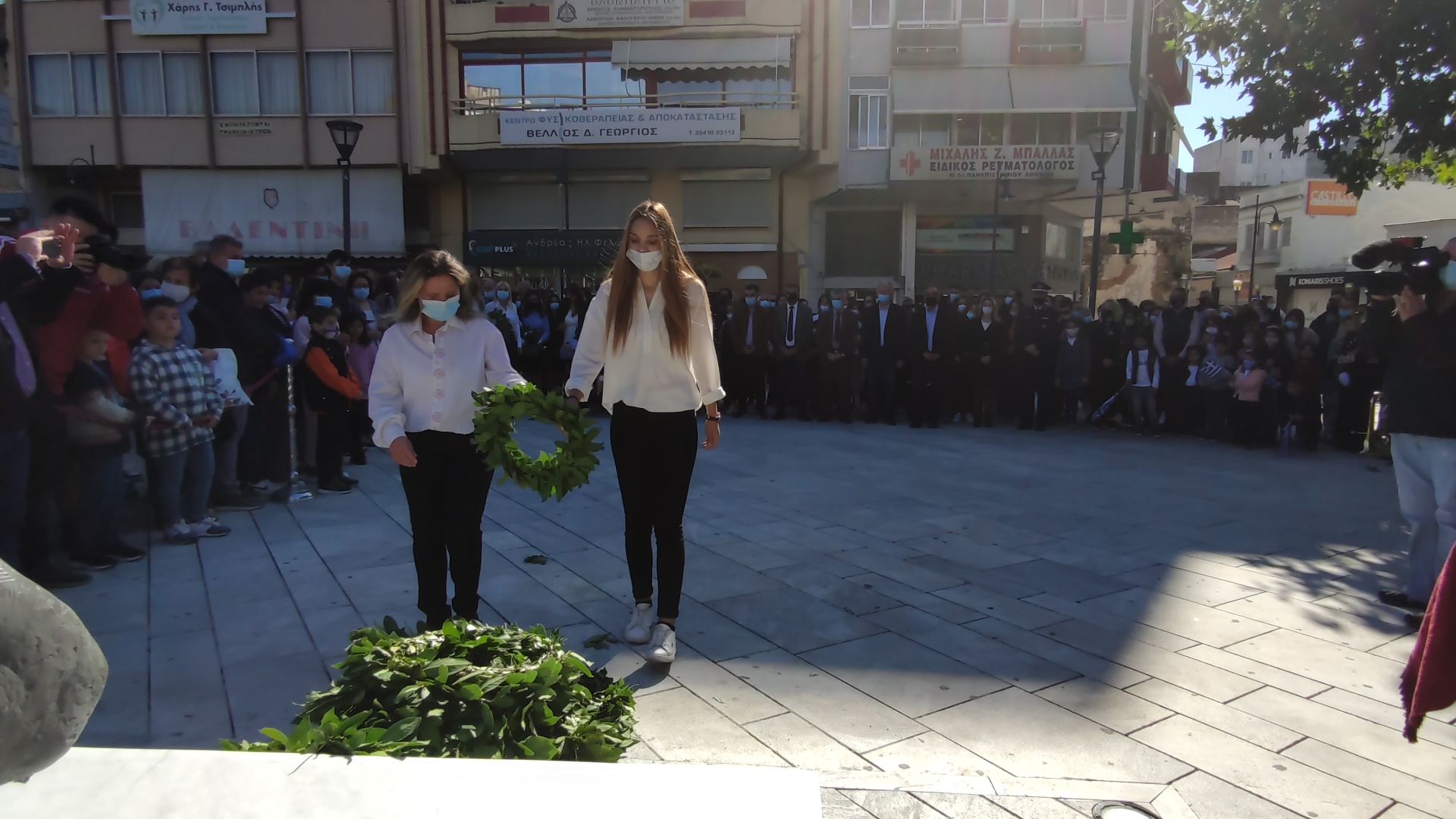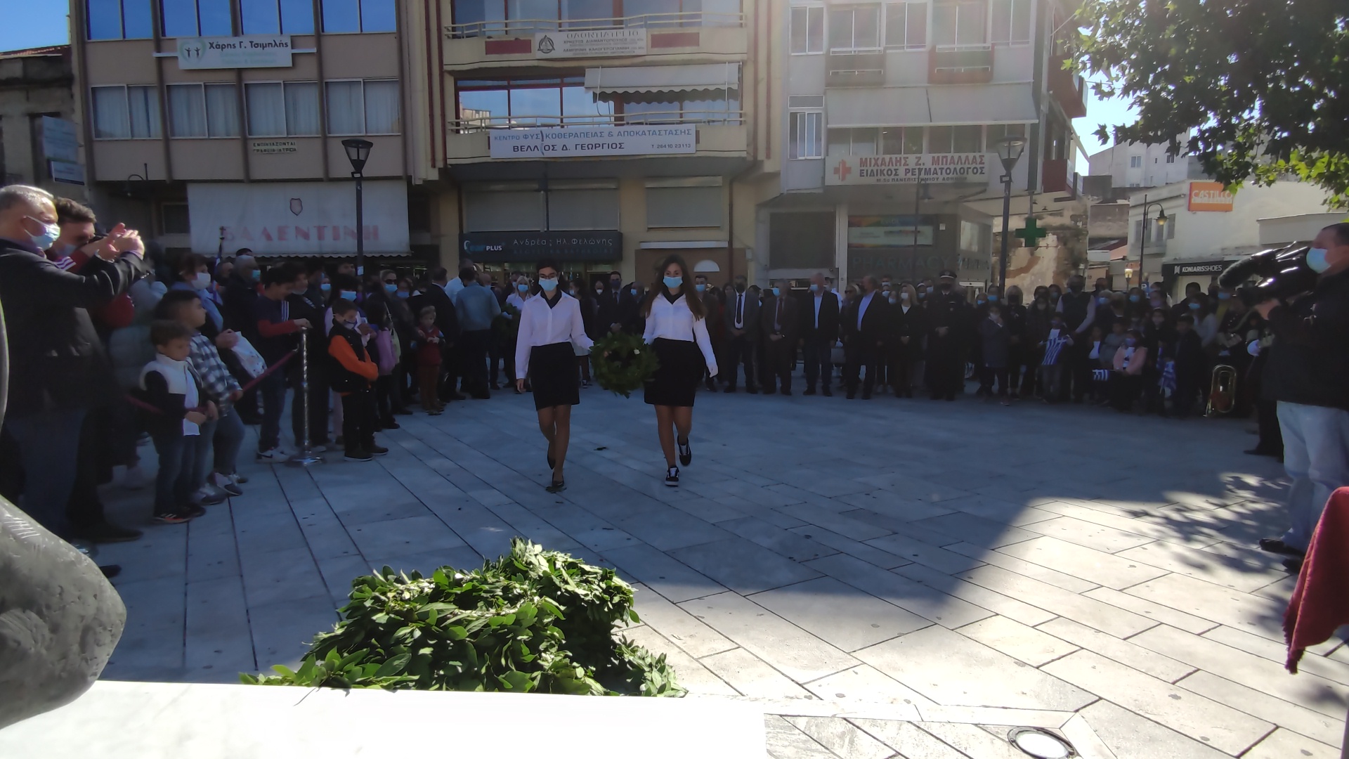 Στην πλατεία παραβρέθηκαν μαθητές από τα σχολεία της πόλης, εκπρόσωποι της Δημοτικής Αρχής, Σωμάτων Ασφαλείας, Φορέων και πολίτες που χειροκρότησαν τα παιδιά μικρά και μεγάλα.
