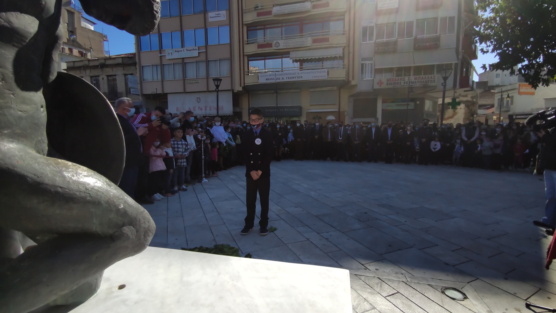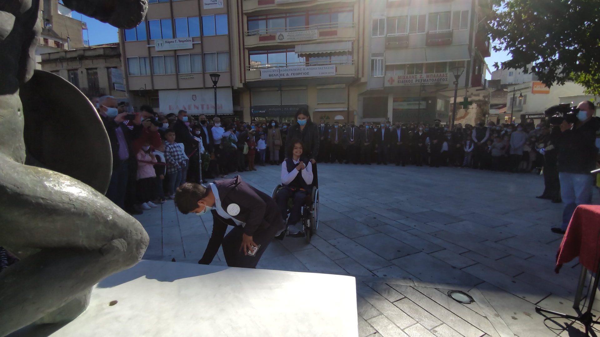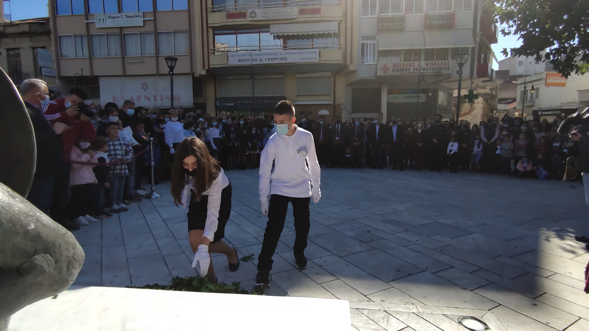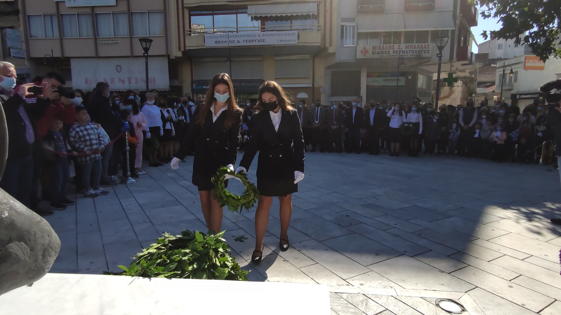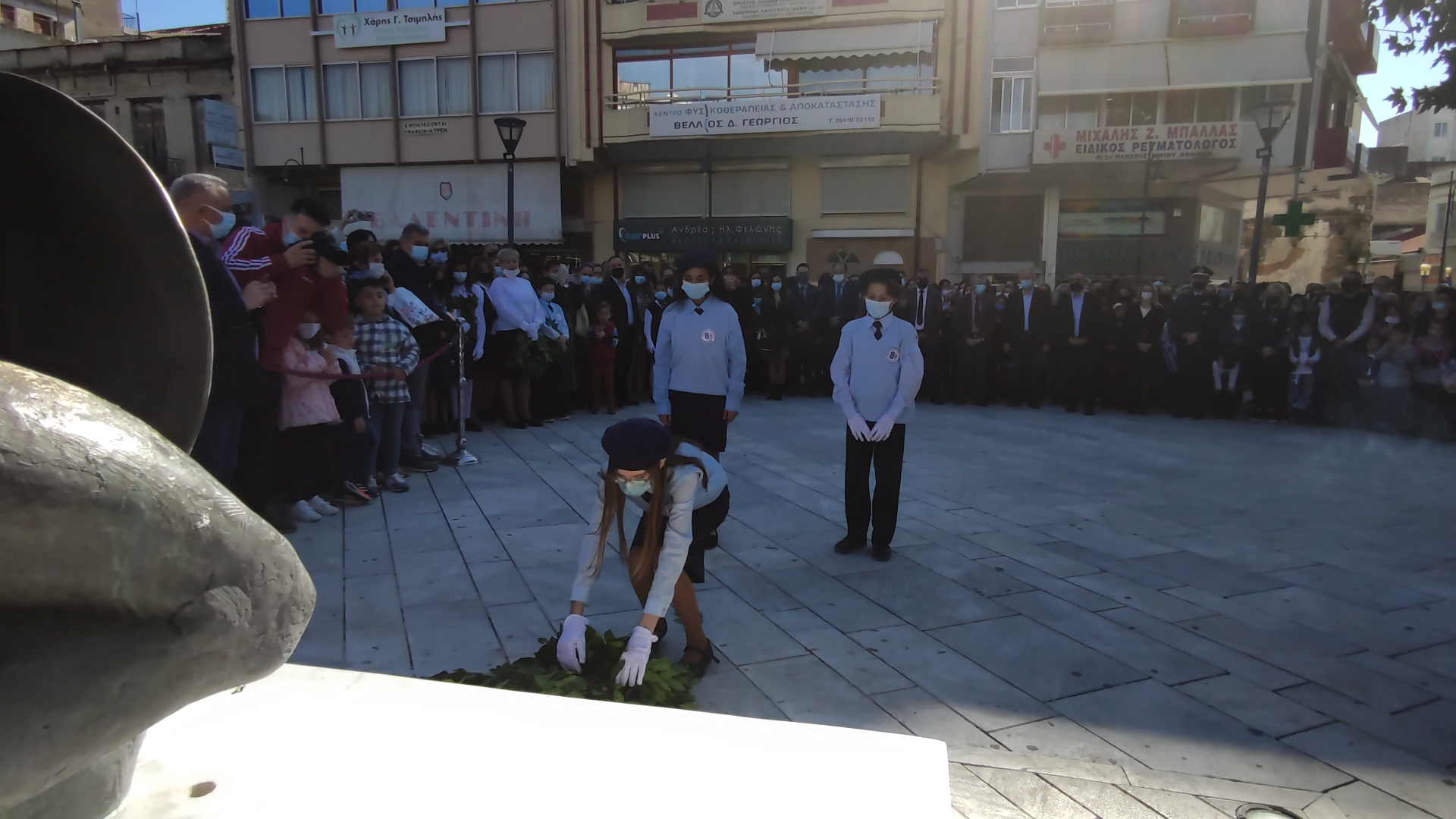 Στην πλατεία παραβρέθηκαν μαθητές από τα σχολεία της πόλης, εκπρόσωποι της Δημοτικής Αρχής, Σωμάτων Ασφαλείας, Φορέων και πολίτες που χειροκρότησαν τα παιδιά μικρά και μεγάλα.