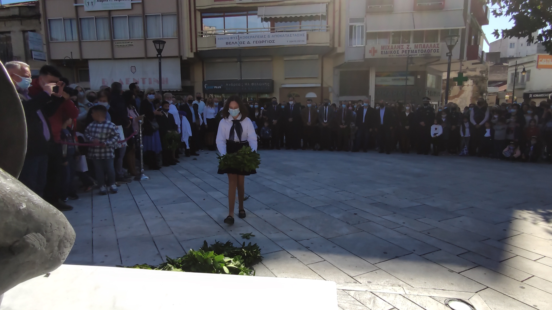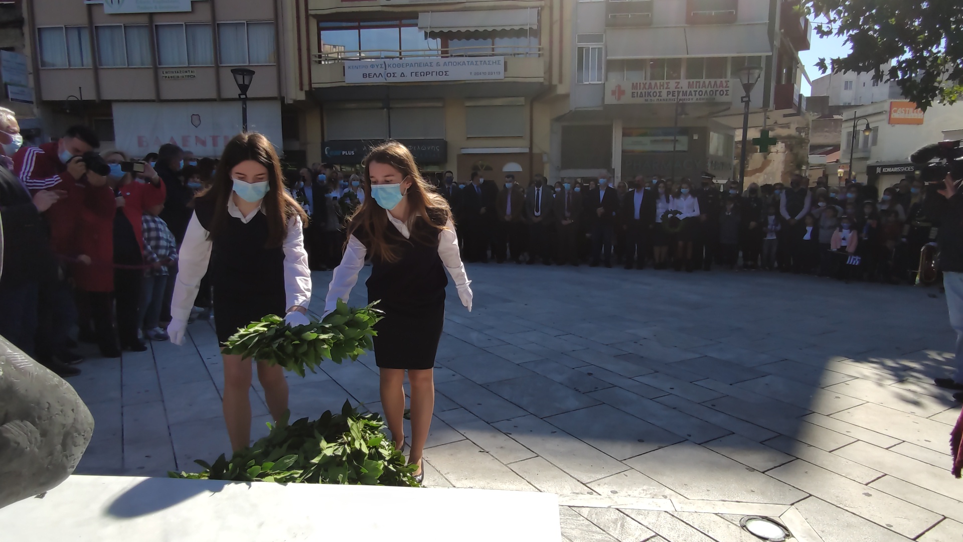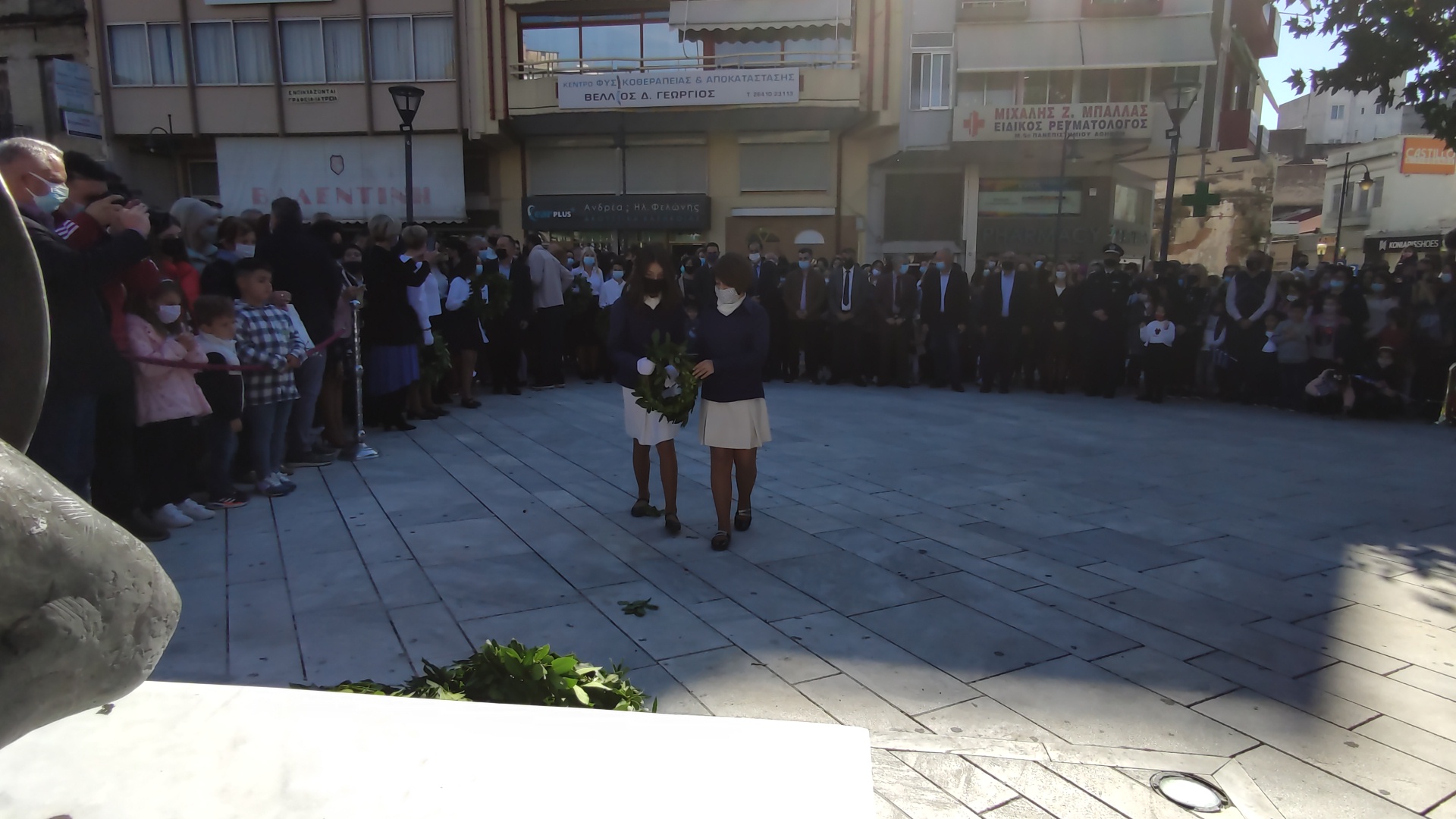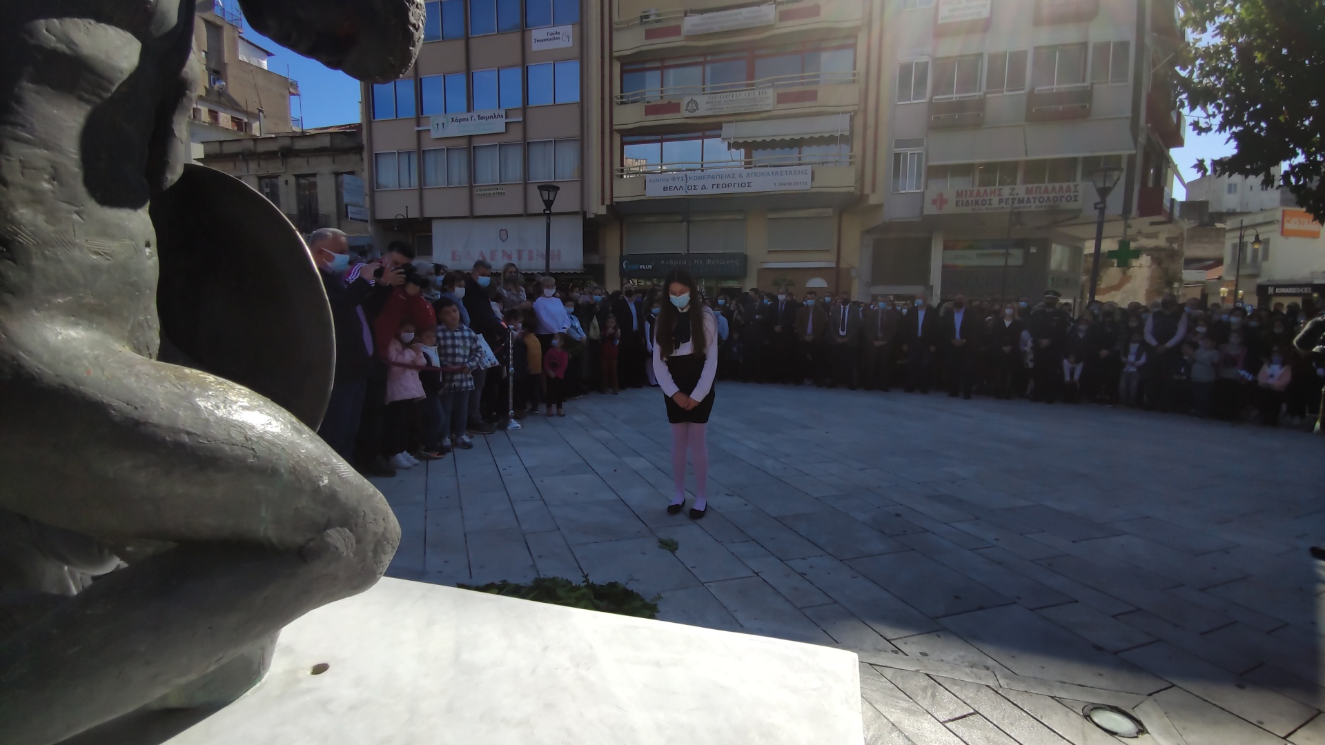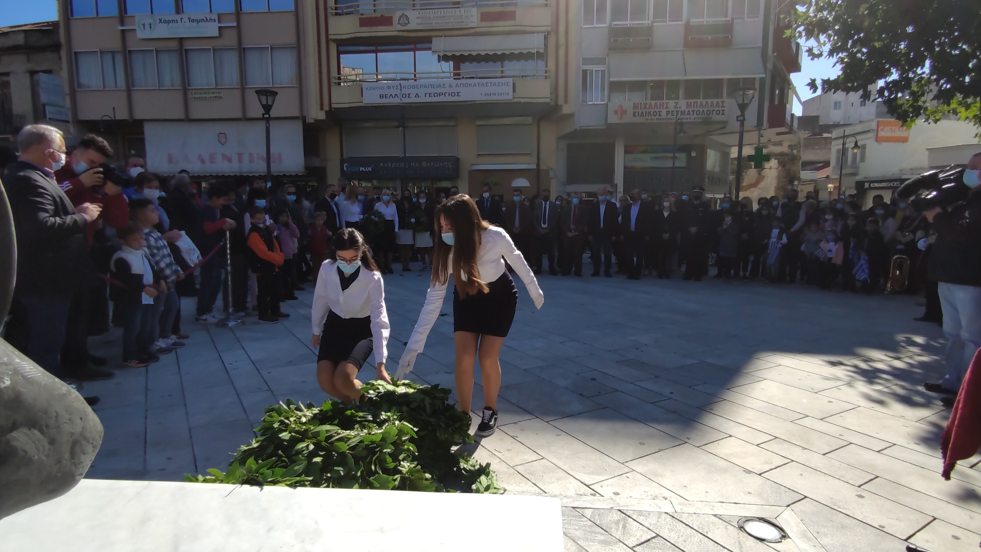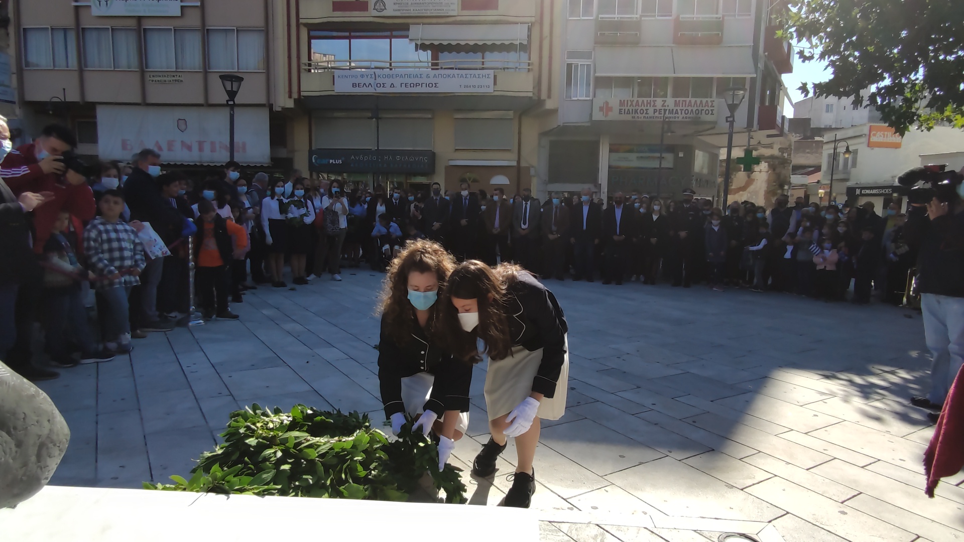 Στην πλατεία παραβρέθηκαν μαθητές από τα σχολεία της πόλης, εκπρόσωποι της Δημοτικής Αρχής, Σωμάτων Ασφαλείας, Φορέων και πολίτες που χειροκρότησαν τα παιδιά μικρά και μεγάλα.