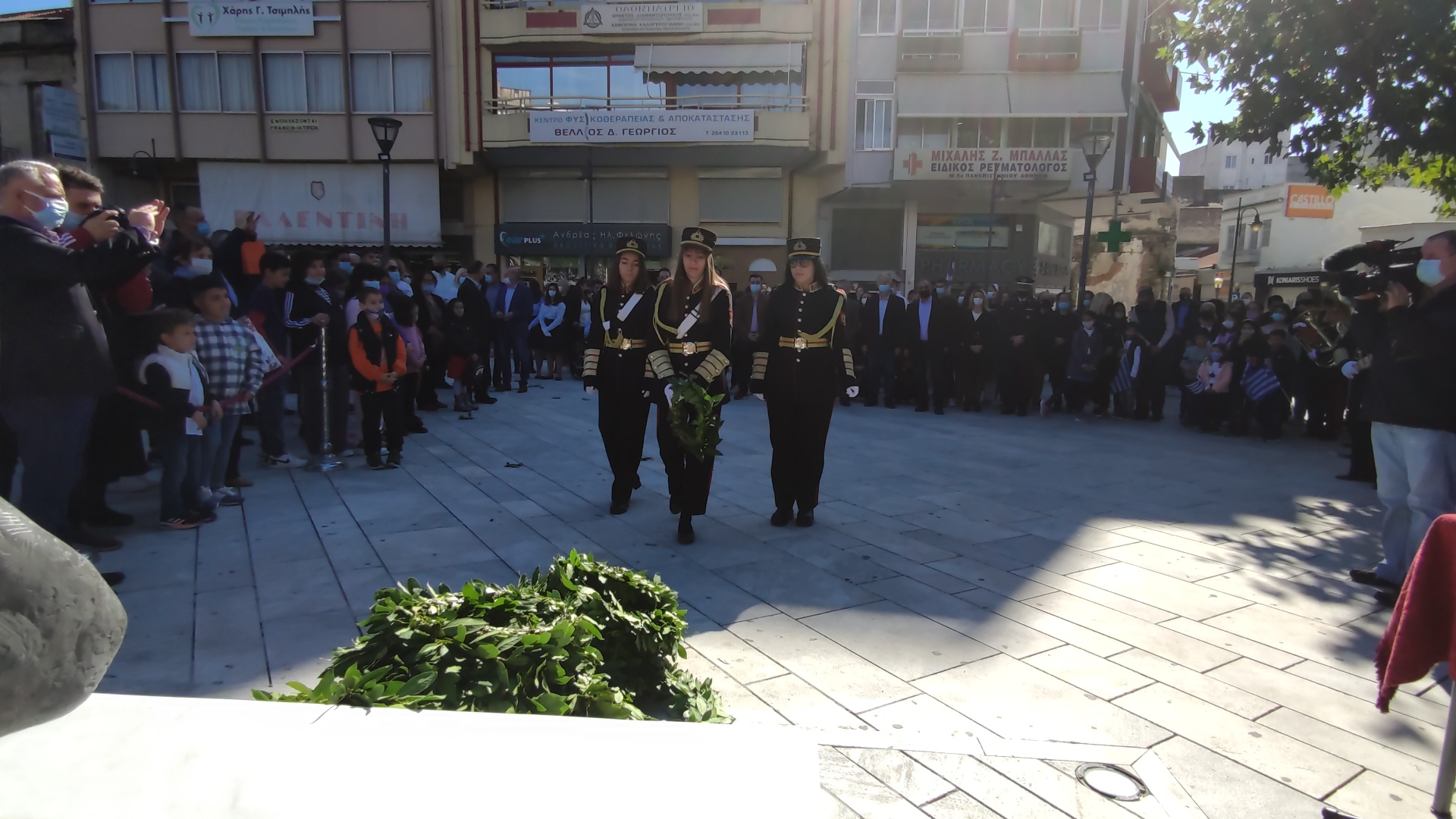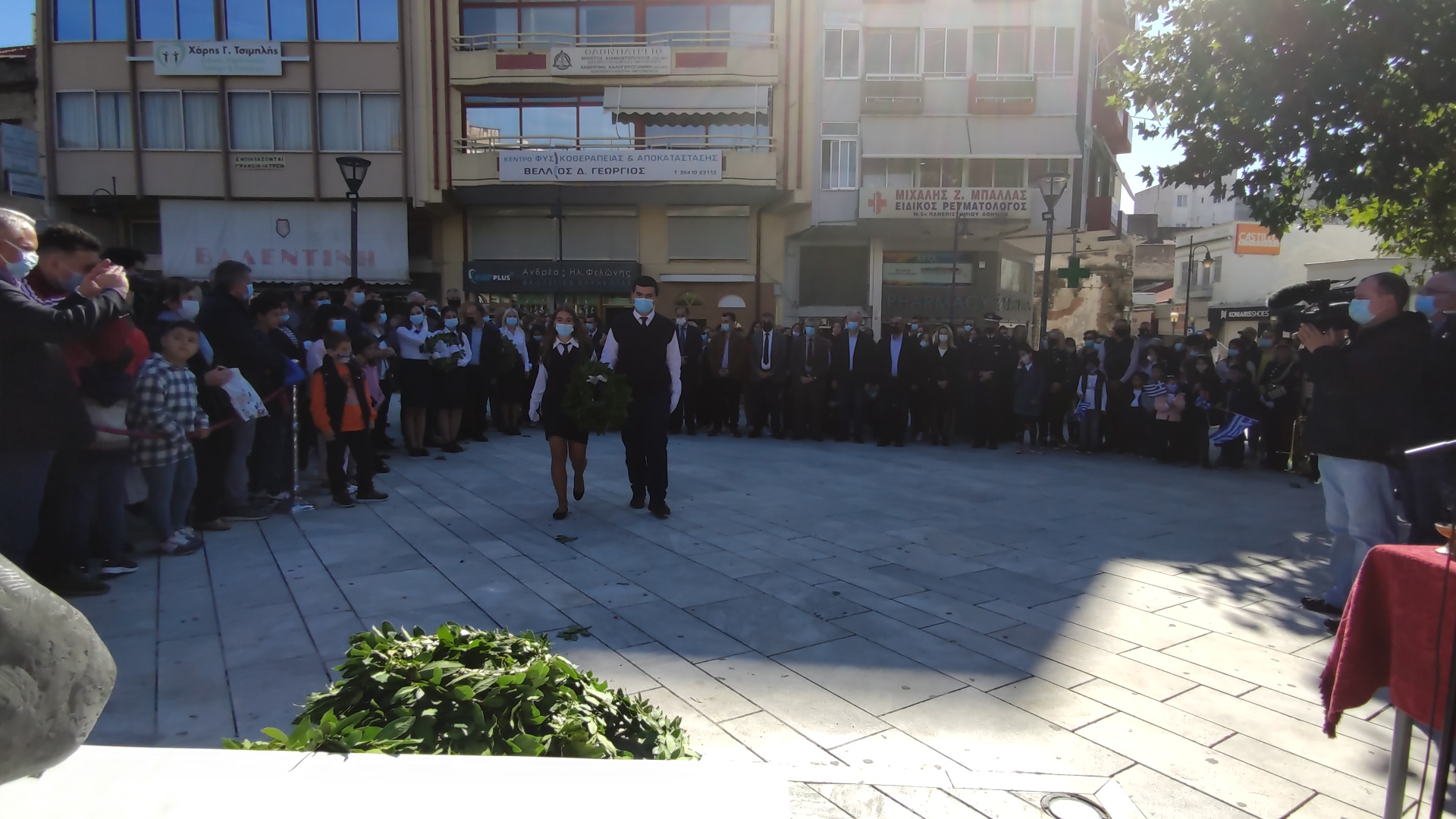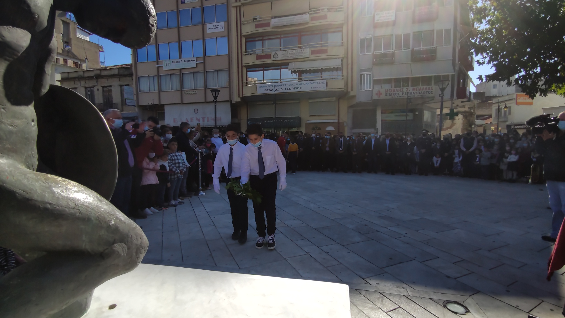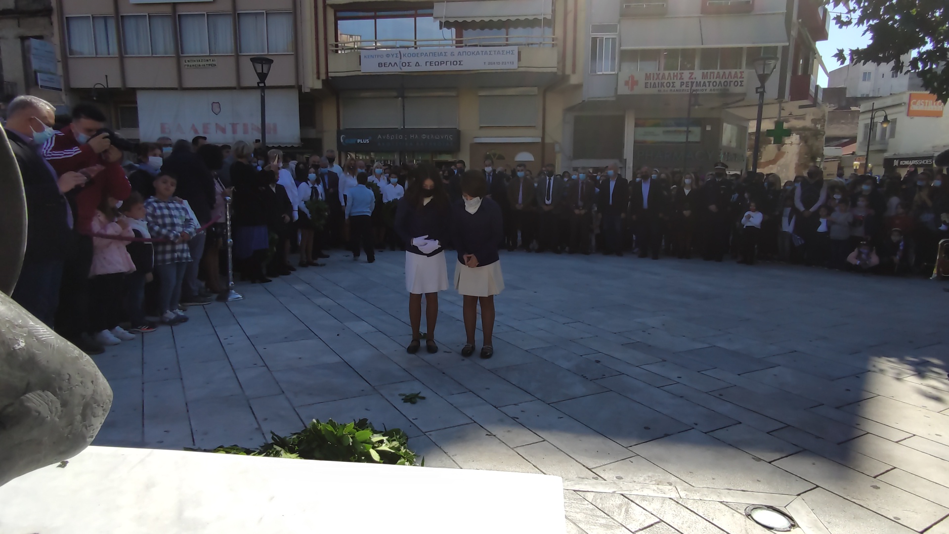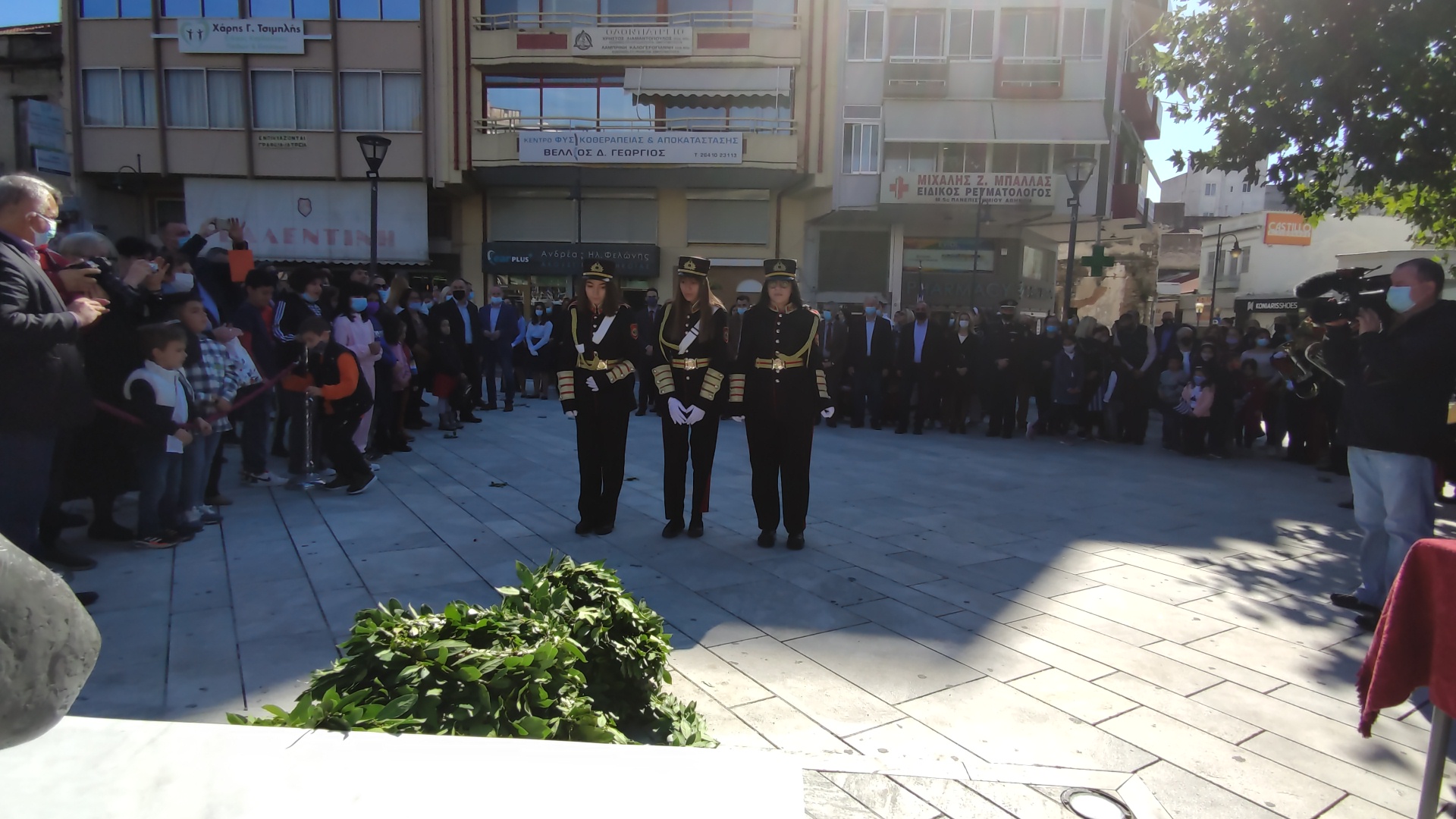 Στην πλατεία παραβρέθηκαν μαθητές από τα σχολεία της πόλης, εκπρόσωποι της Δημοτικής Αρχής, Σωμάτων Ασφαλείας, Φορέων και πολίτες που χειροκρότησαν τα παιδιά μικρά και μεγάλα.