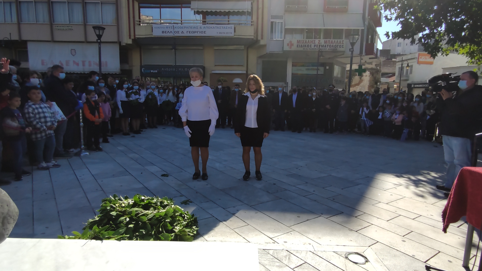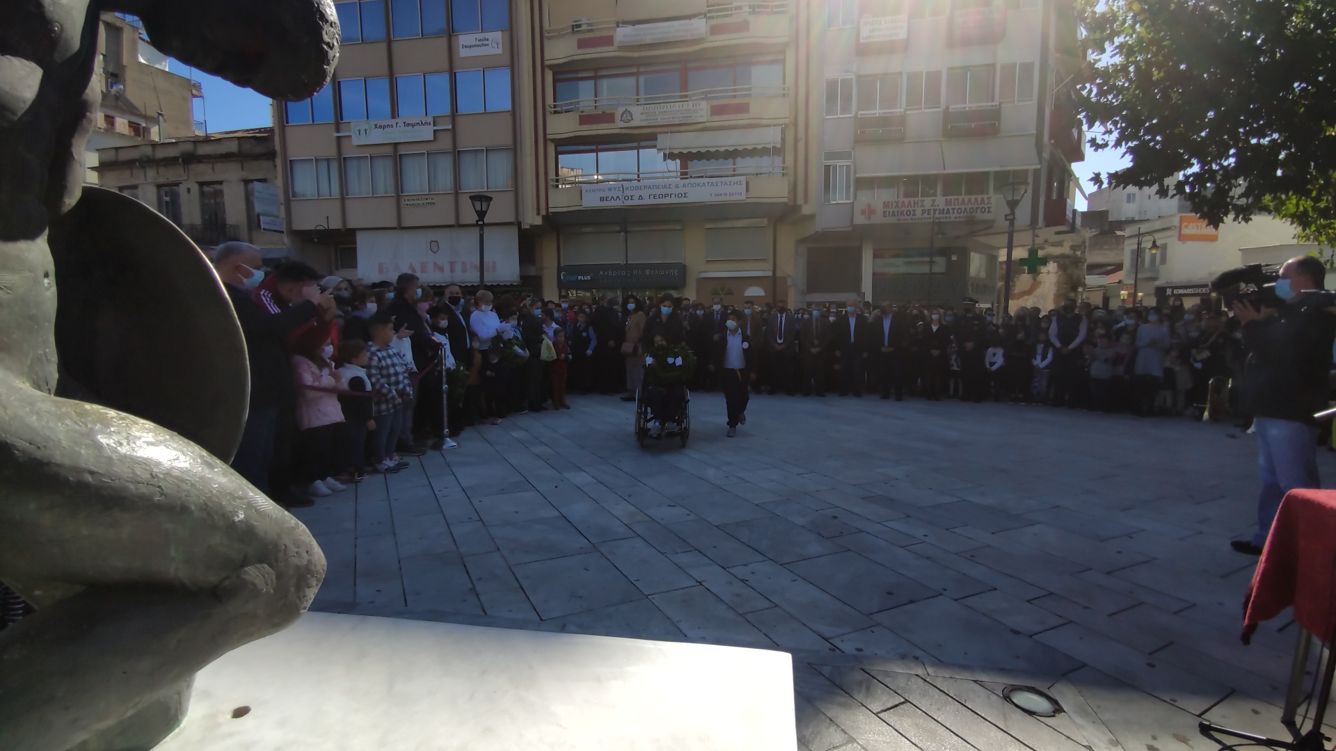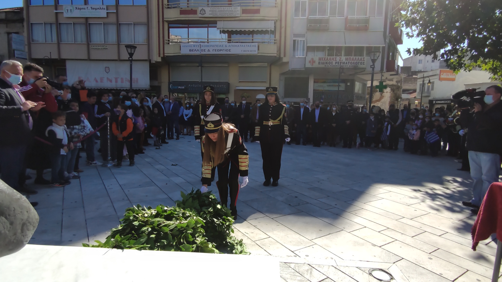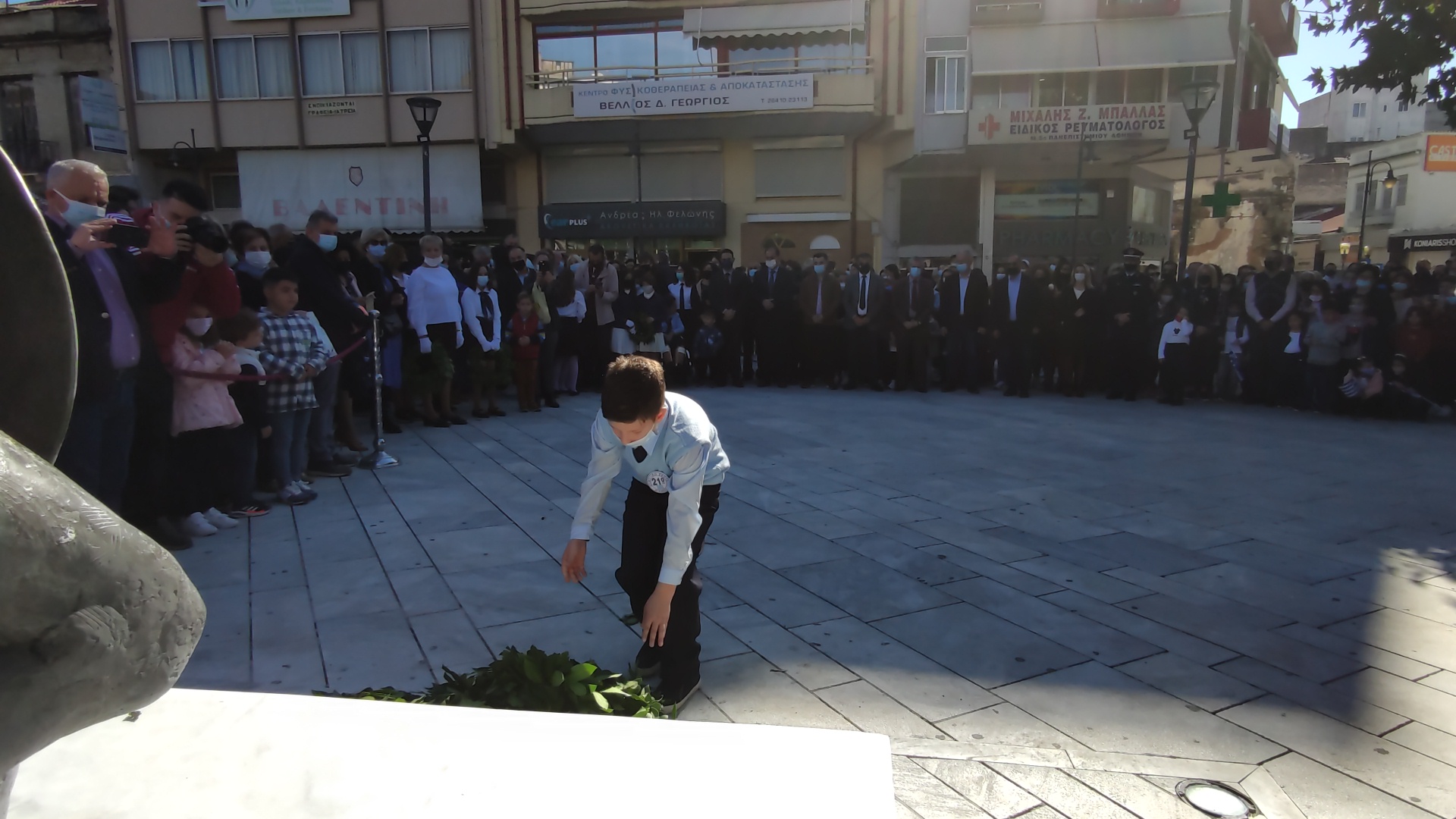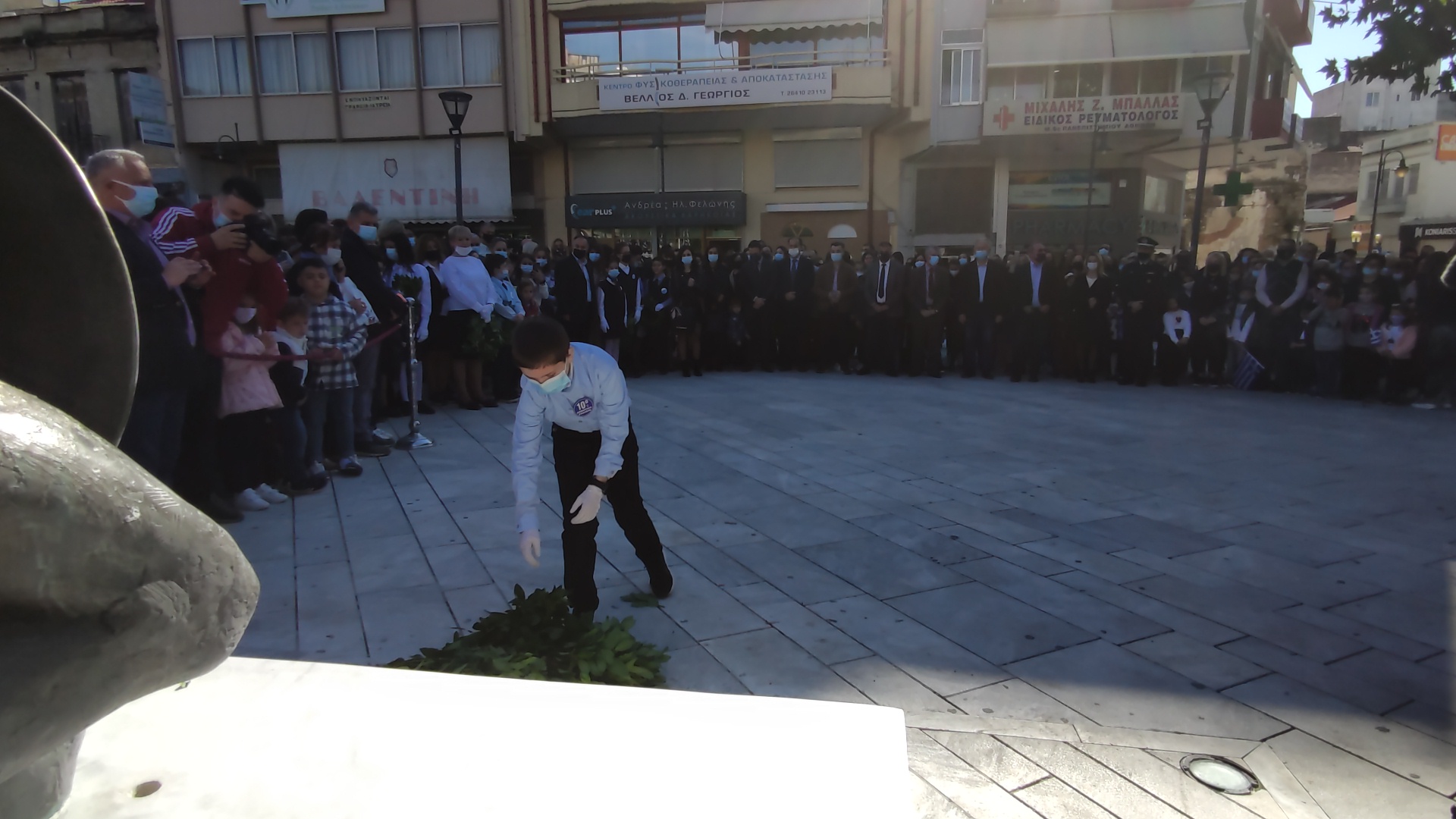 Στην πλατεία παραβρέθηκαν μαθητές από τα σχολεία της πόλης, εκπρόσωποι της Δημοτικής Αρχής, Σωμάτων Ασφαλείας, Φορέων και πολίτες που χειροκρότησαν τα παιδιά μικρά και μεγάλα.