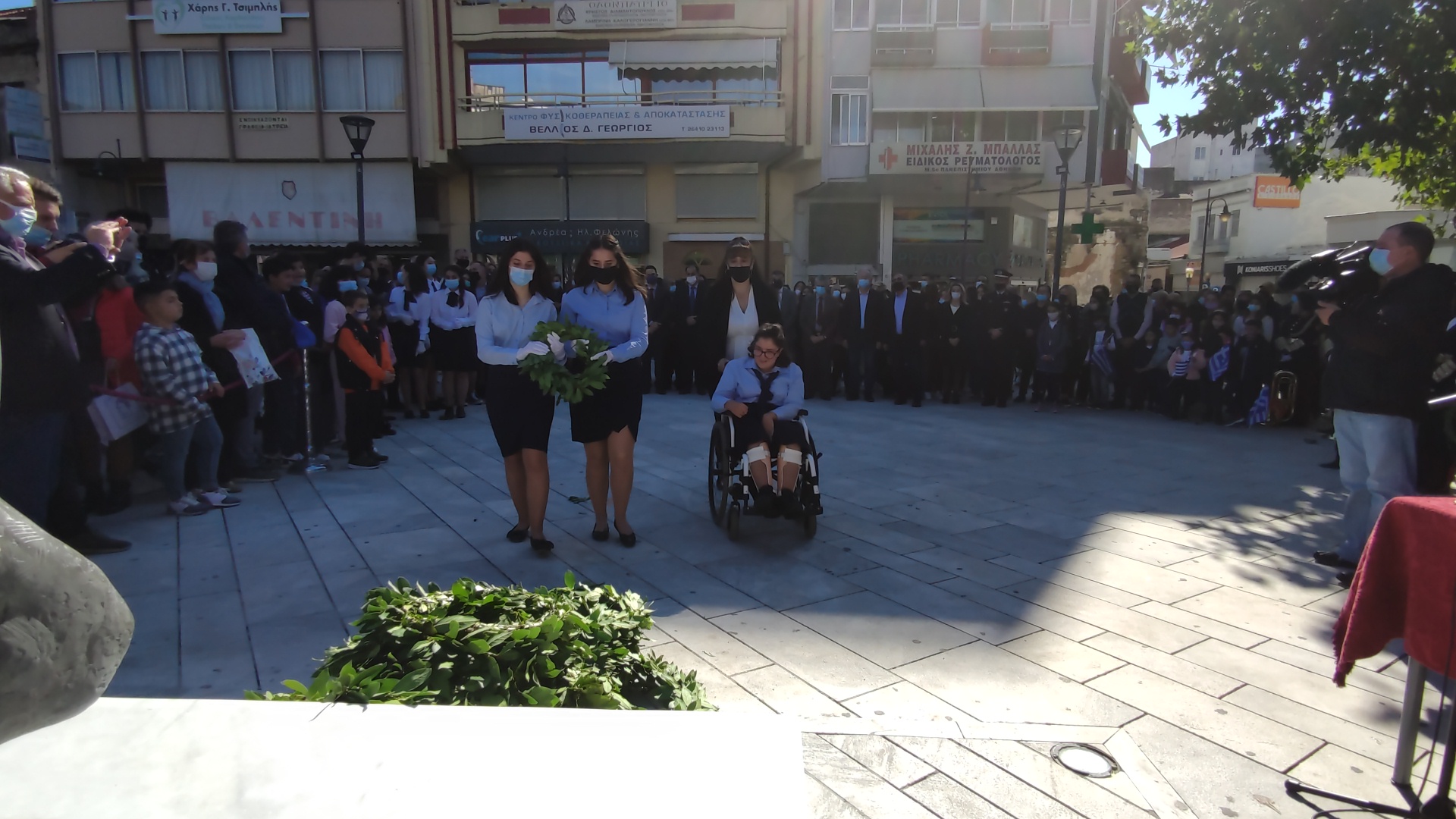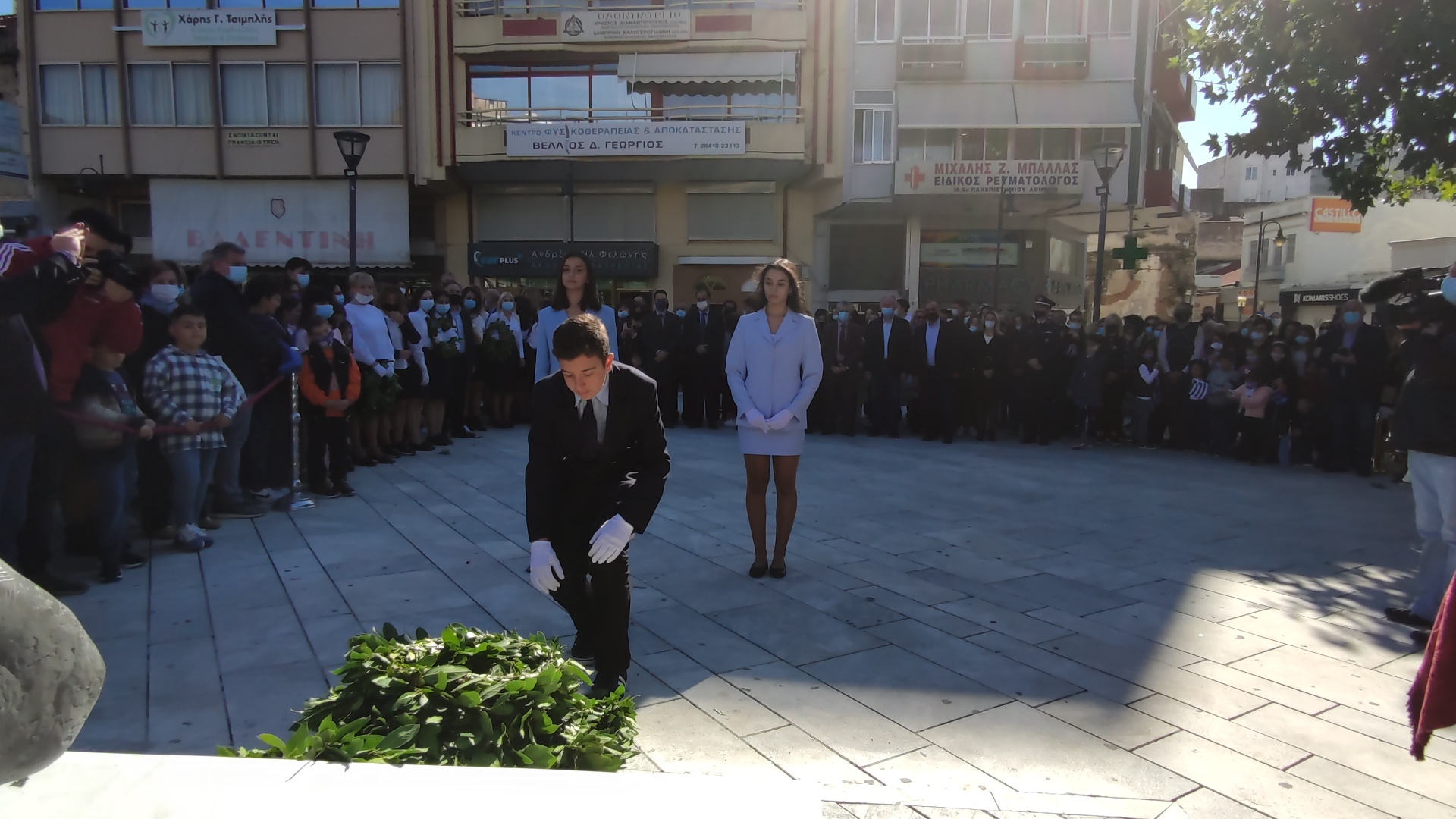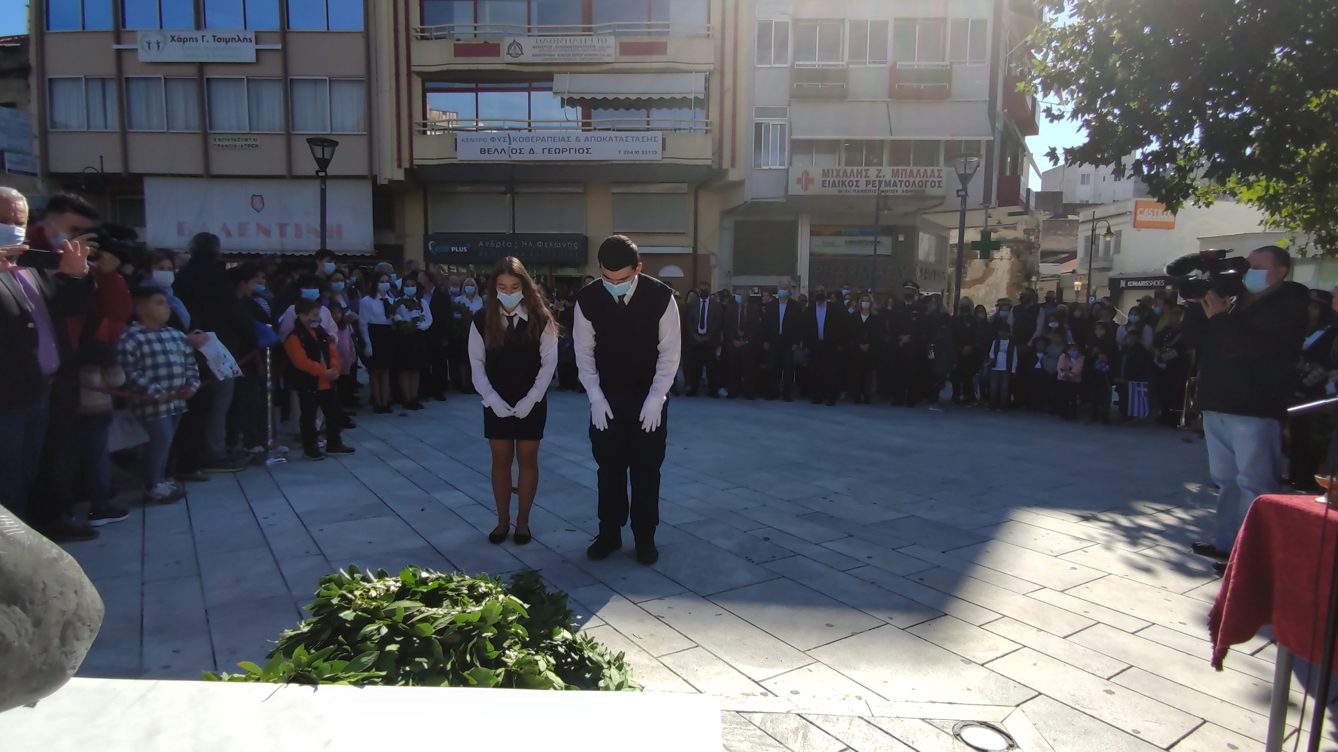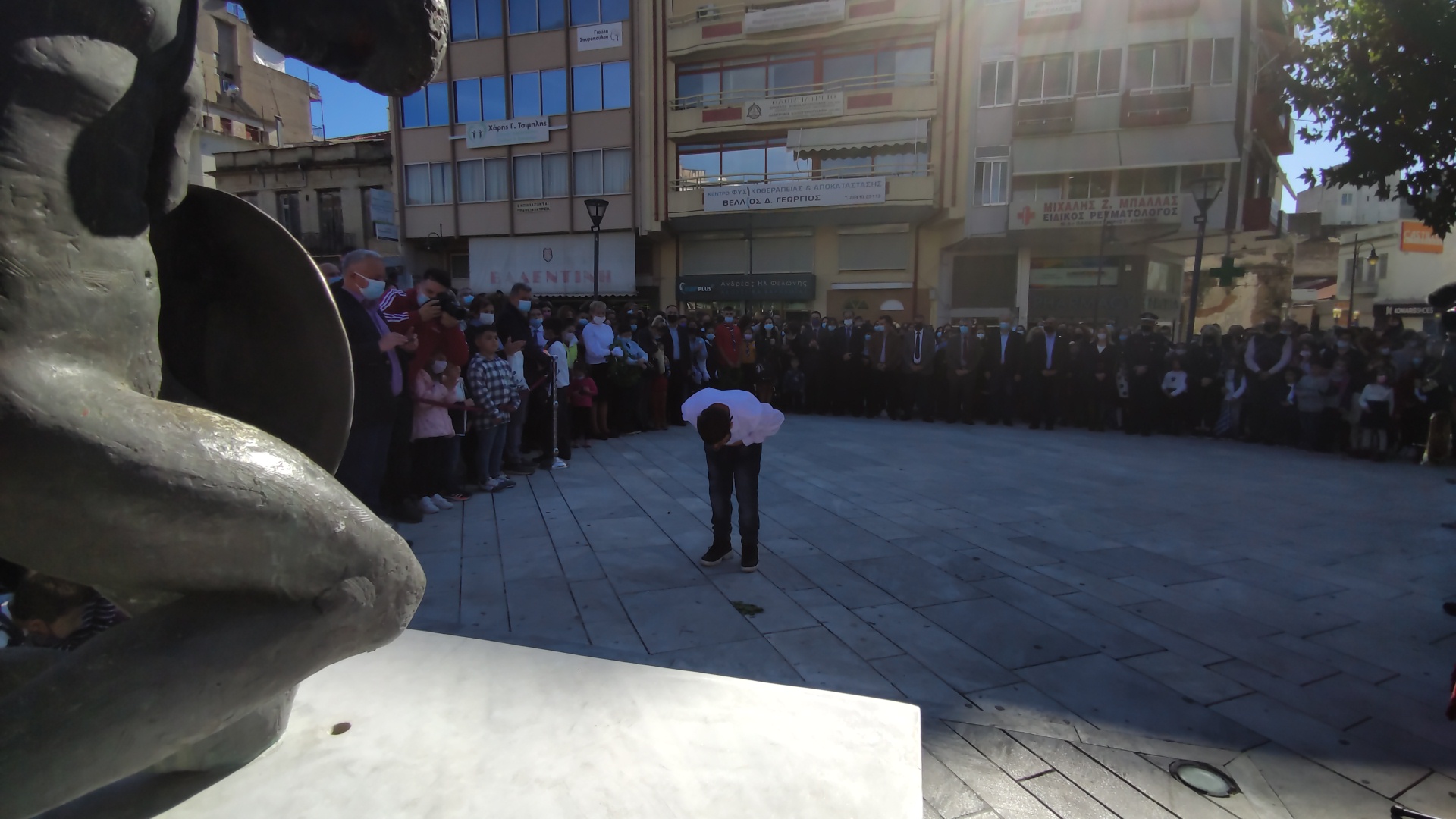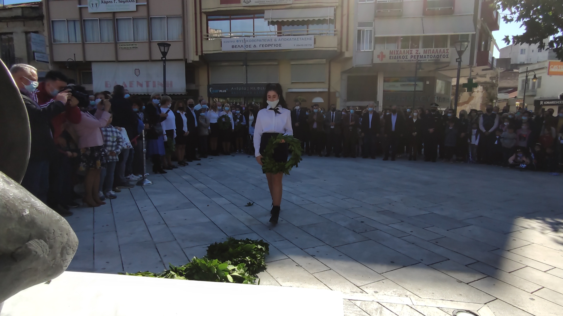 Στην πλατεία παραβρέθηκαν μαθητές από τα σχολεία της πόλης, εκπρόσωποι της Δημοτικής Αρχής, Σωμάτων Ασφαλείας, Φορέων και πολίτες που χειροκρότησαν τα παιδιά μικρά και μεγάλα.