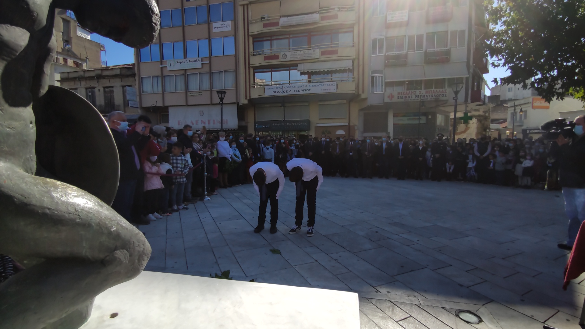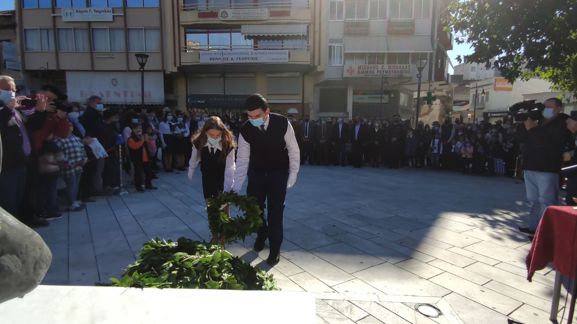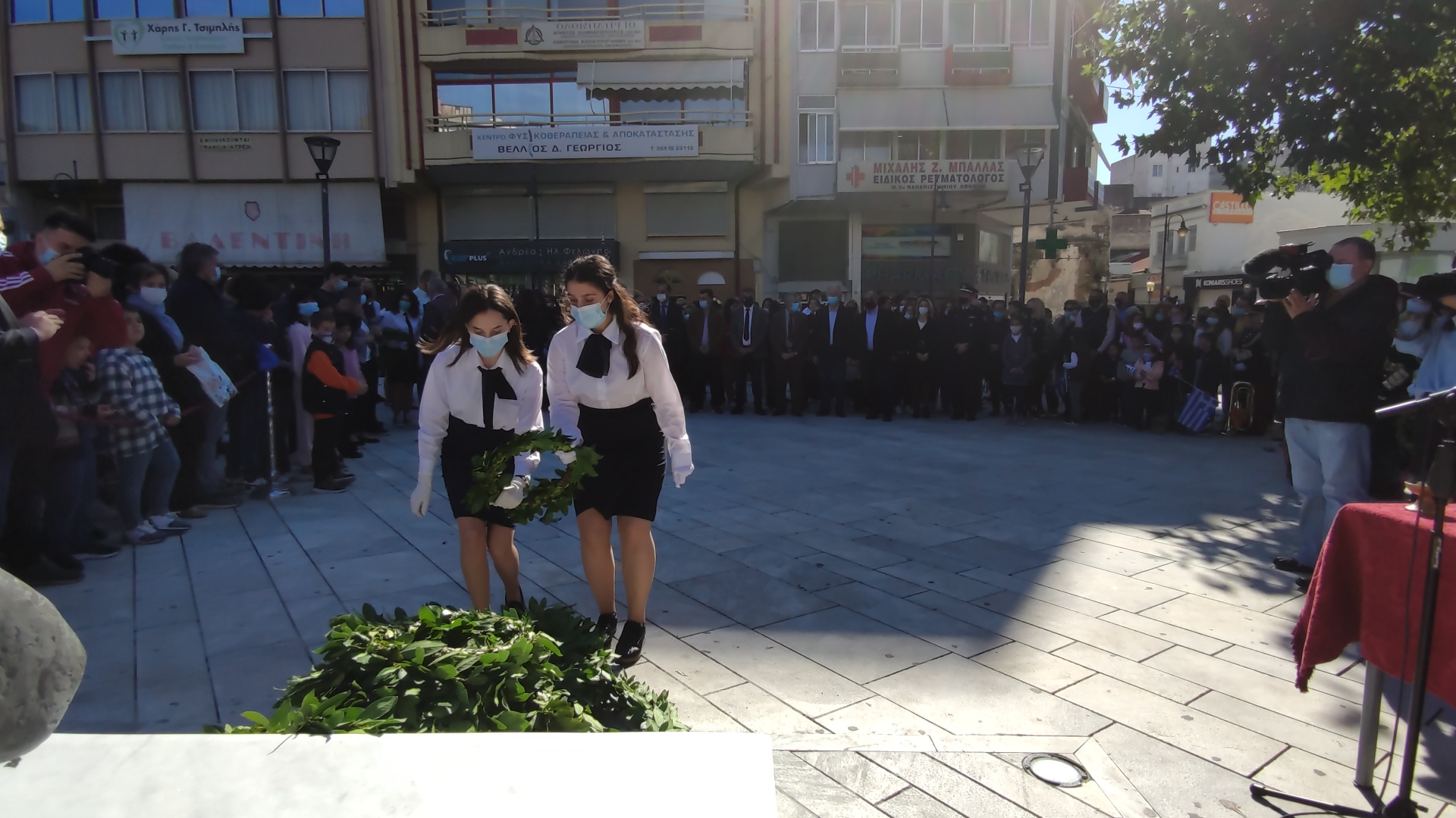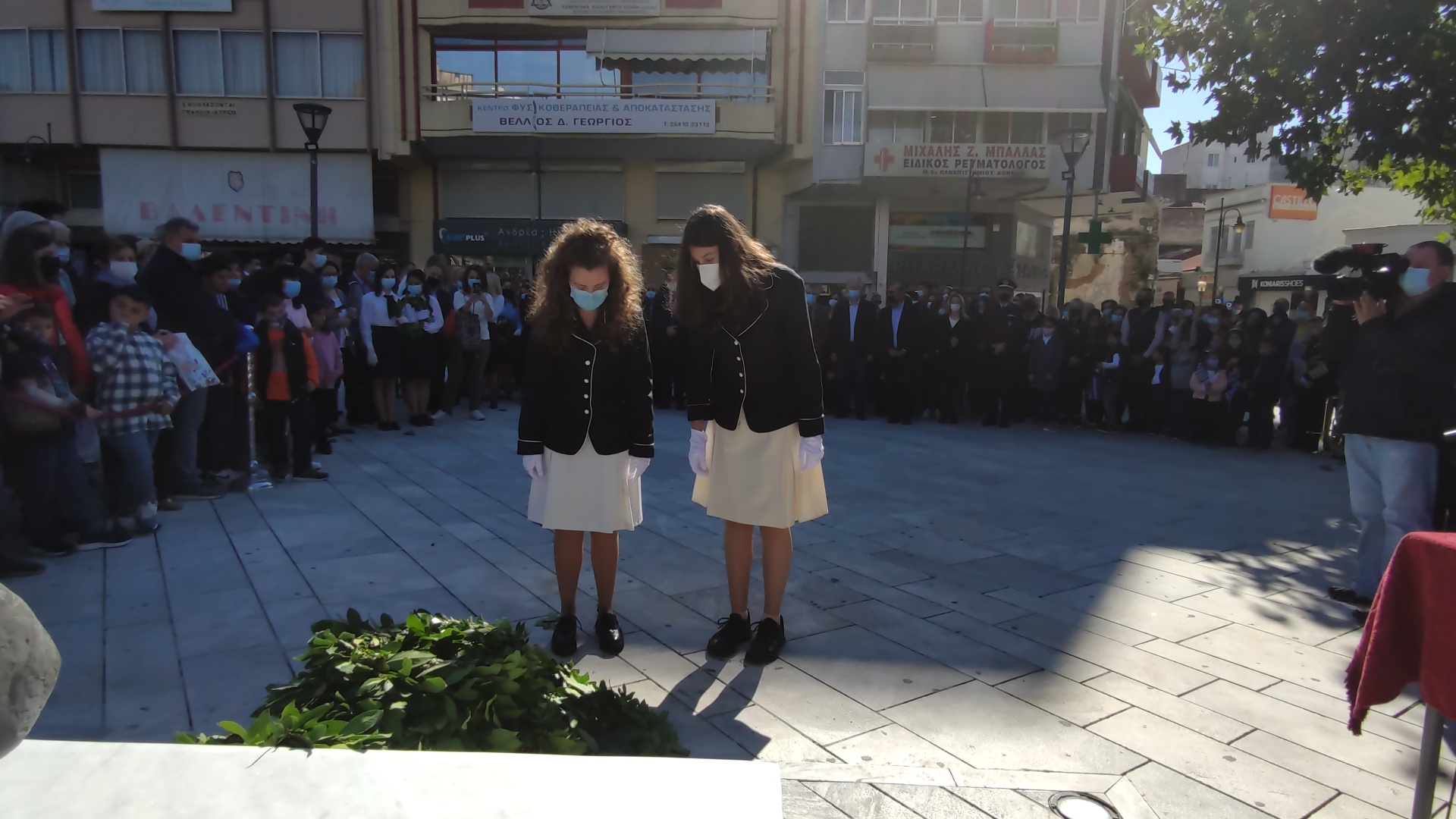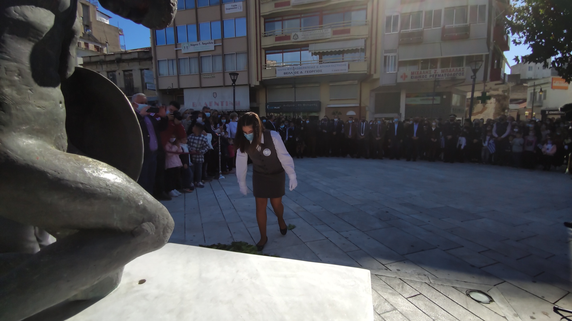 Στην πλατεία παραβρέθηκαν μαθητές από τα σχολεία της πόλης, εκπρόσωποι της Δημοτικής Αρχής, Σωμάτων Ασφαλείας, Φορέων και πολίτες που χειροκρότησαν τα παιδιά μικρά και μεγάλα.