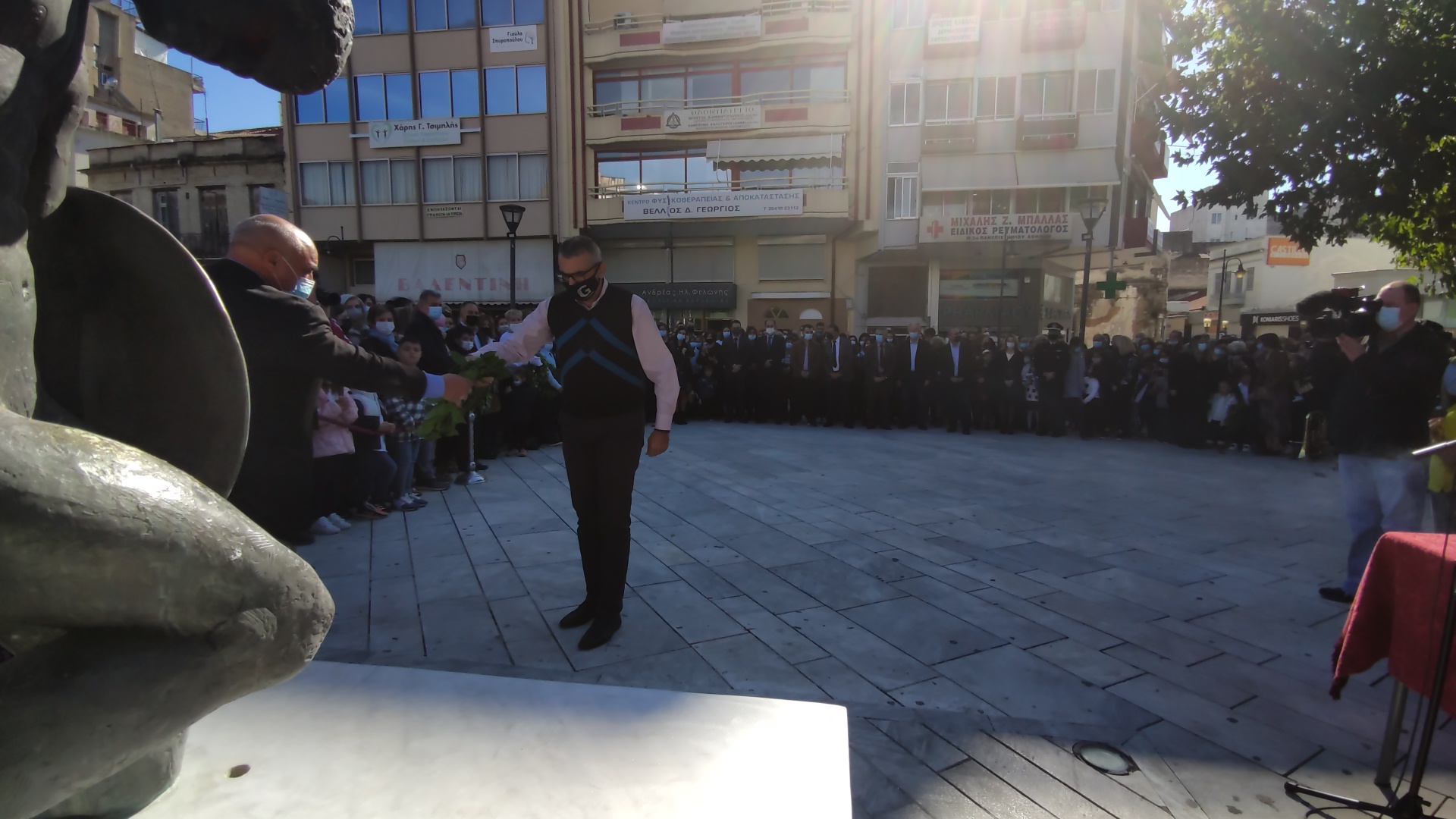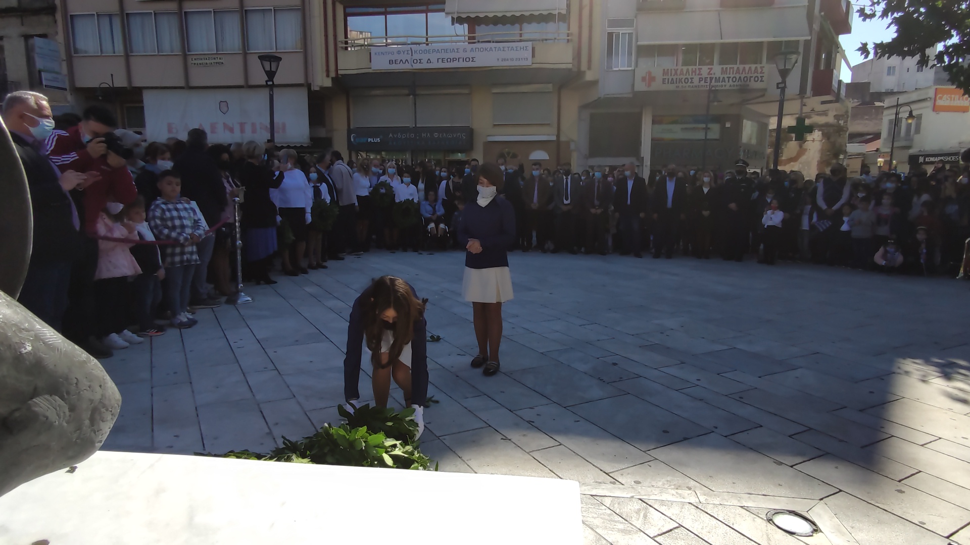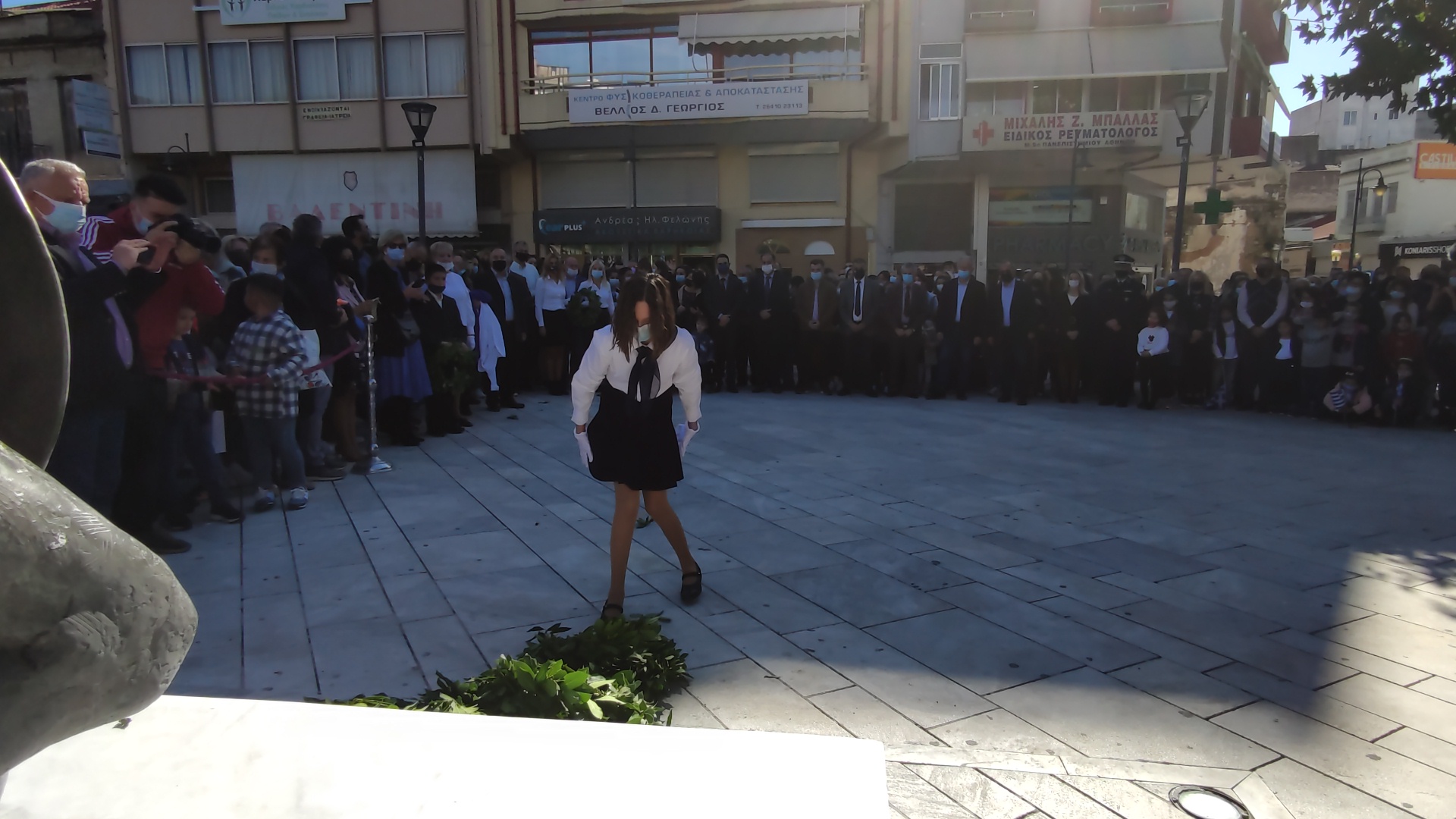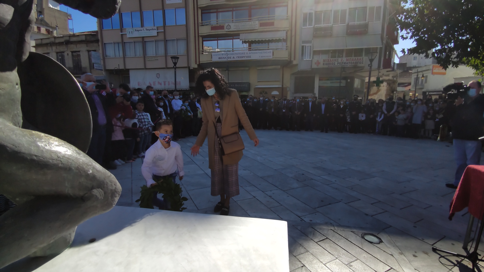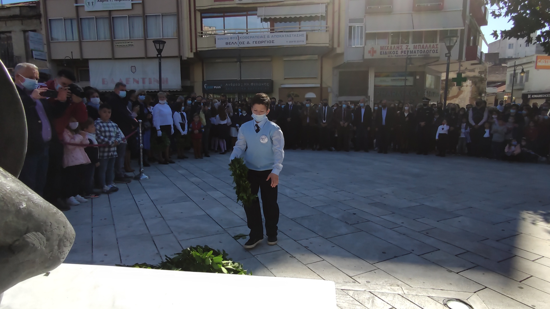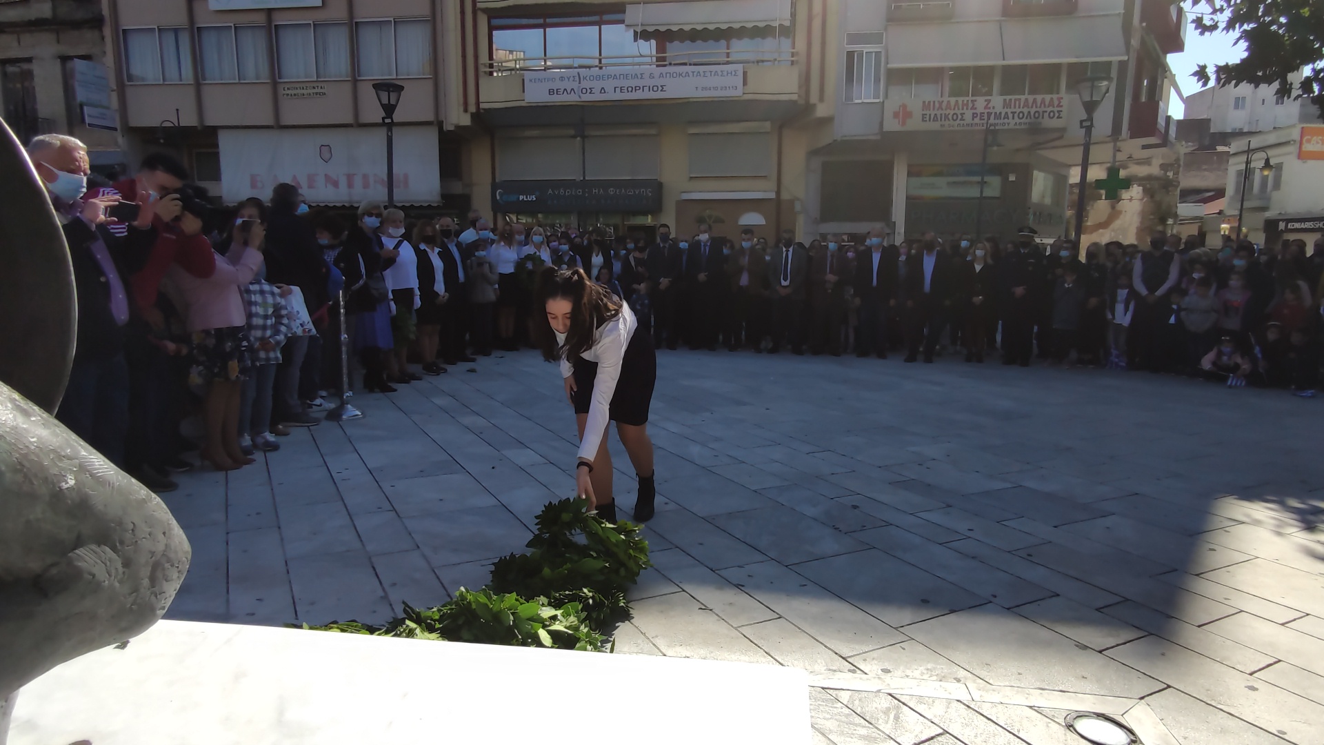 Στην πλατεία παραβρέθηκαν μαθητές από τα σχολεία της πόλης, εκπρόσωποι της Δημοτικής Αρχής, Σωμάτων Ασφαλείας, Φορέων και πολίτες που χειροκρότησαν τα παιδιά μικρά και μεγάλα.