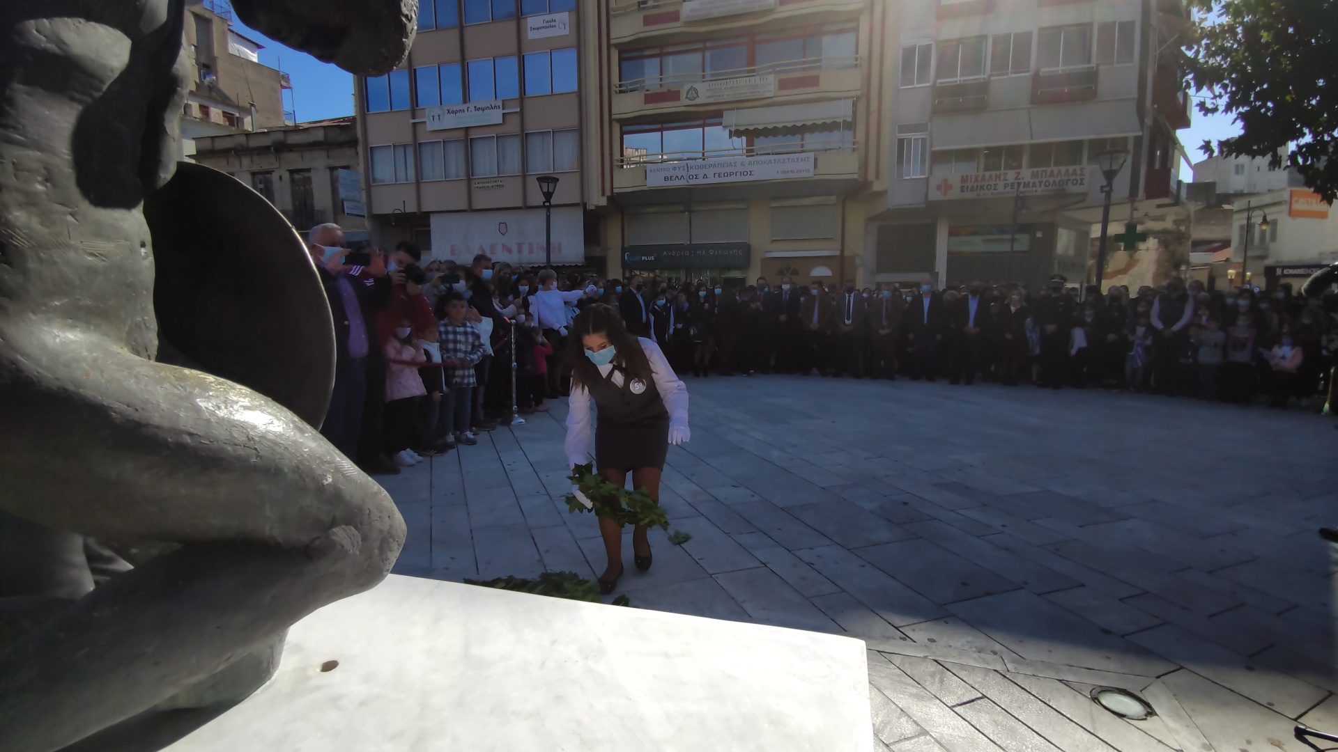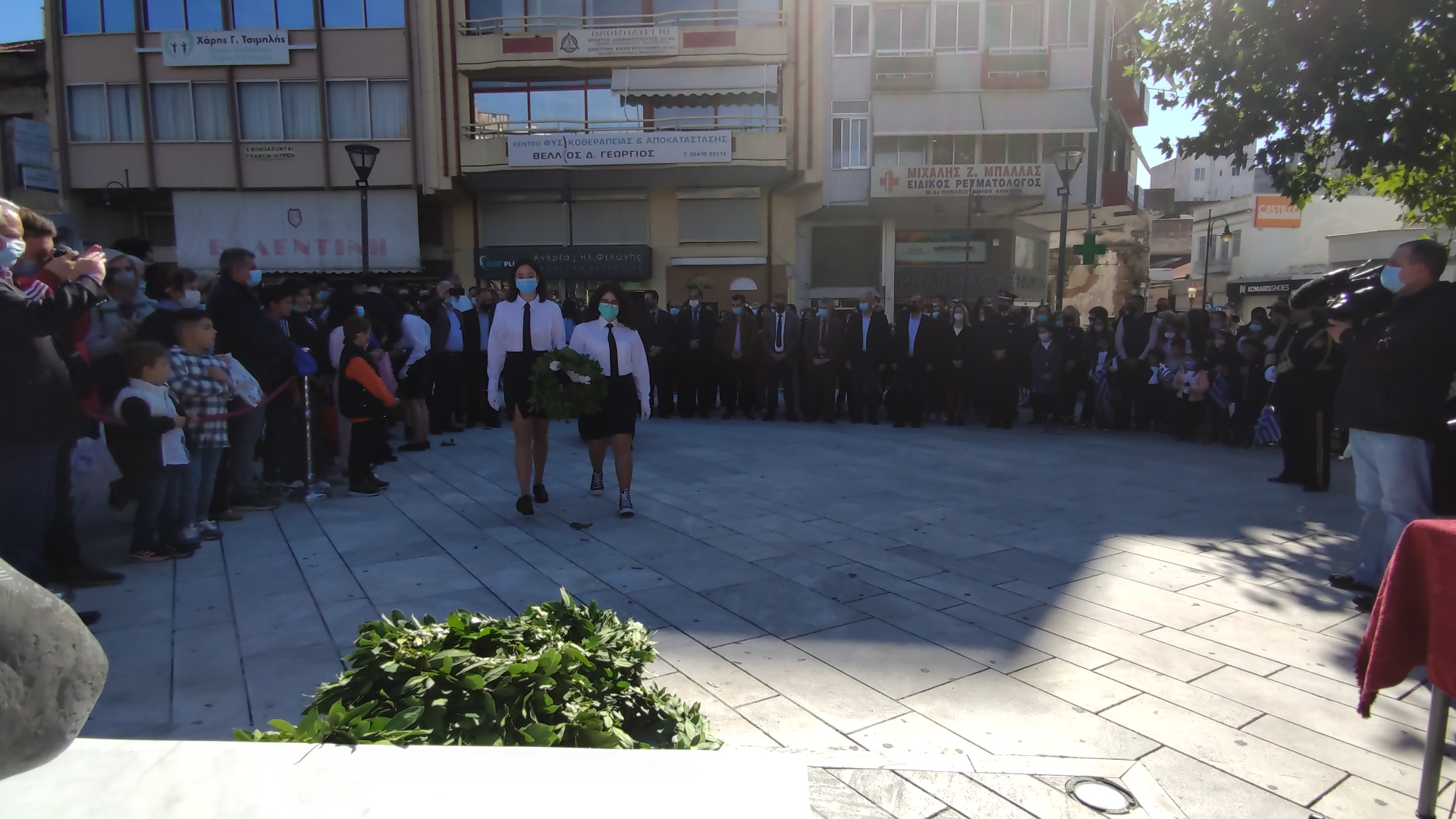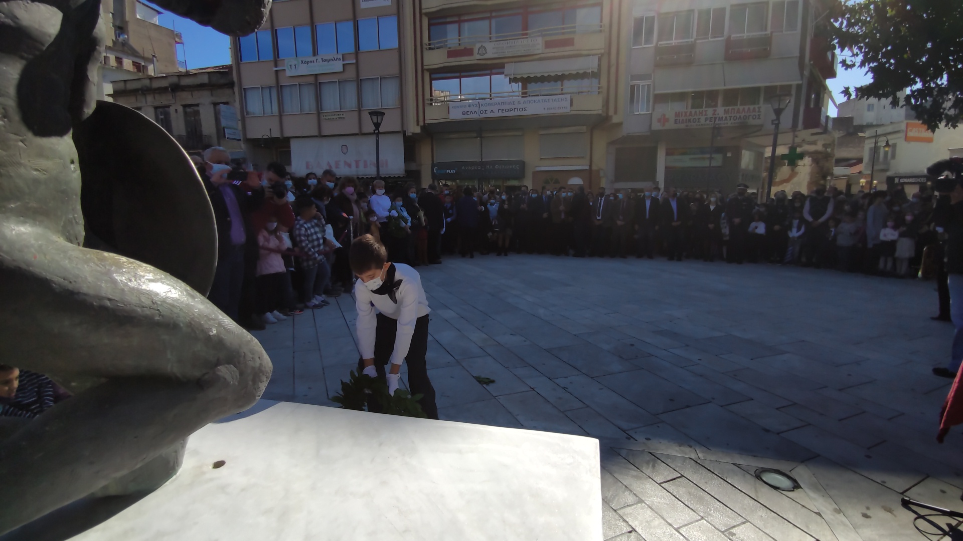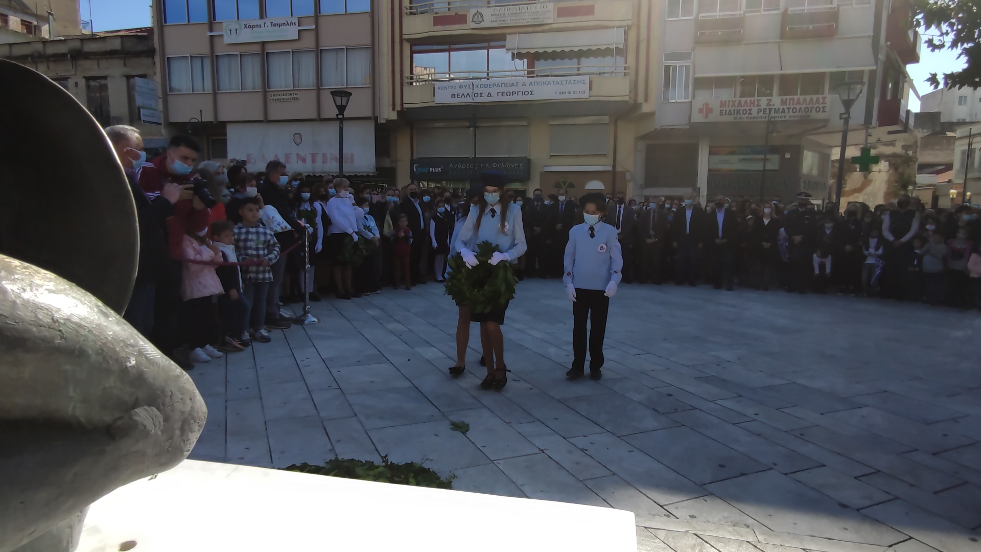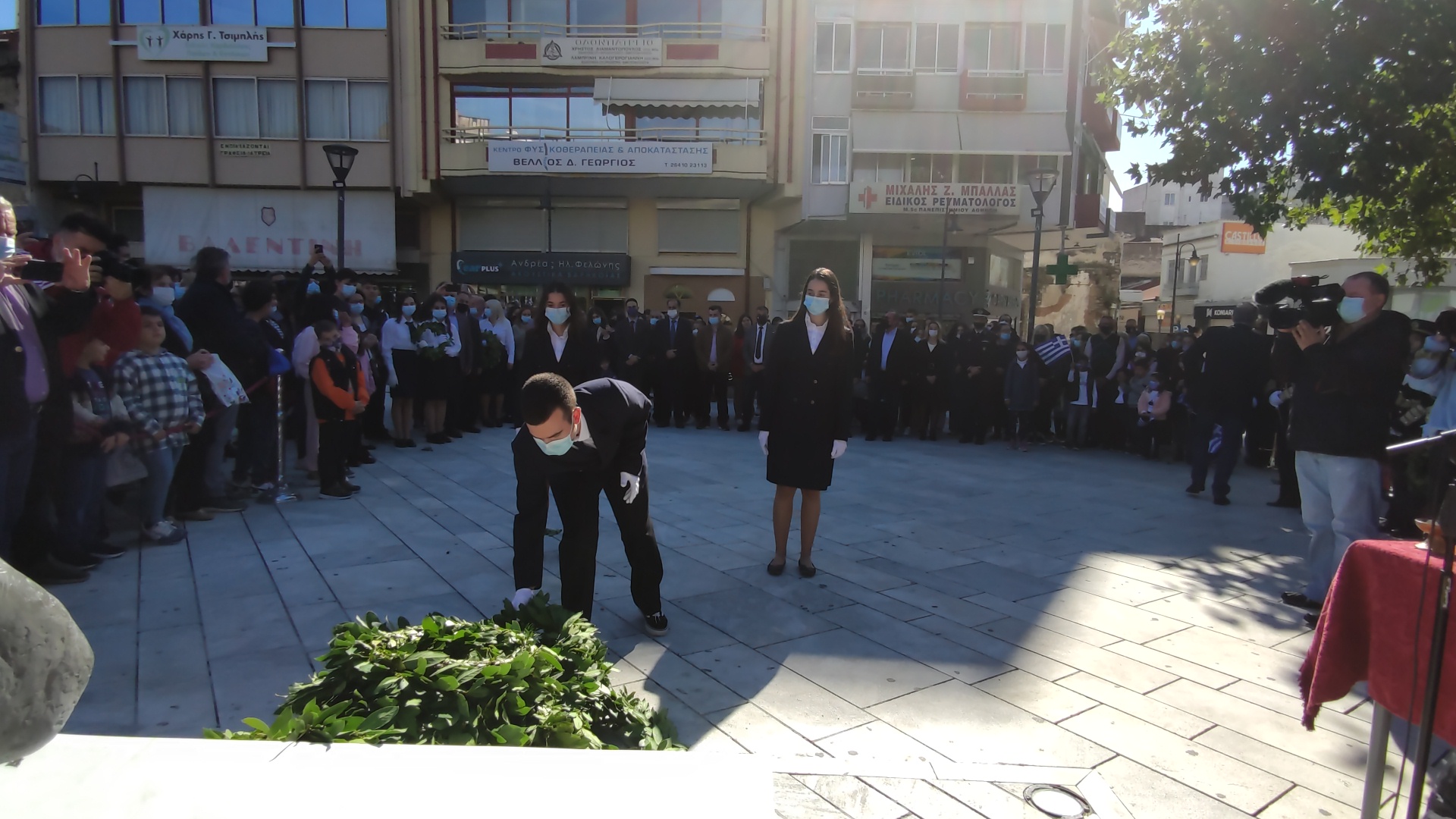 Στην πλατεία παραβρέθηκαν μαθητές από τα σχολεία της πόλης, εκπρόσωποι της Δημοτικής Αρχής, Σωμάτων Ασφαλείας, Φορέων και πολίτες που χειροκρότησαν τα παιδιά μικρά και μεγάλα.