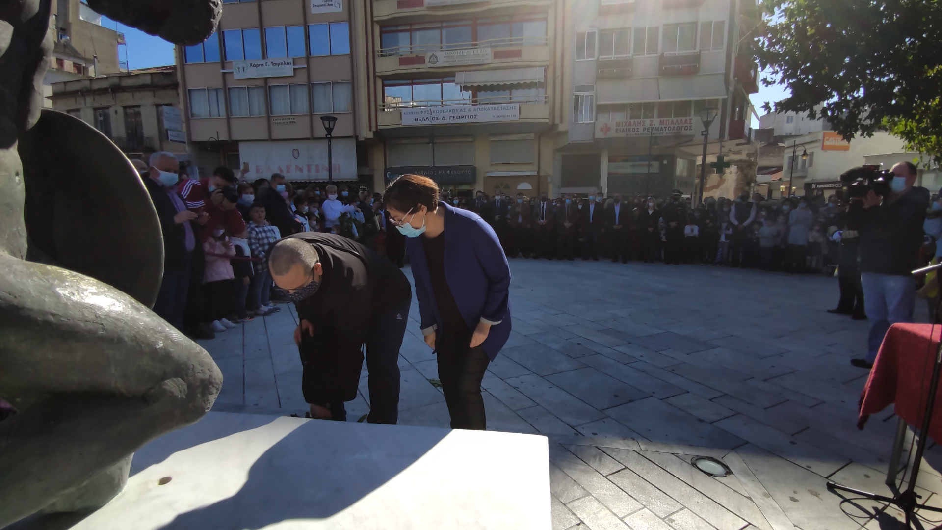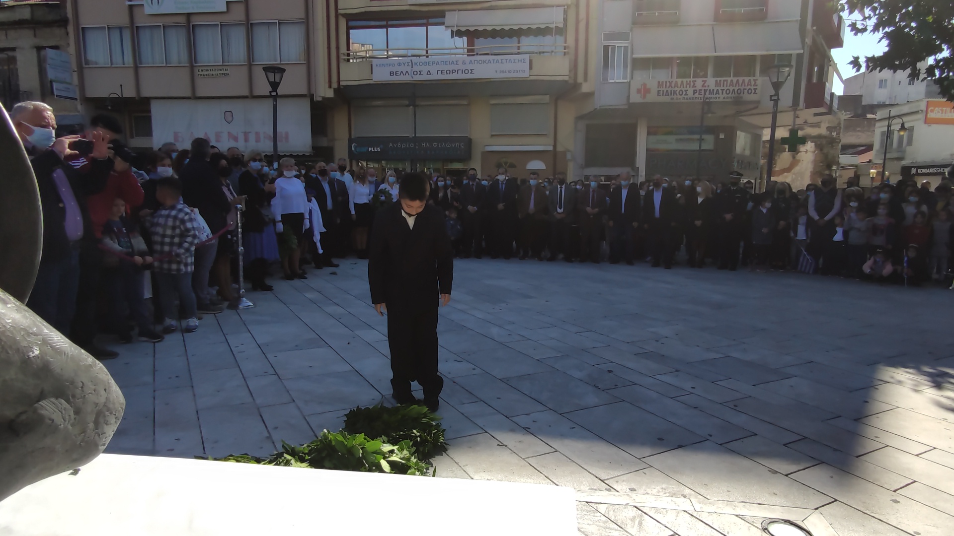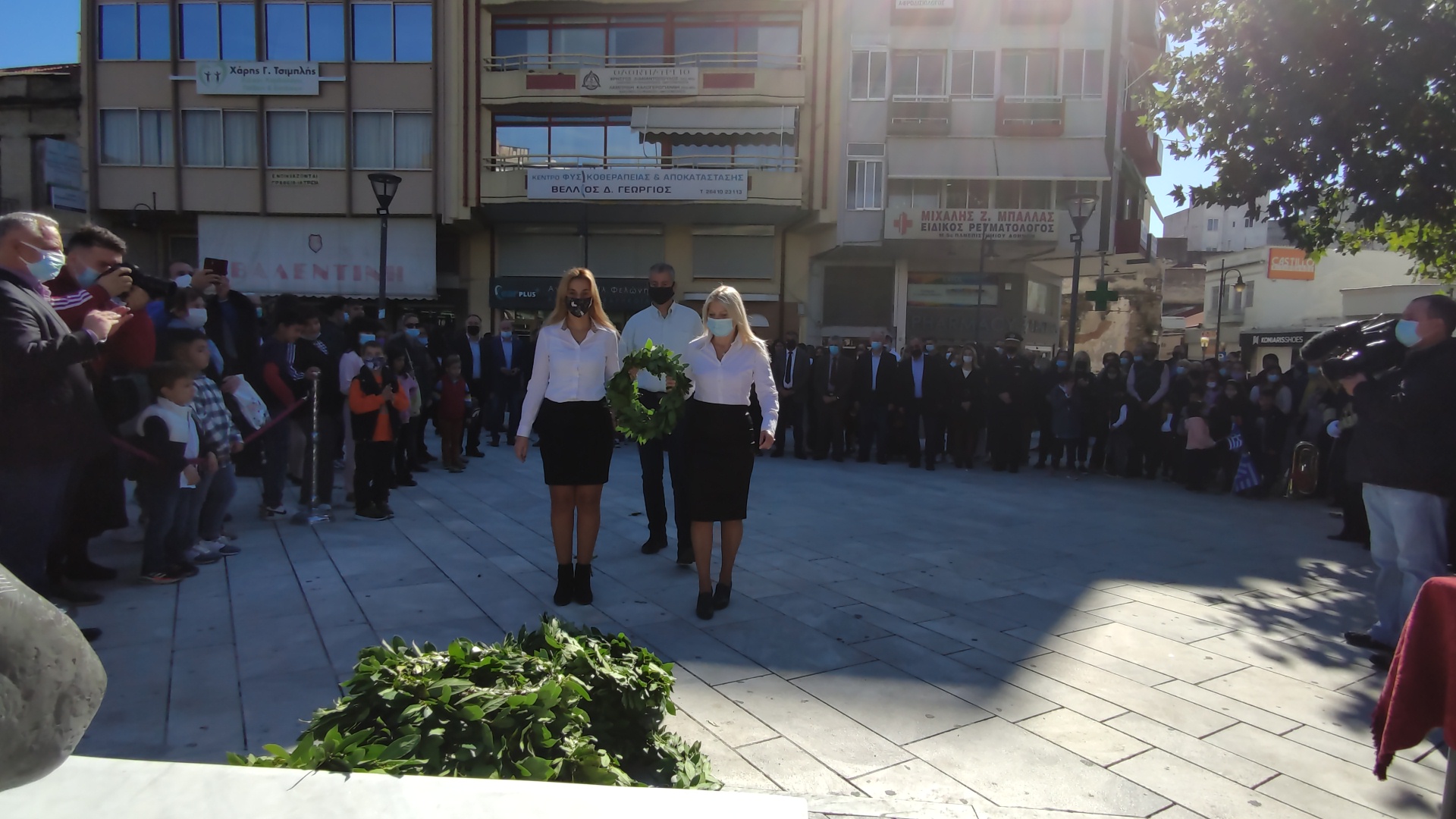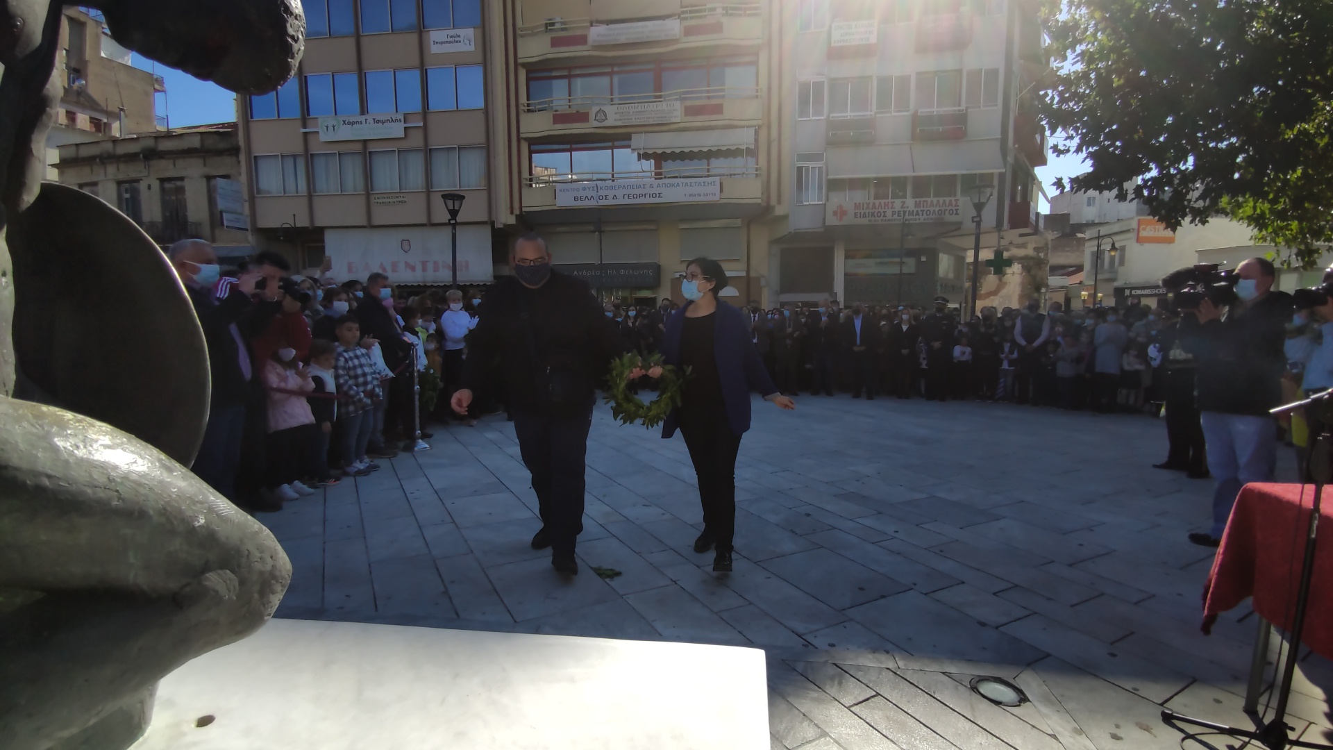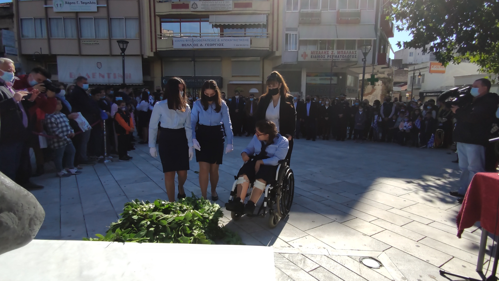 Στην πλατεία παραβρέθηκαν μαθητές από τα σχολεία της πόλης, εκπρόσωποι της Δημοτικής Αρχής, Σωμάτων Ασφαλείας, Φορέων και πολίτες που χειροκρότησαν τα παιδιά μικρά και μεγάλα.