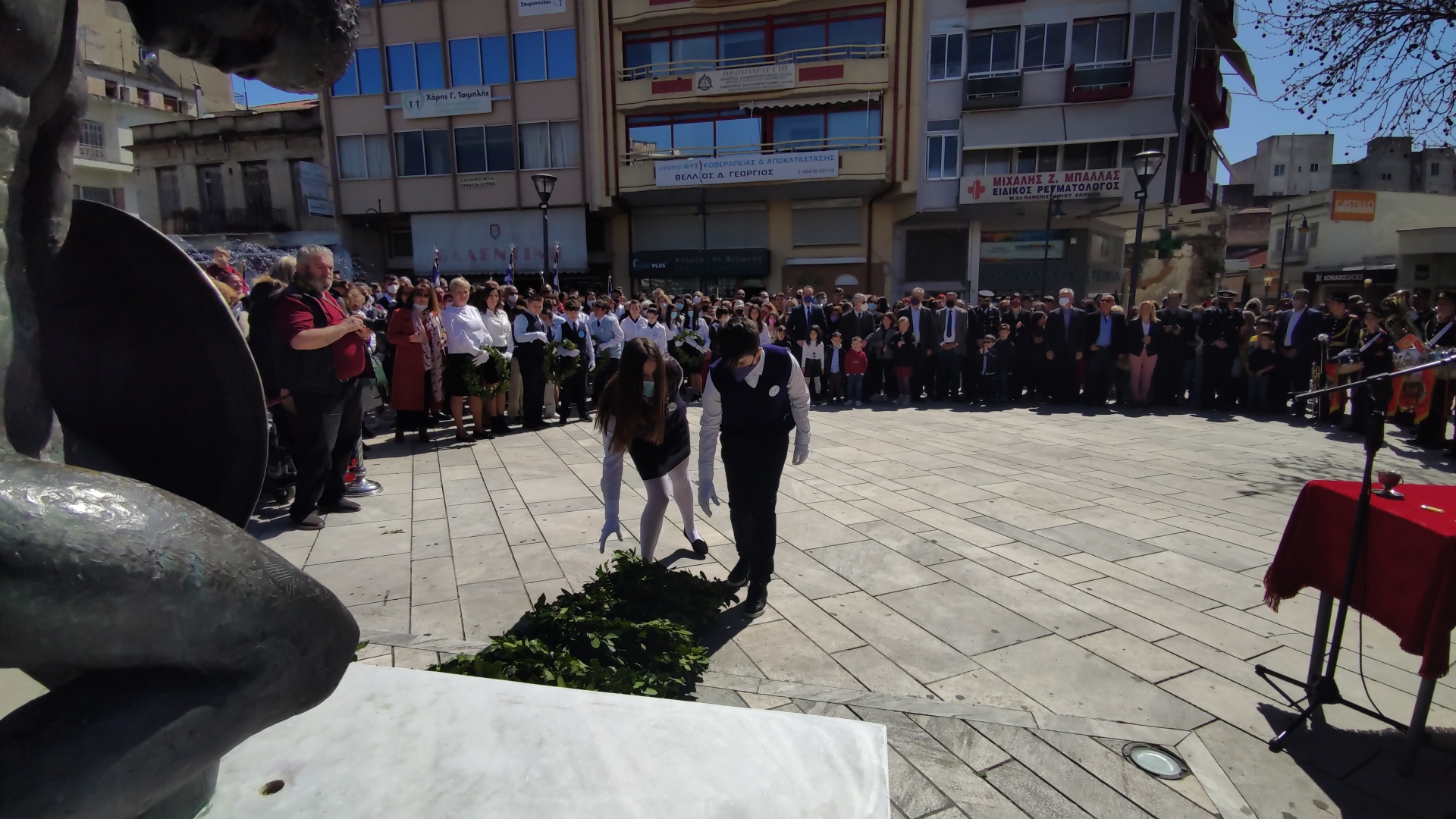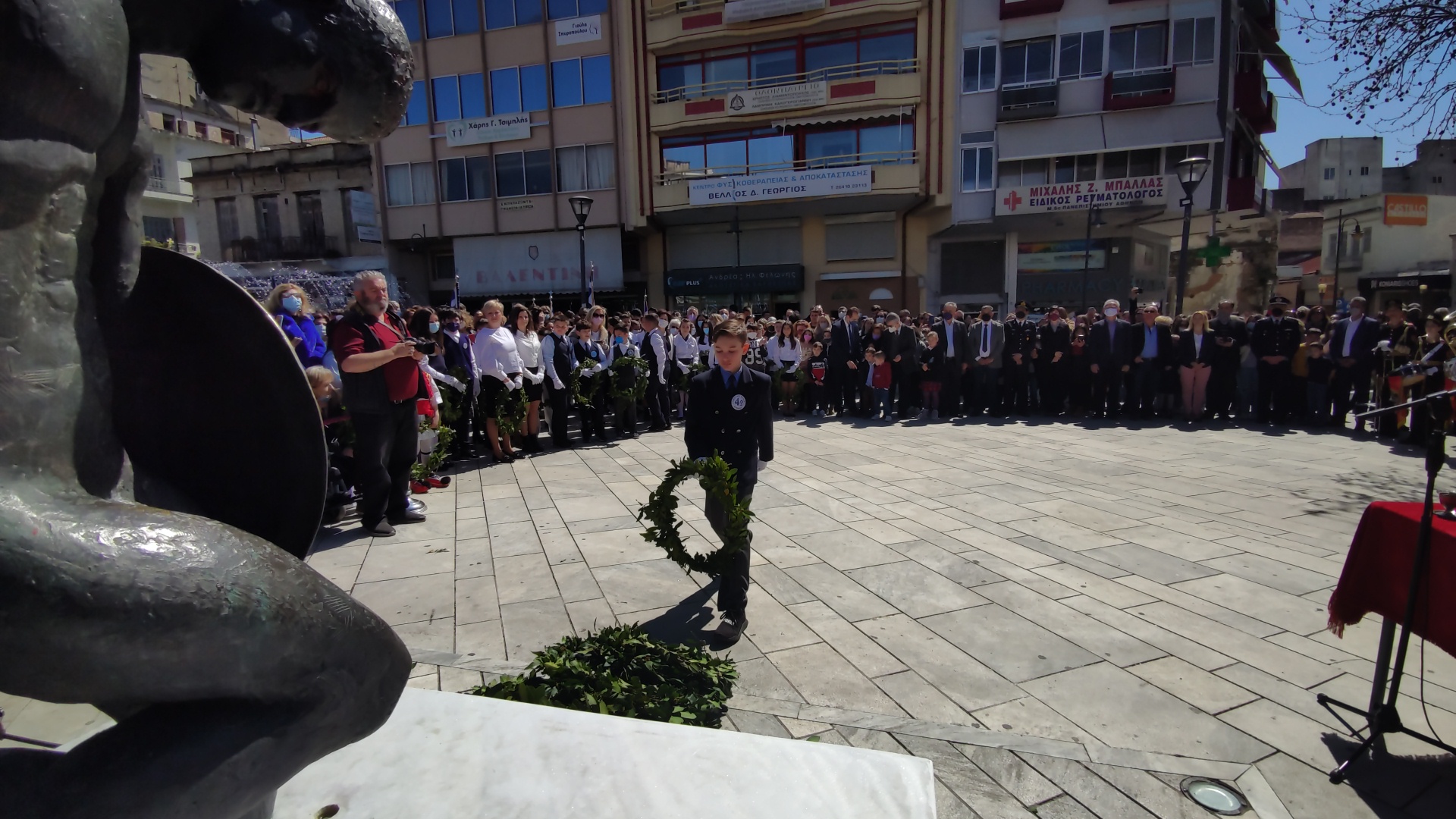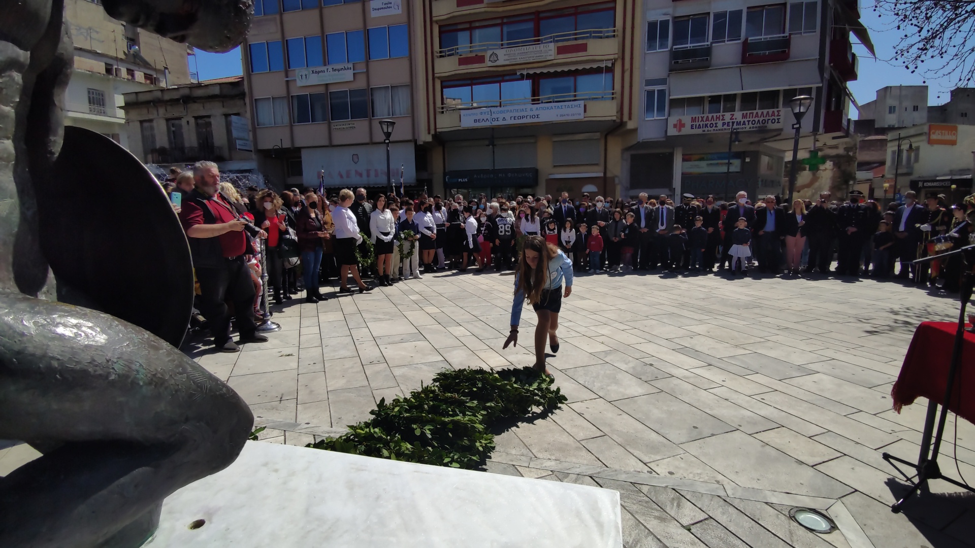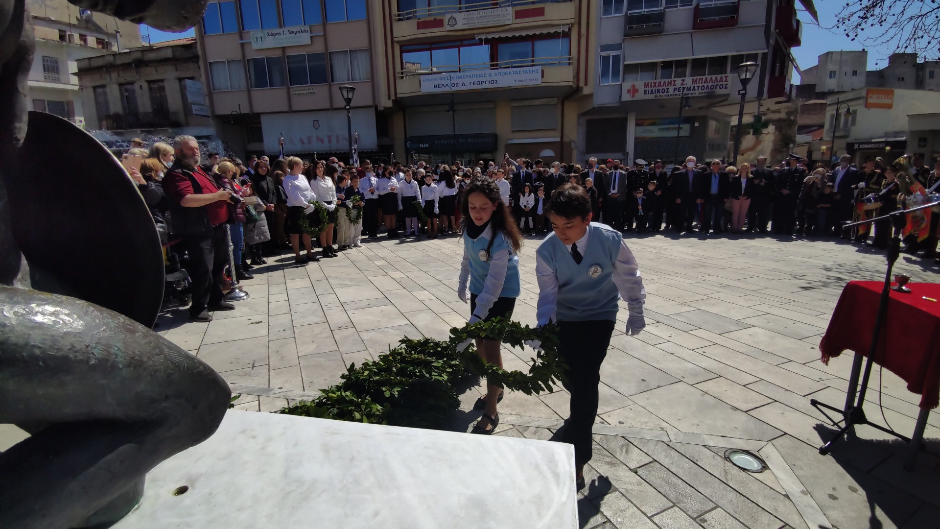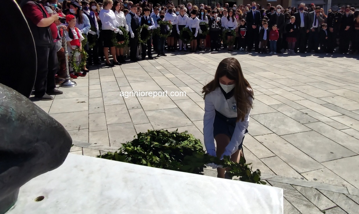 Στην πλατεία Δημάδη τελέστηκε η Επιμνημόσυνη δέηση και πραγματοποιήθηκε η κατάθεση στεφάνων από μαθητές σχολείων του Αγρινίου, Ειδικών Σχολείων, εκπροσώπων της μαθητικής κοινότητας και φορέων παρουσία στελεχών της Δημοτικής Αρχής και σωμάτων ασφαλείας.