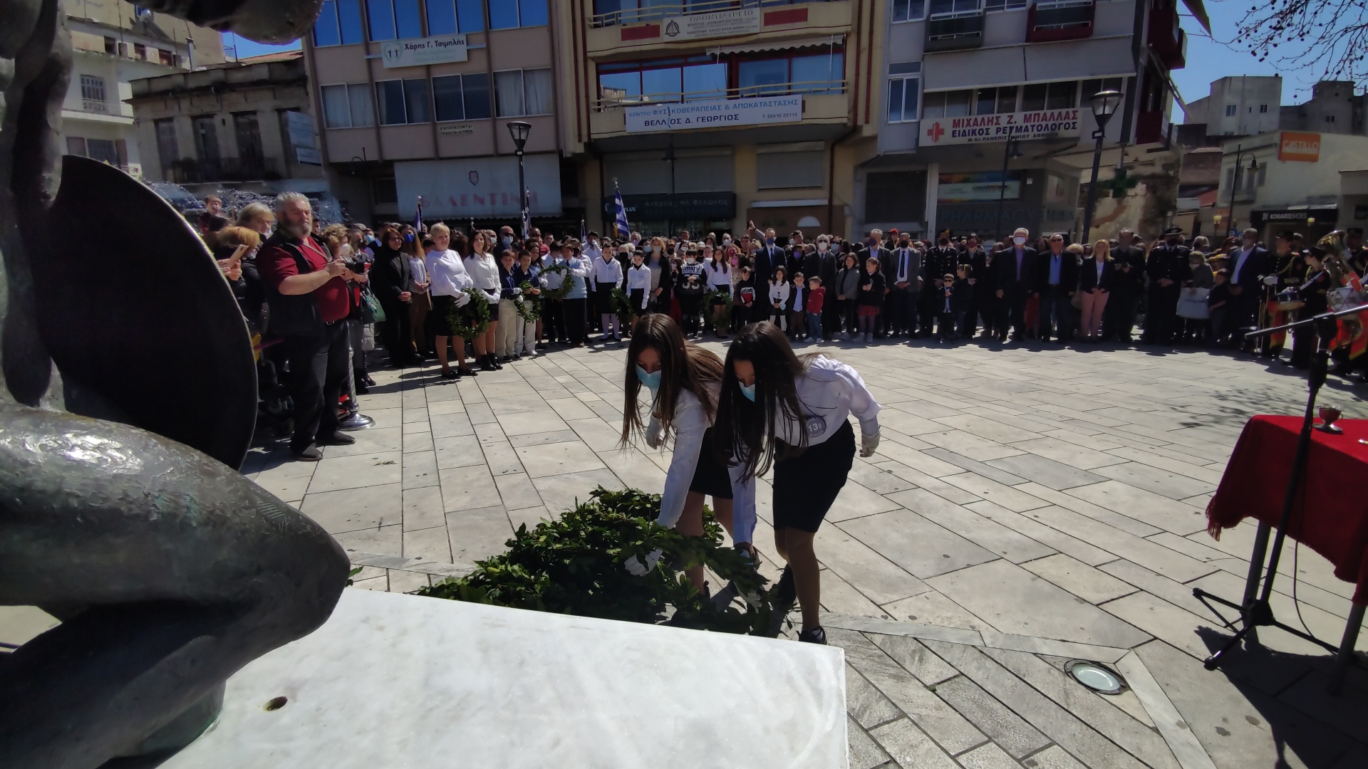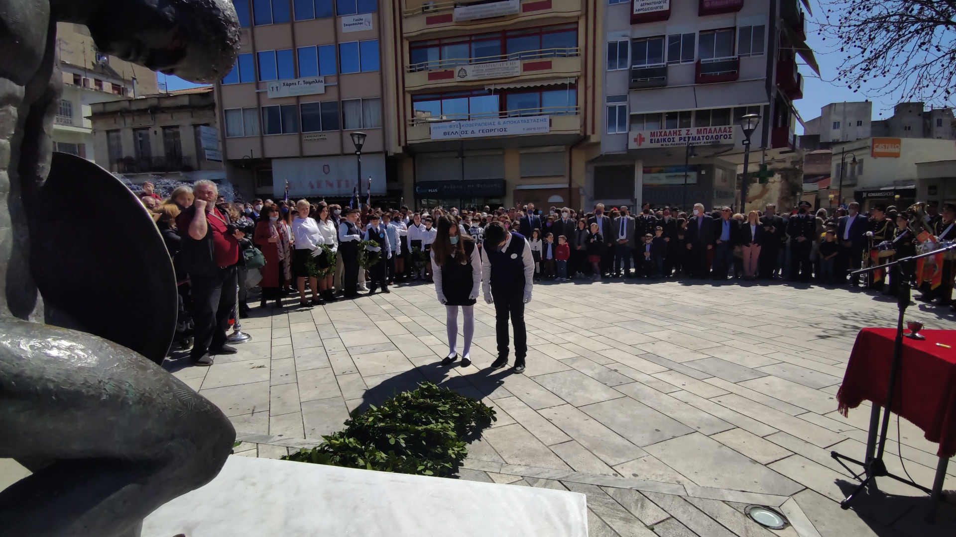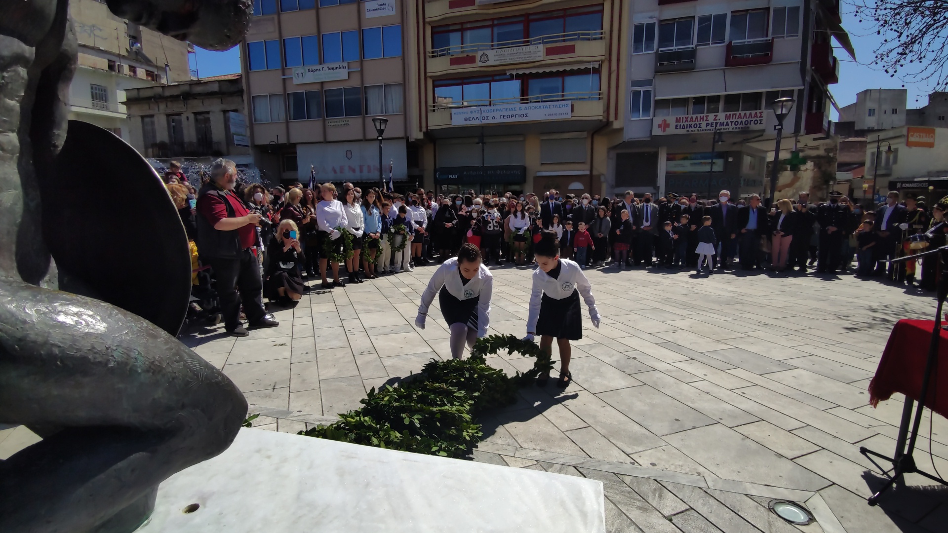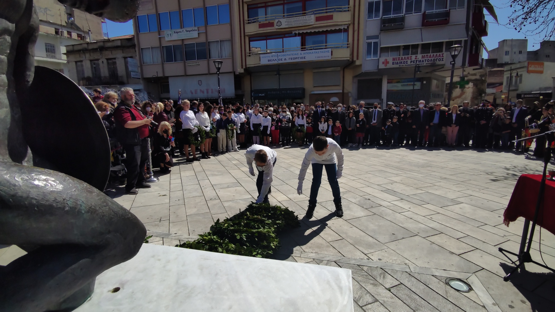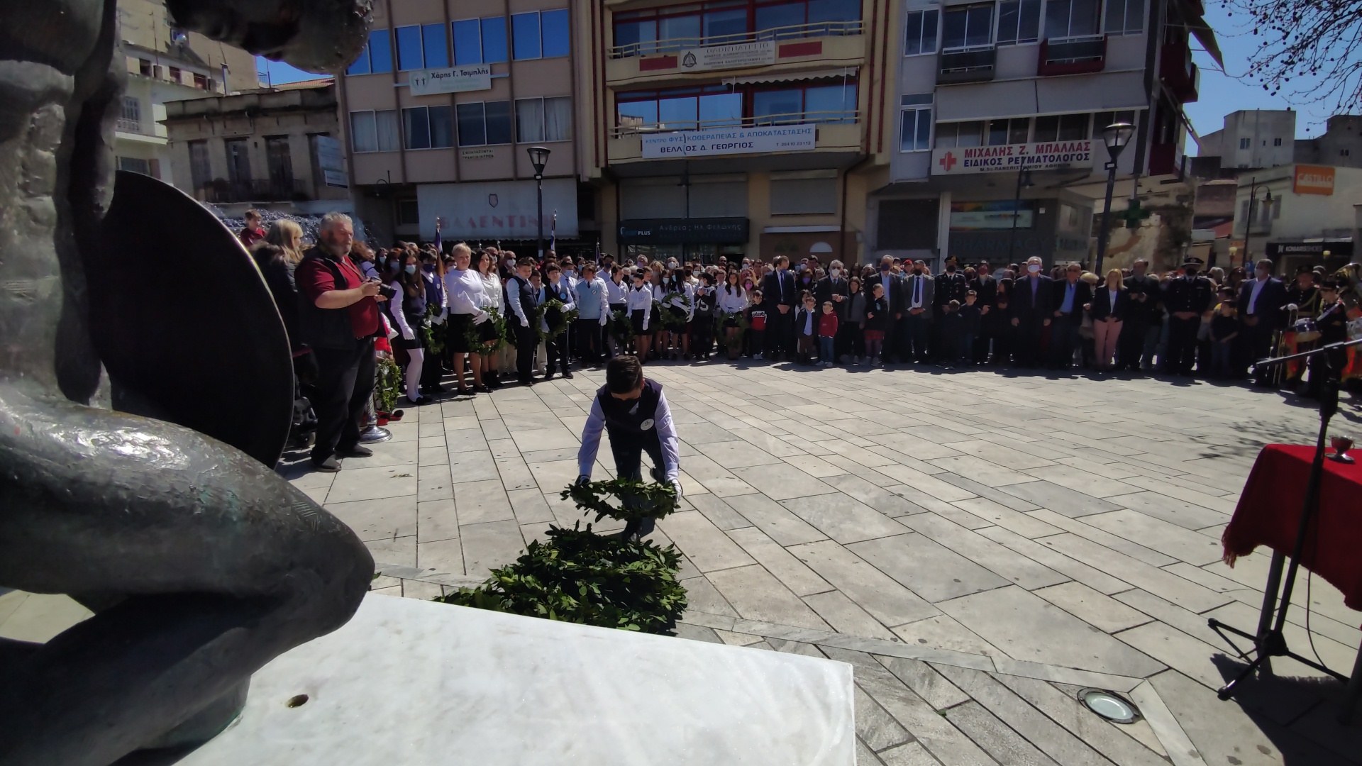 Στην πλατεία Δημάδη τελέστηκε η Επιμνημόσυνη δέηση και πραγματοποιήθηκε η κατάθεση στεφάνων από μαθητές σχολείων του Αγρινίου, Ειδικών Σχολείων, εκπροσώπων της μαθητικής κοινότητας και φορέων παρουσία στελεχών της Δημοτικής Αρχής και σωμάτων ασφαλείας.