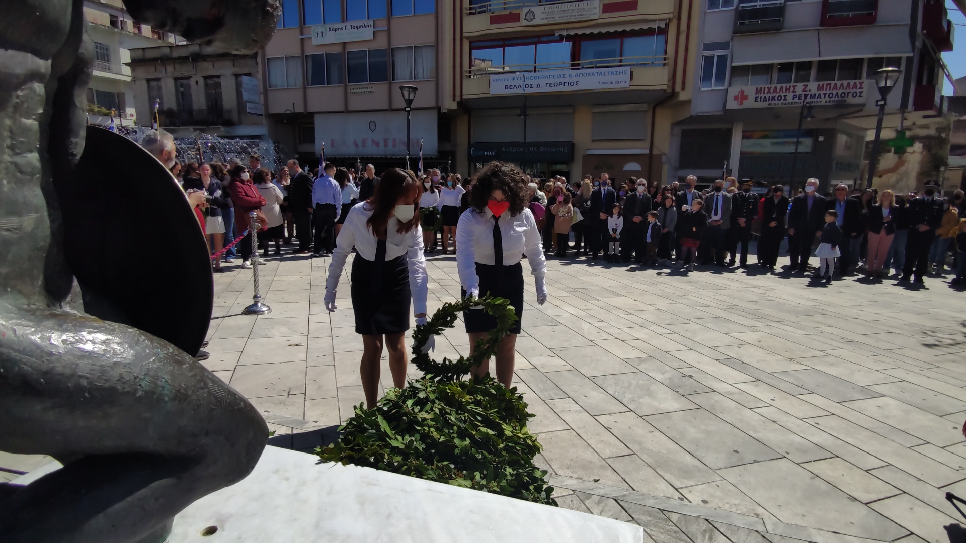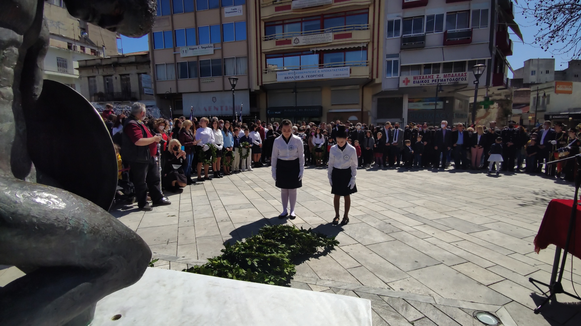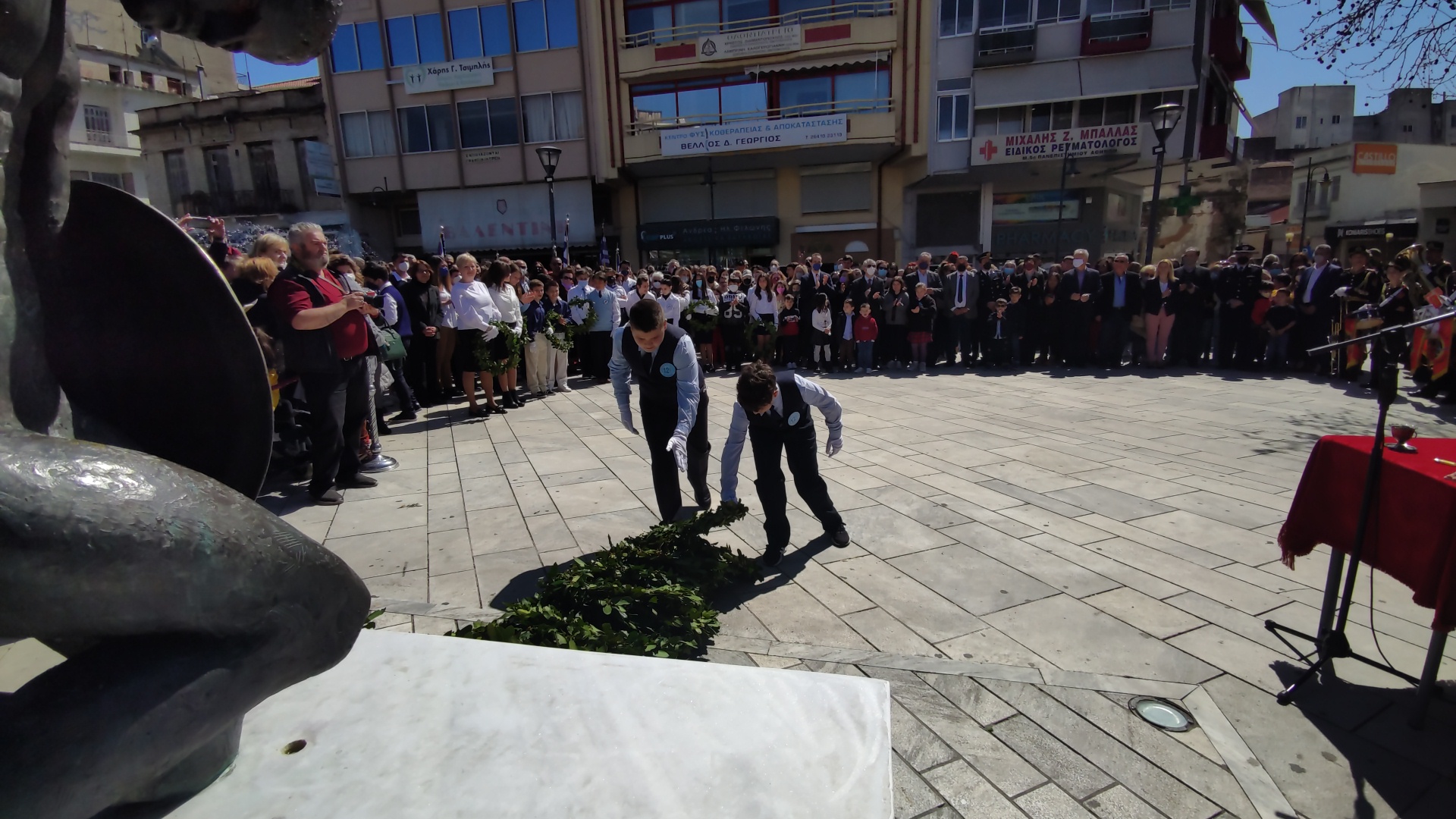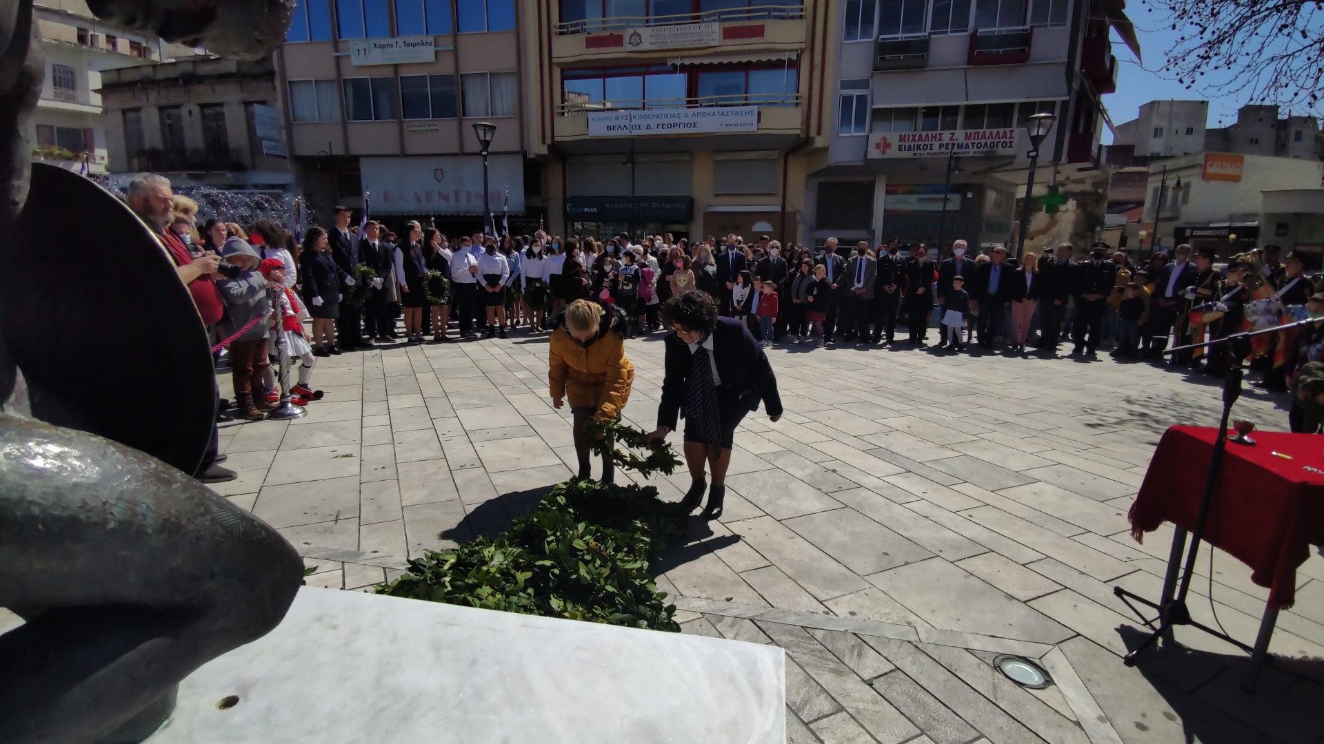 Στην πλατεία Δημάδη τελέστηκε η Επιμνημόσυνη δέηση και πραγματοποιήθηκε η κατάθεση στεφάνων από μαθητές σχολείων του Αγρινίου, Ειδικών Σχολείων, εκπροσώπων της μαθητικής κοινότητας και φορέων παρουσία στελεχών της Δημοτικής Αρχής και σωμάτων ασφαλείας.